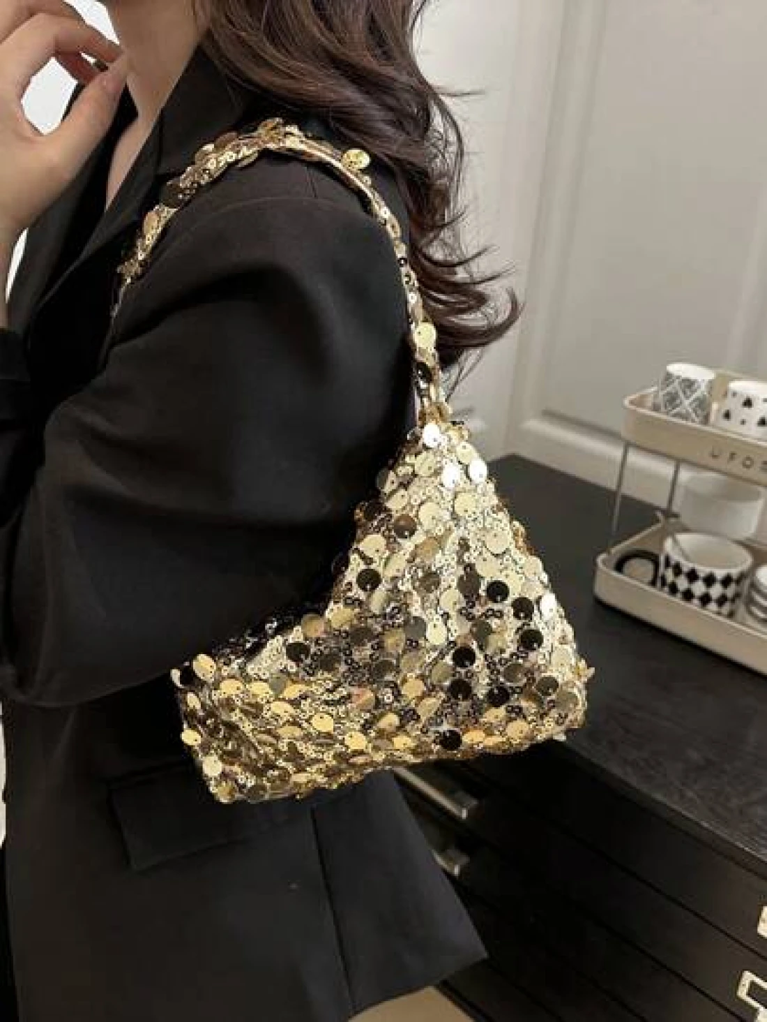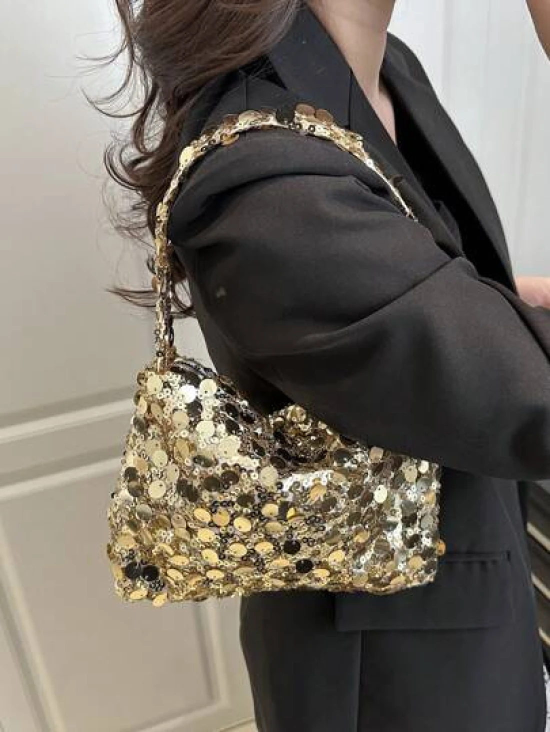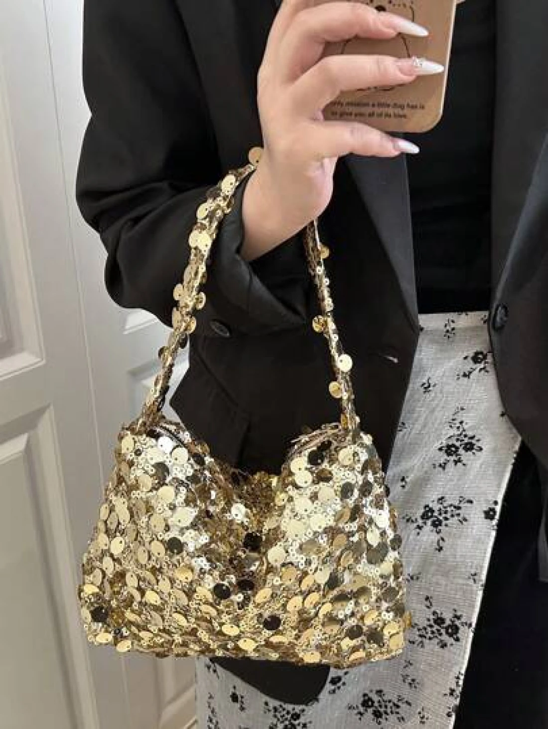 1pc Zippered Closure Sparkly Wristlet Bag Multicolor Sequin Design Europe US Style Creative Personality Cell Phone Shoulder Crossbody Bag Suitable For Party Gala Date Night For Women