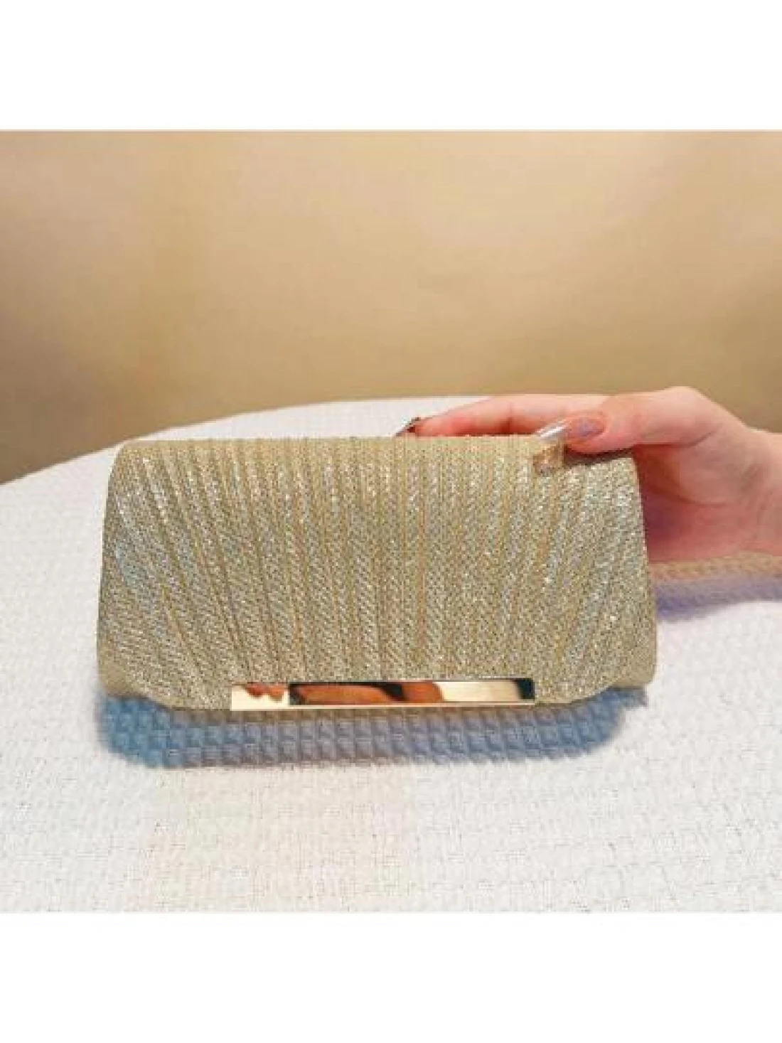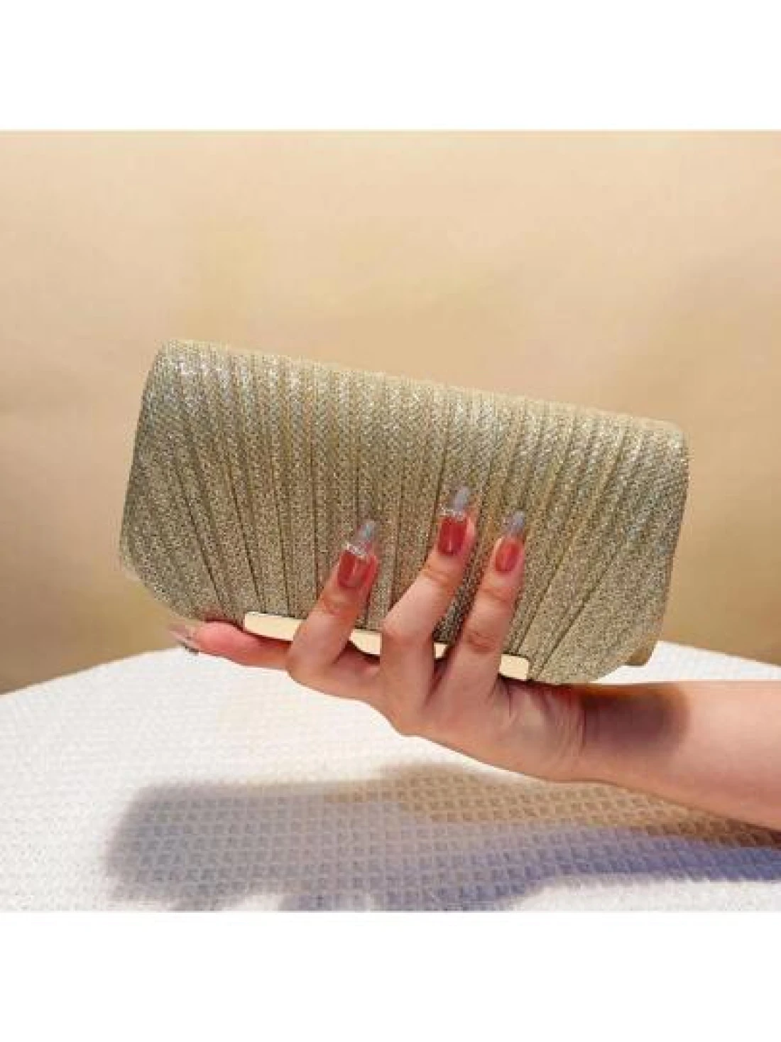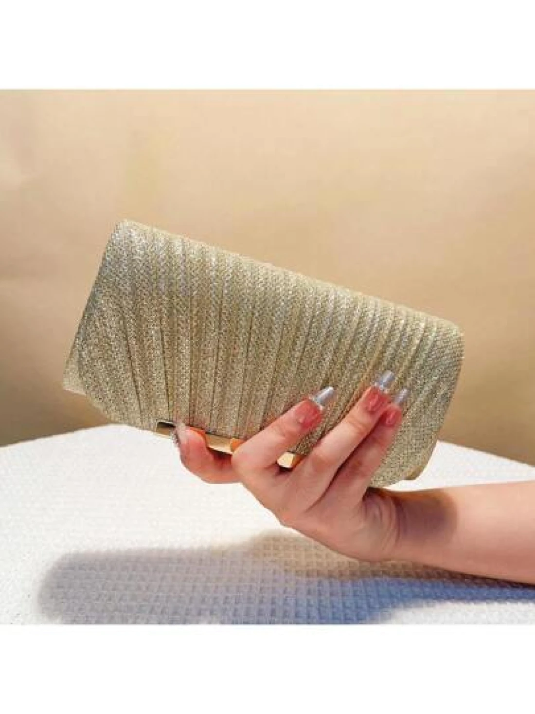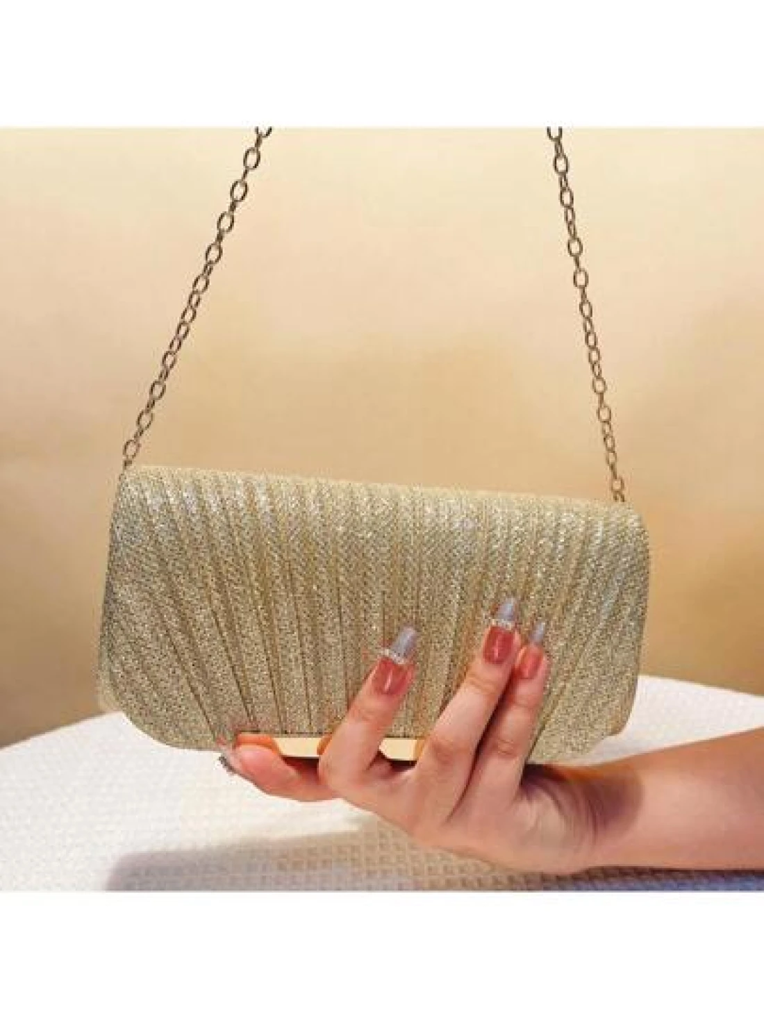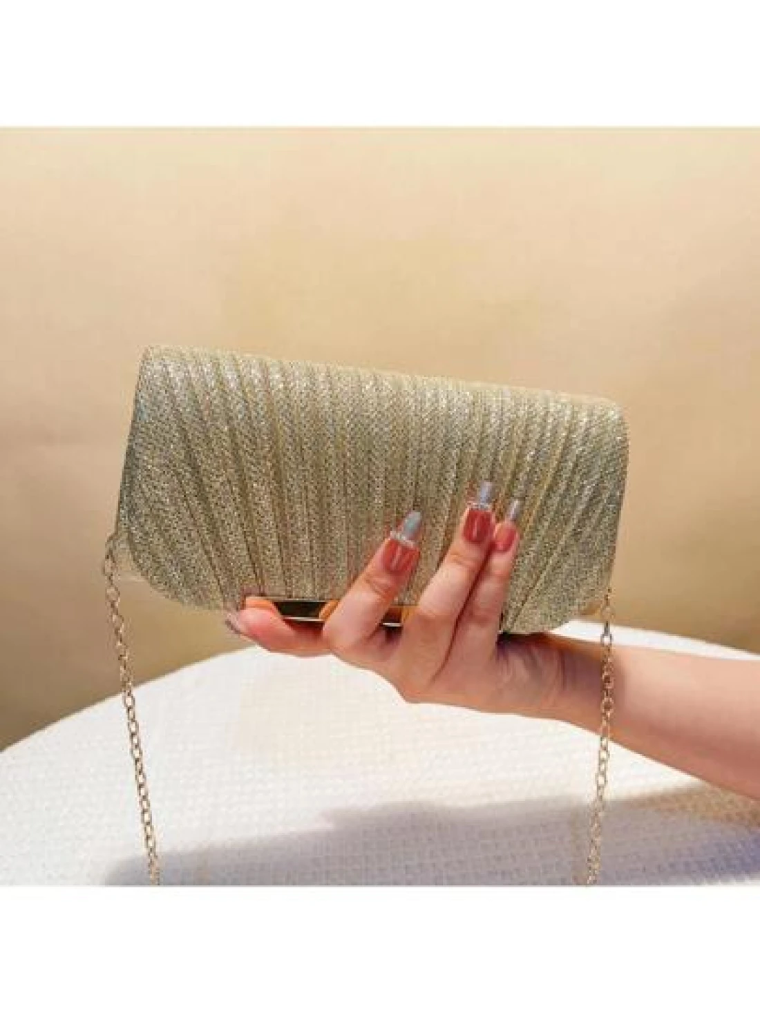 Women s Fashionable Elegant Pleated Clutch Bag Formal Party Evening Bag With Chain Shoulder Strap
