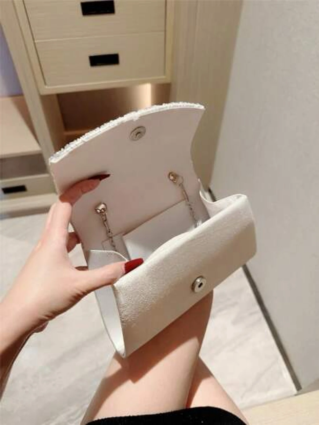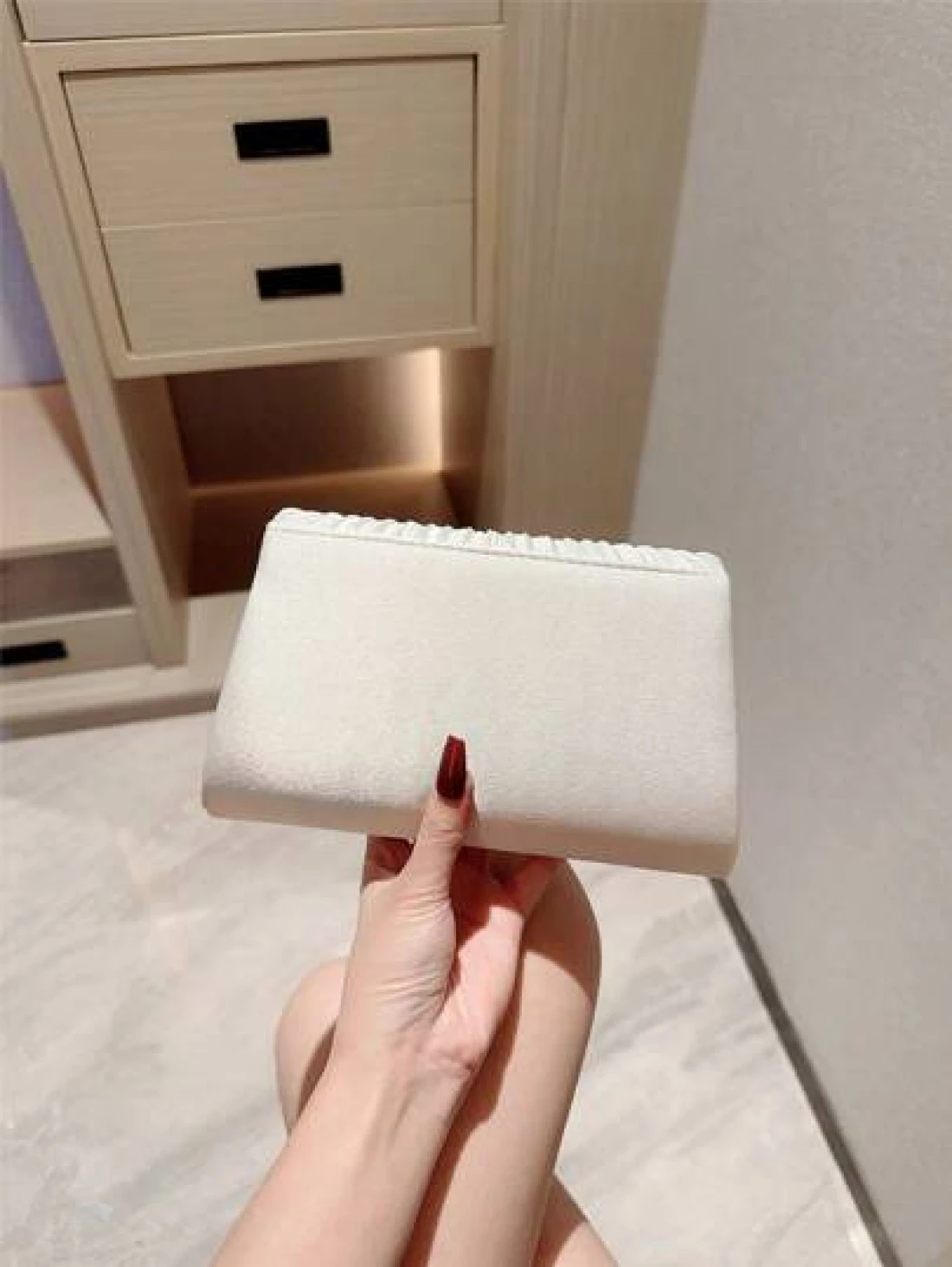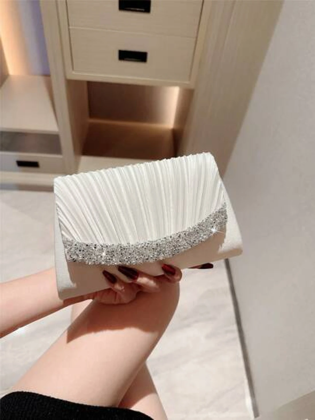 1pc Classic Pleated Satin Evening Dress Clutch Bag Formal Party Handbag Romantic Wedding Bridal Envelope Bag With Rhinestone Decor Chain Shoulder Bag Tready Party Bags Perfect For Party Wedding Prom D