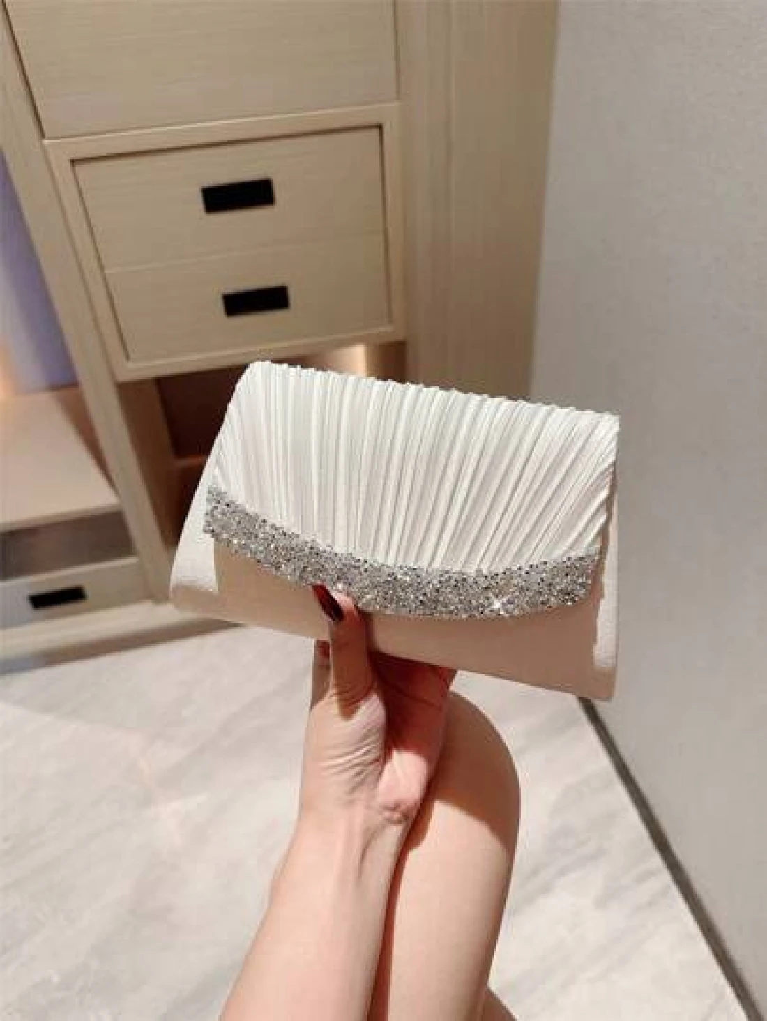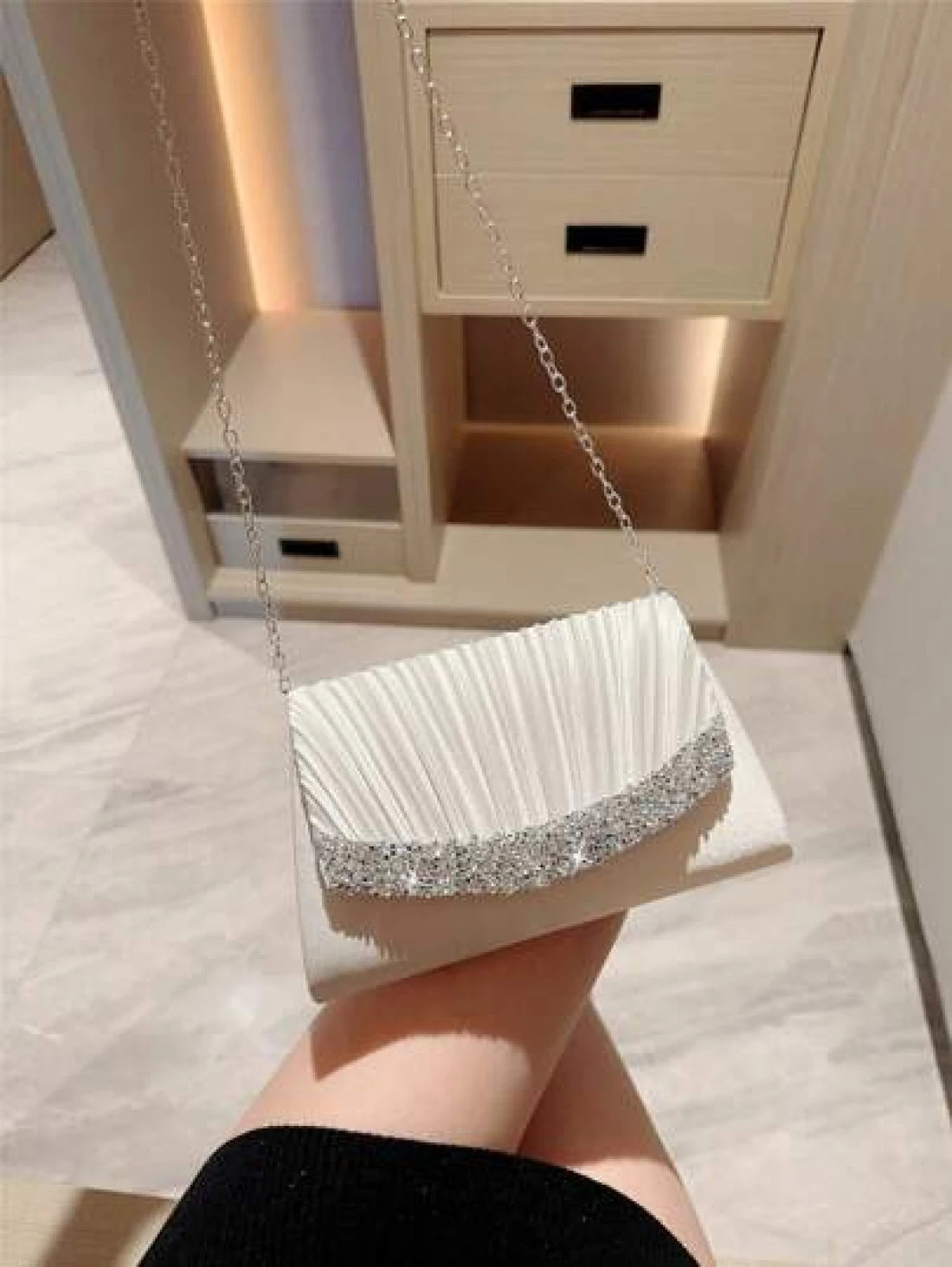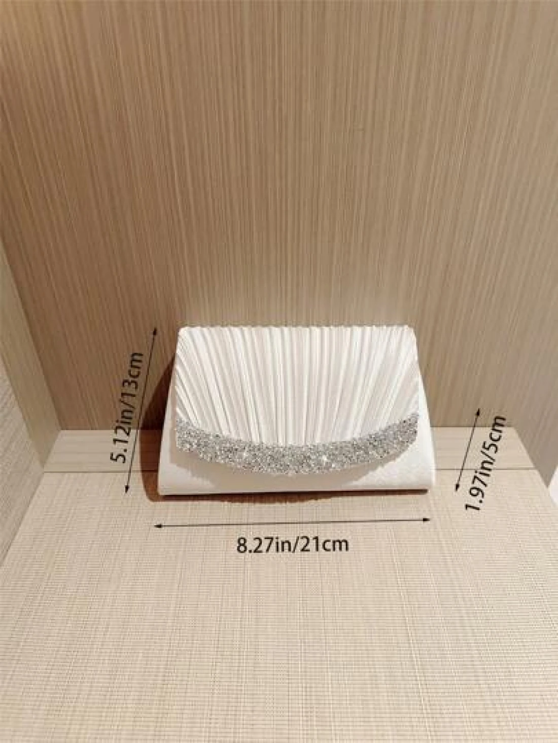 1pc Classic Pleated Satin Evening Dress Clutch Bag Formal Party Handbag Romantic Wedding Bridal Envelope Bag With Rhinestone Decor Chain Shoulder Bag Tready Party Bags Perfect For Party Wedding Prom Dinner Banquet Perfectly Matching With Prom Dresses For Women Prom Accessories Sequin Dress Women Sparkly Dress Elegant Dresses For Women