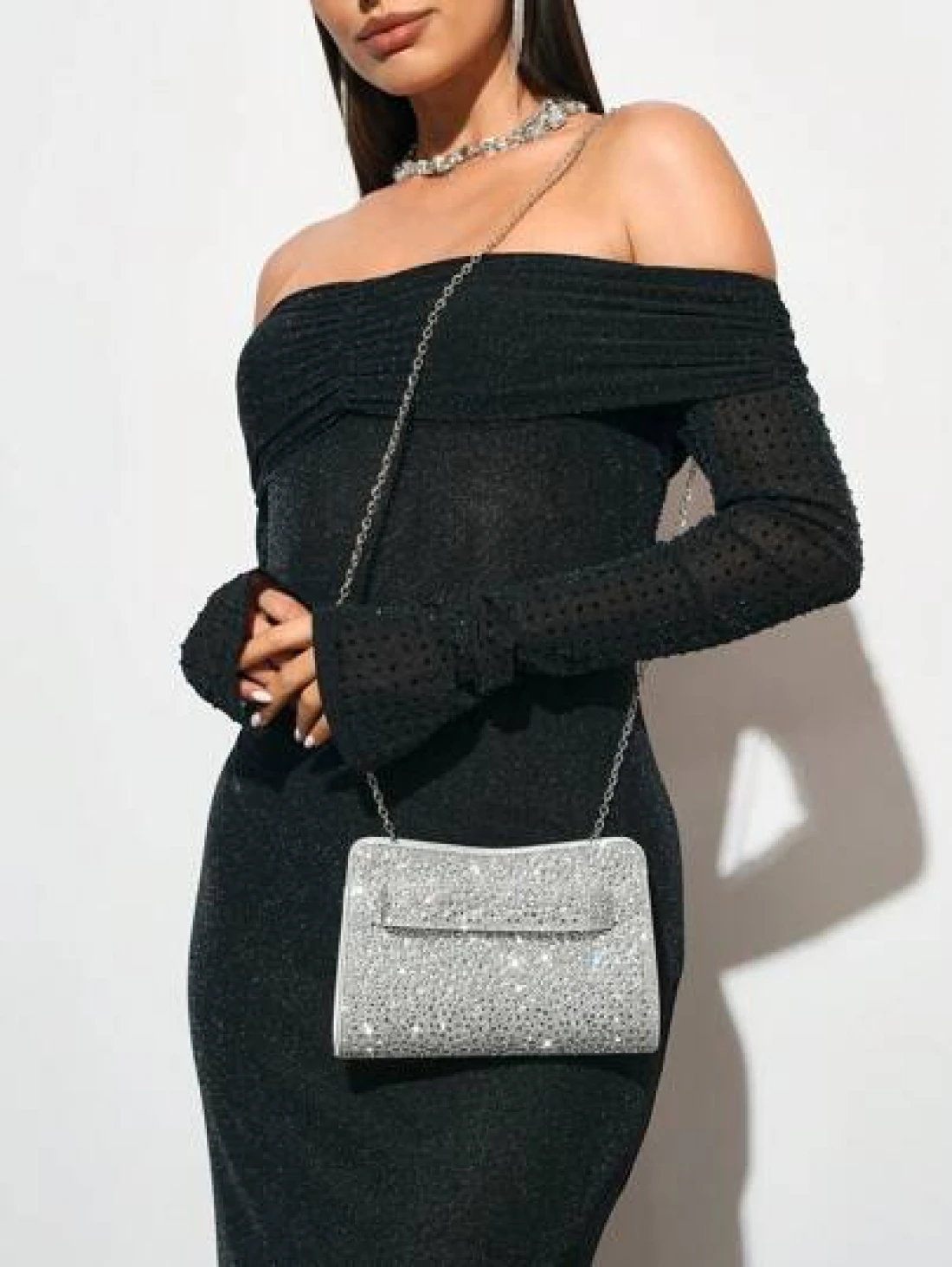 SHEIN BAE Women s Party Clutch Bag For Evening Party Club Holiday Christmas Versatile Sparkling Rhinestone Decor Multi Occasion Use Tready Party Bags Perfect For Party Wedding Prom Dinner Banquet Essential Wedding Items Perfectly Matching With Graduation Dress Prom Dresses Perfectly Matching With Prom Dresses For Women Prom Accessories Sequin Dress Women Sparkly Dress Elegant Dresses For Women Elegant Prom Bag
