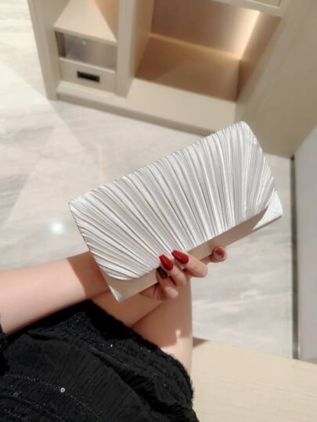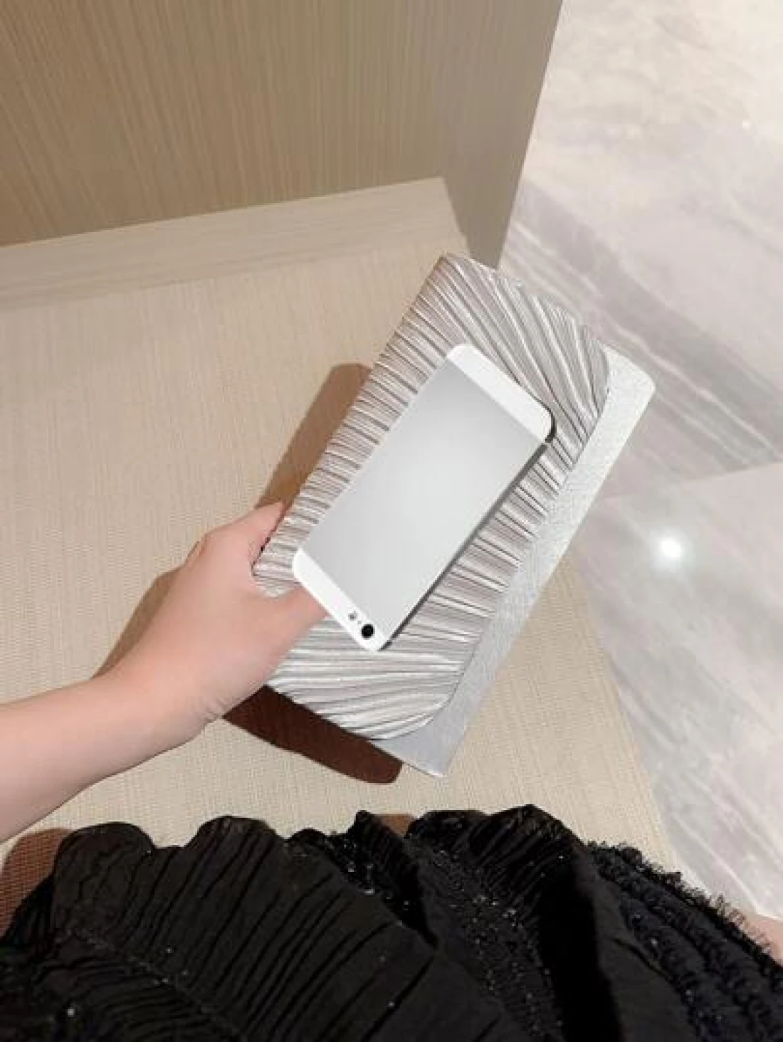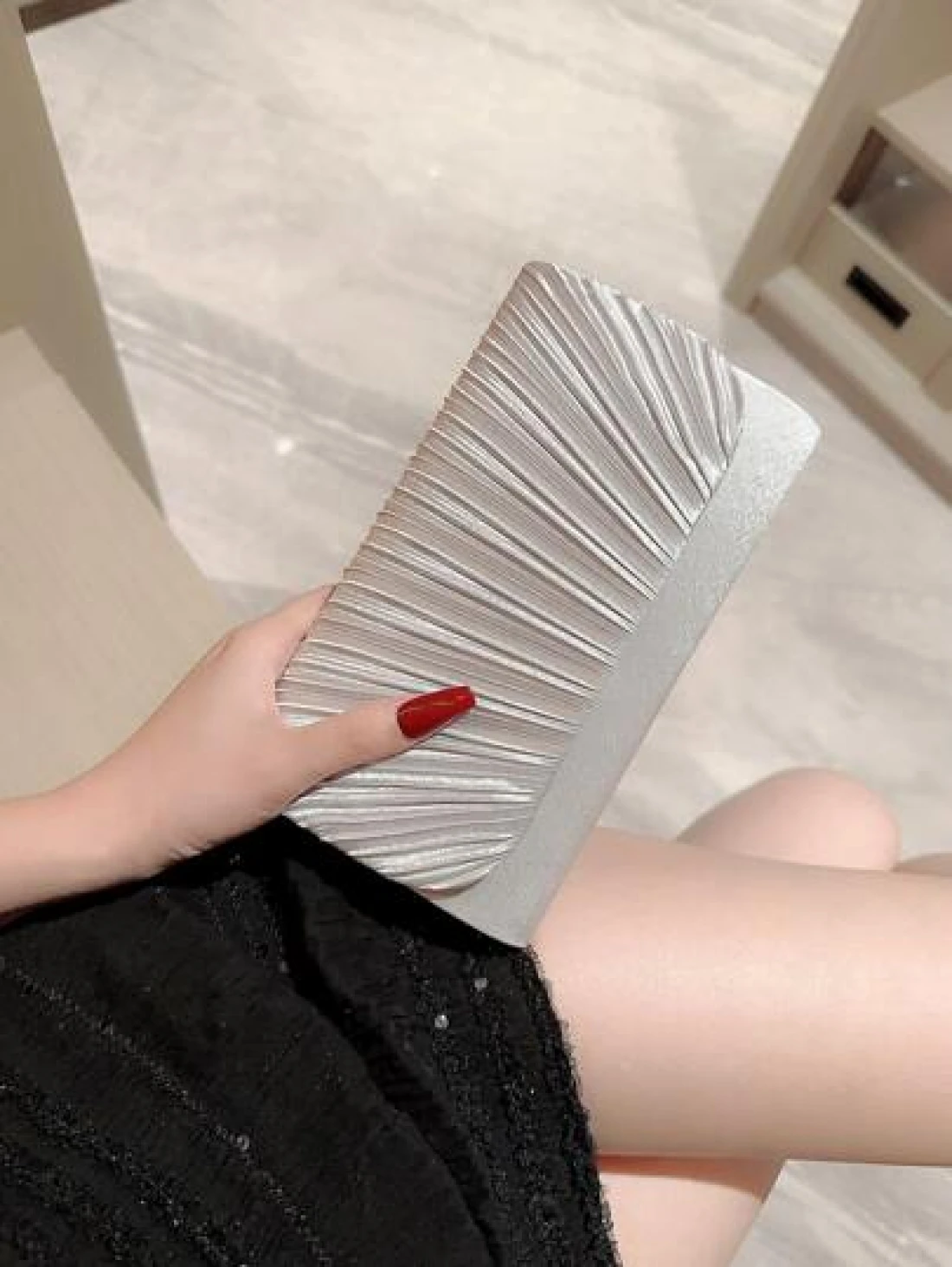 Moonlit EveBag Glitter Bling Shiny Glamorous Elegant Exquisite Mini Pleated Flap Design Evening Bag Dinner Bag For Party Girl Woman For Female Perfect For Party Wedding Prom Dinner Banquet For Best Gi