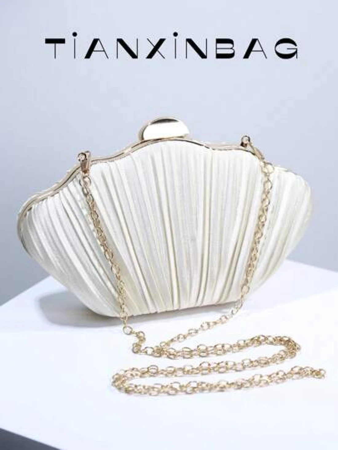 New Fashion High End Party Banquet Seashell Design Clutch Purse Pleated Lady s Hand Held Bag Evening Dress Handbag Formal Event Bag