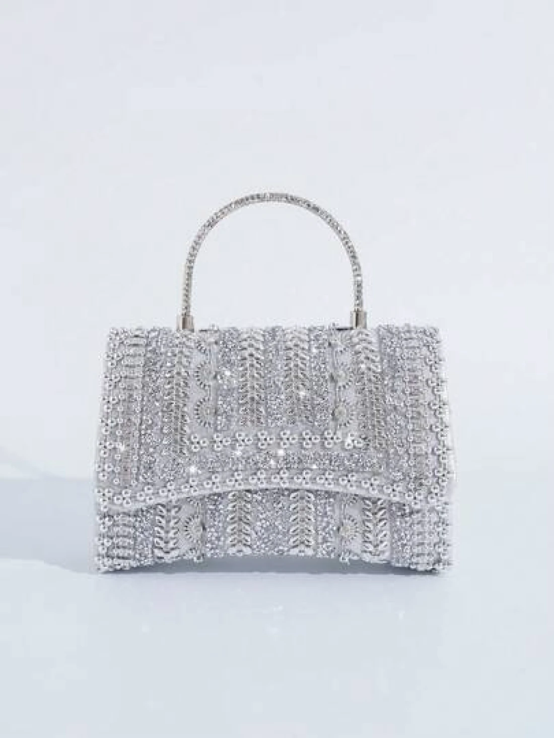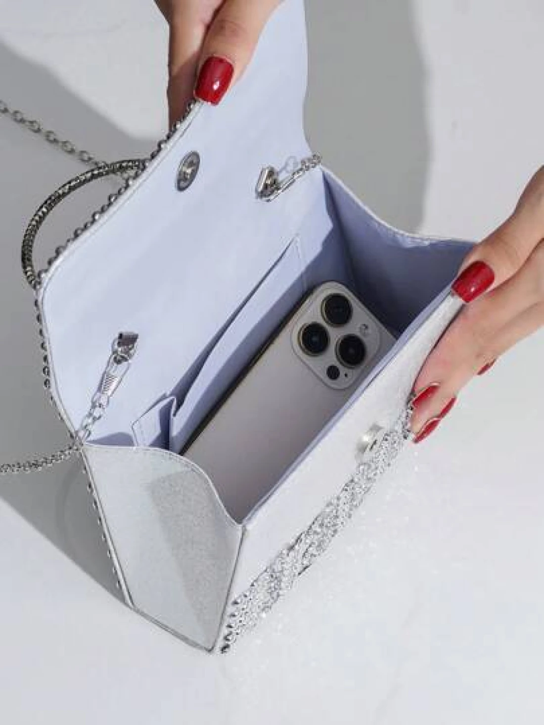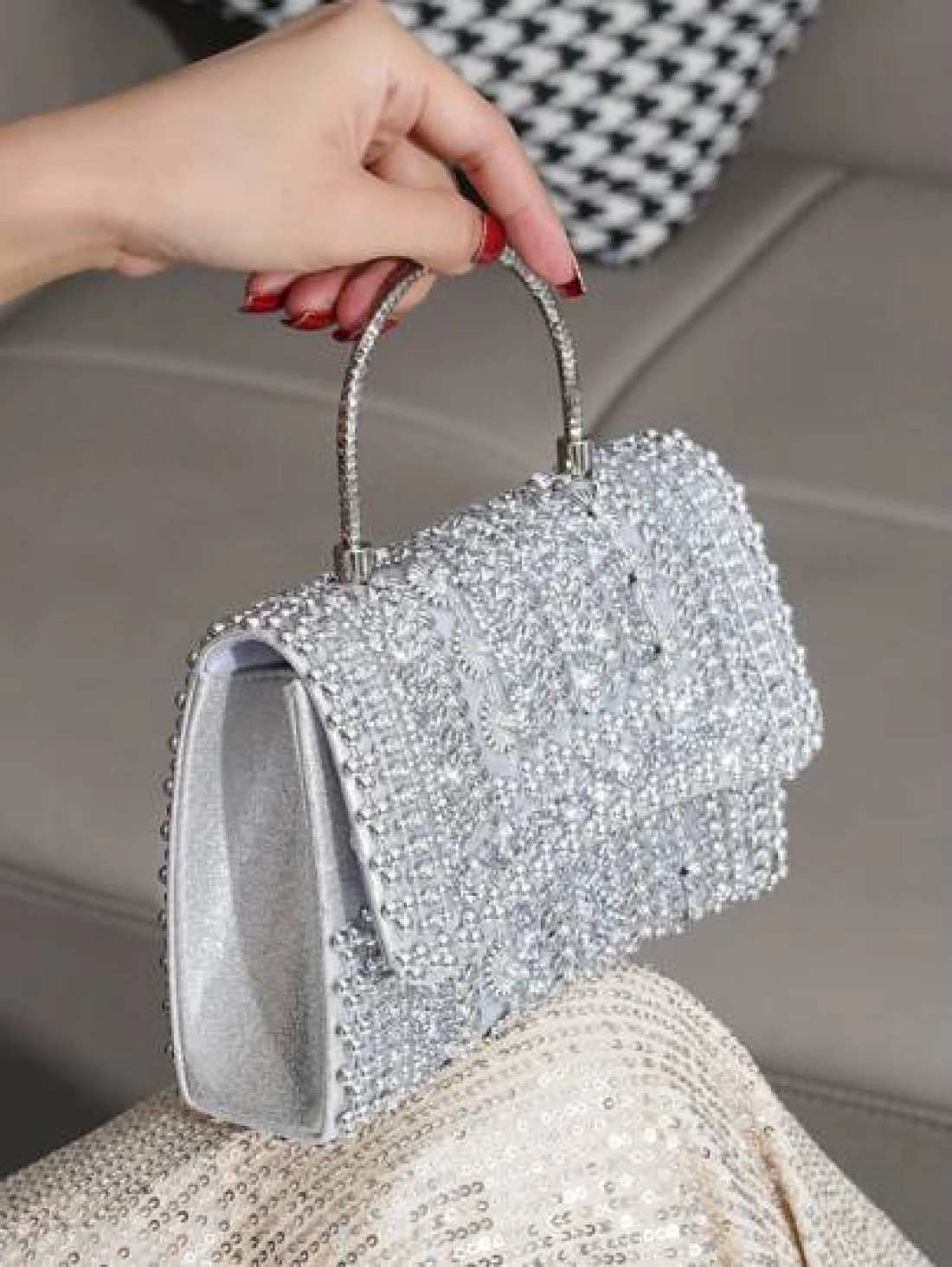 Elegant Silver Sparkling Rhinestone Decor Party Clutch Handbag Crystal Beaded Evening Bag For Women Formal Occasions Perfect For Party Wedding Prom Dinner Banquet Matching With Holiday Party Dress Evening Dress Sequin Dress Perfectly Matching With New Years Outfit Excellently Matching With Party Dresses For Women Tready Party Bags Perfect For Party Wedding Prom Dinner Banquet Essential Wedding Items Perfectly Matching With Graduation Dress Prom Dresses Glamorous Rhinestone Bag Perfectly Matching With Prom Accessories