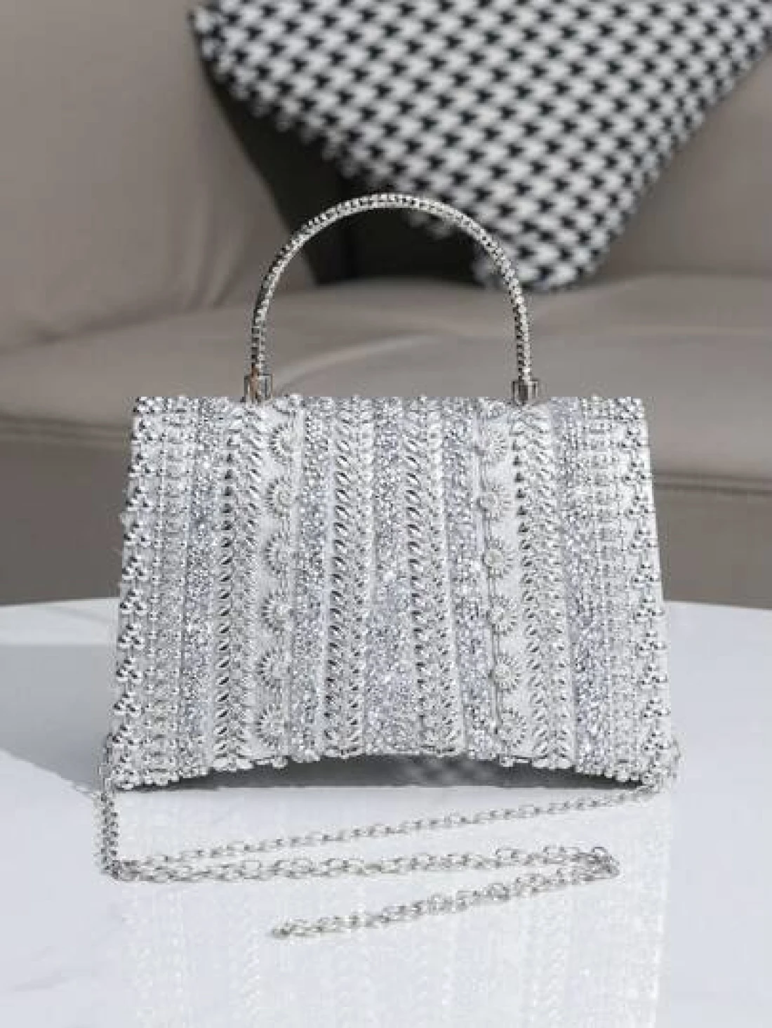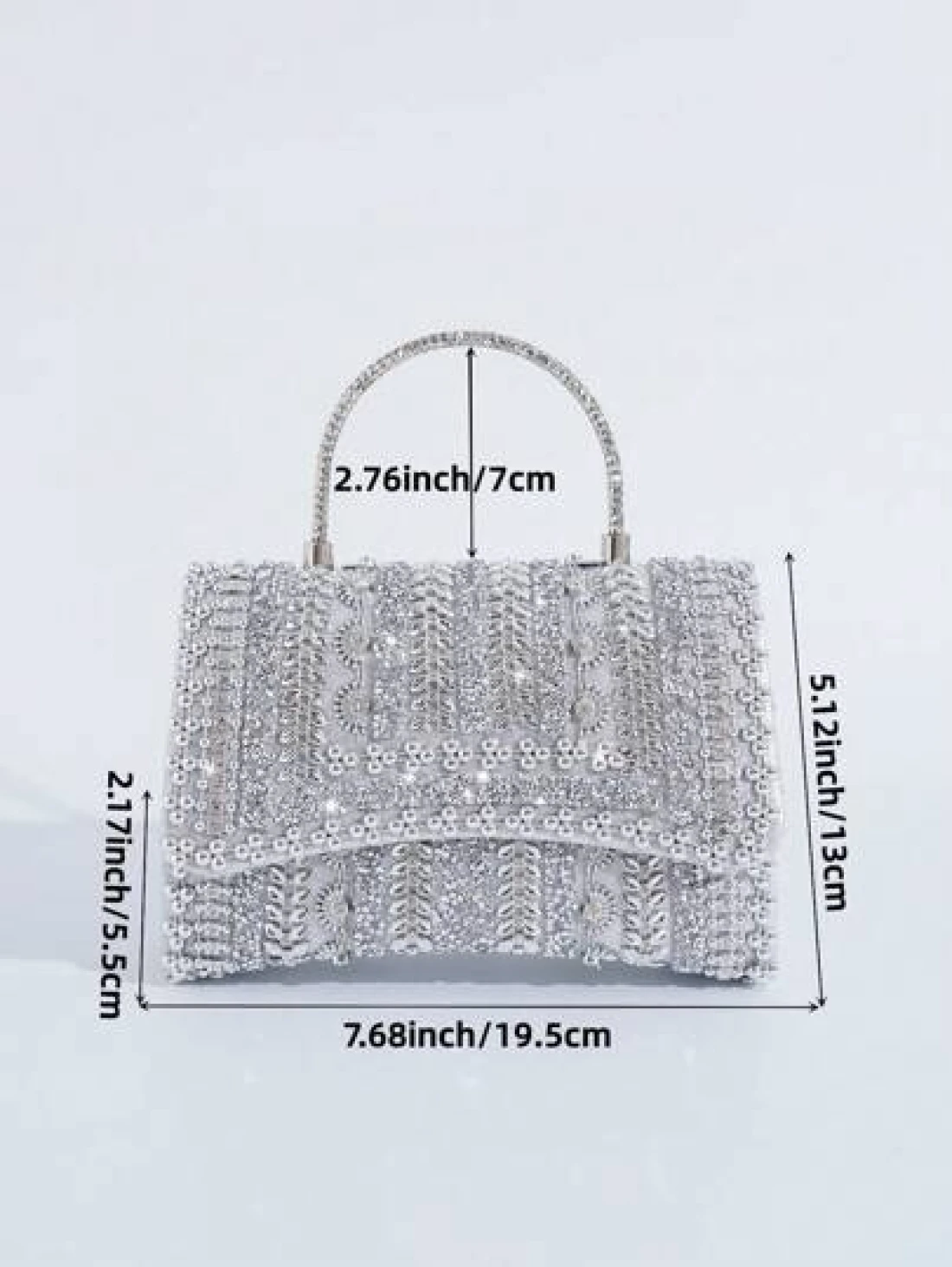 Elegant Silver Sparkling Rhinestone Decor Party Clutch Handbag Crystal Beaded Evening Bag For Women Formal Occasions Perfect For Party Wedding Prom Dinner Banquet Matching With Holiday Party Dress Eve
