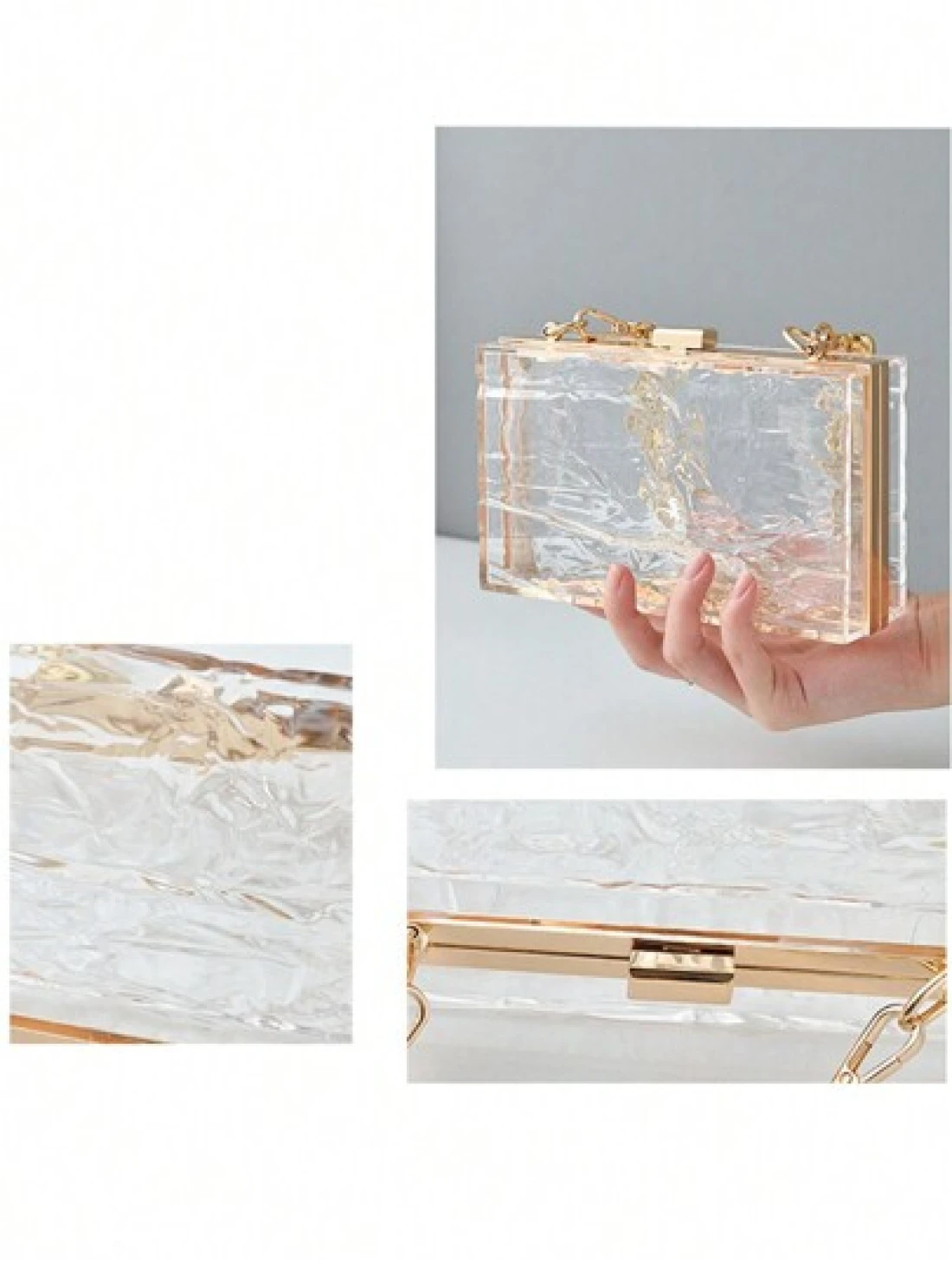 1pc Women s European And American Classic Fashion Acrylic Cracked Glacier Pattern Clutch Bag For Evening Party Birthday Women High End Transparent Crossbody Bag With Chain Fashion Party Bag Perfect For Party Wedding Prom Dinner Banquet Matching With Holiday Party Dress Evening Dress Sequin Dress