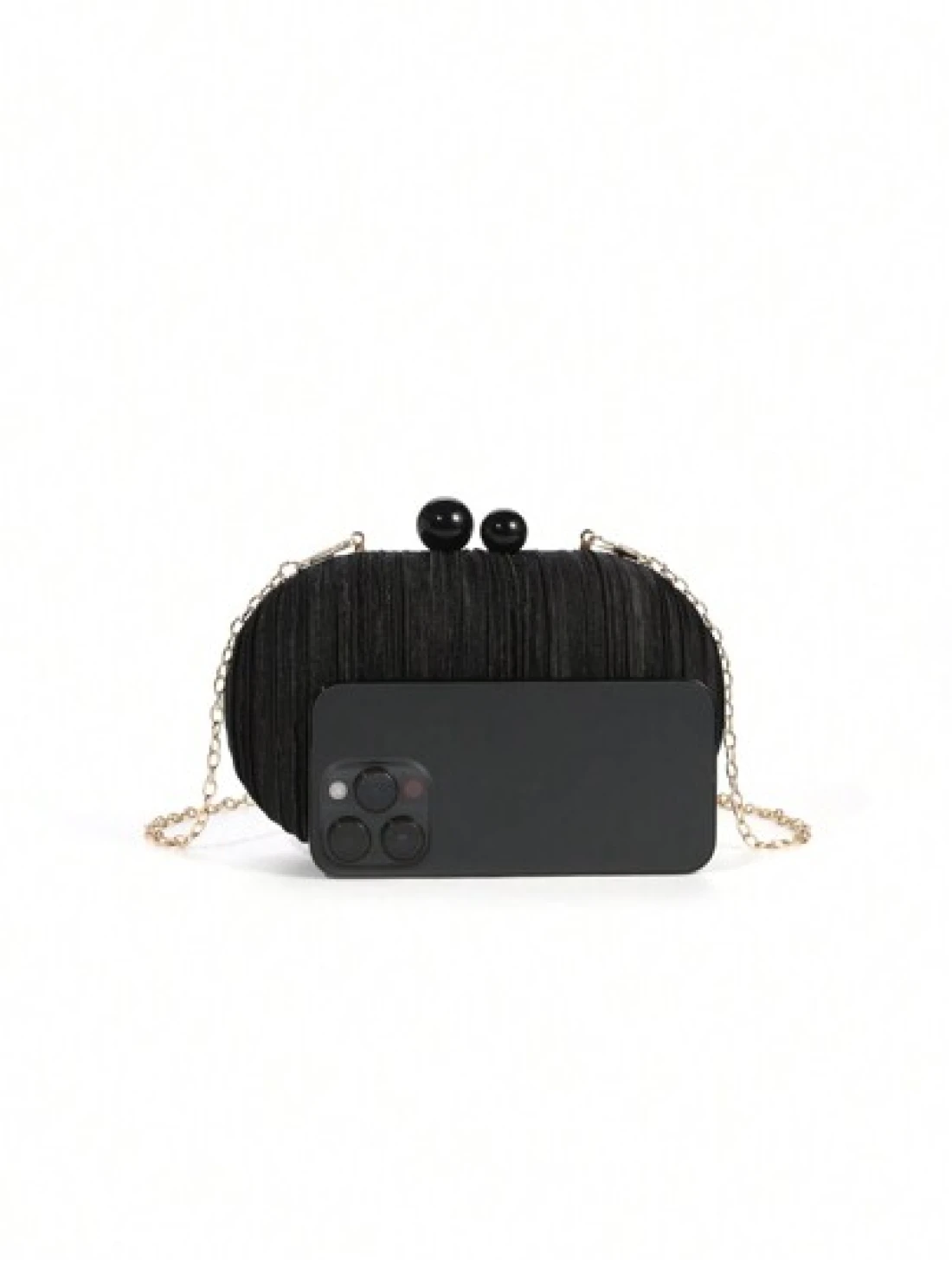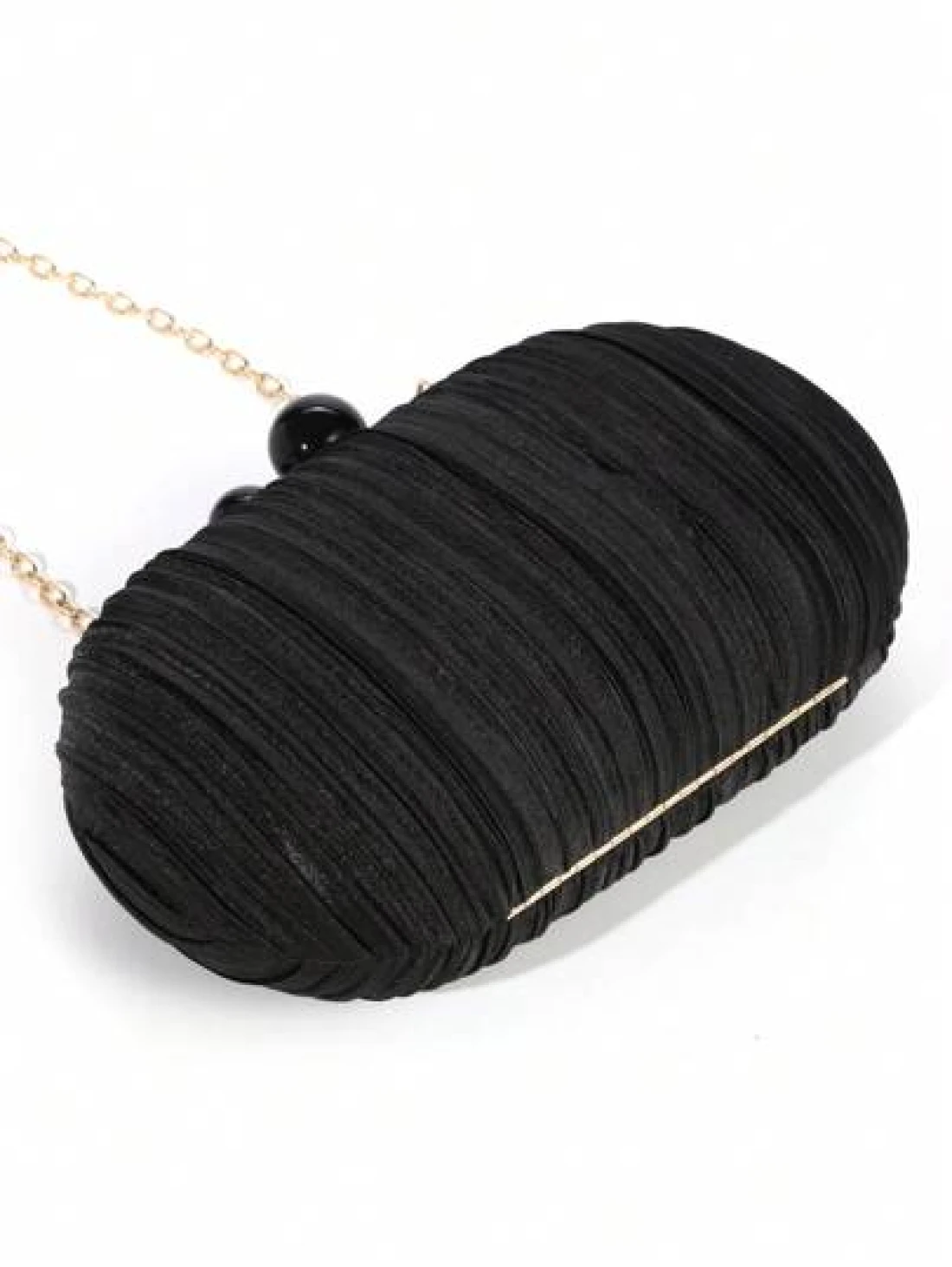 1pc Elegant Mini Solid Color Satin Textured Pleated Oval Clutch Bag Suitable For Party Wedding Formal Events