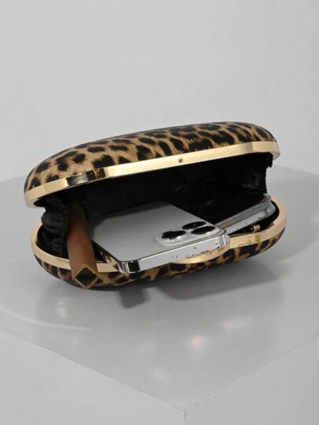 Fashionable PU Leopard Print Evening Clutch Bag Handbag Suitable For Wedding Party And Ball Shoulder Bag With Chain Strap Leopard Print Purse For Women Leopard Comeback