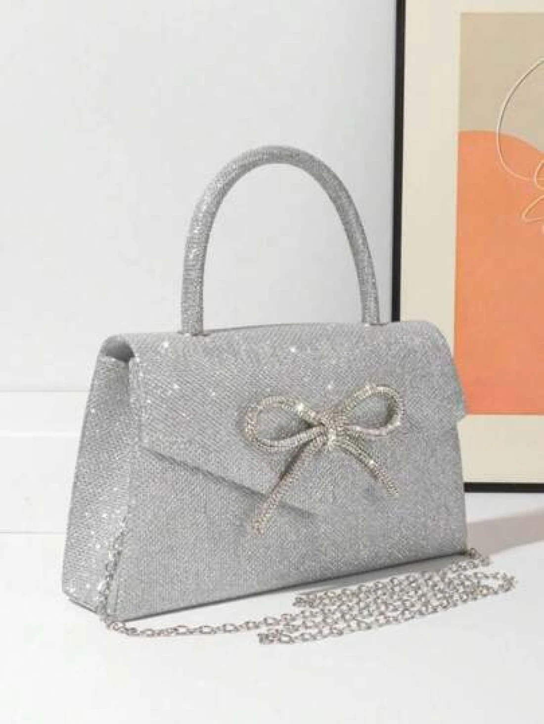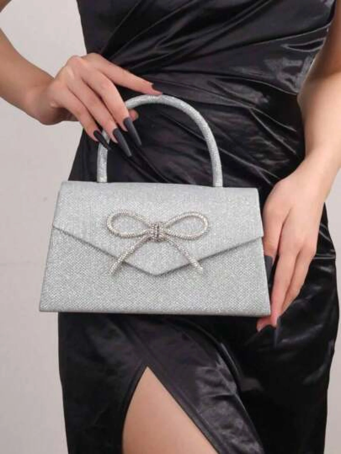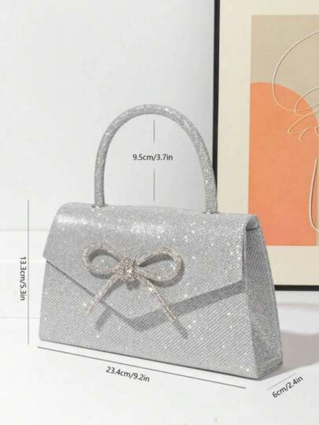 Glitter Bowkont Decorate Purse With Top Handle Evening Bag Black Crossbody Bags Wedding Party Shoulder Bag