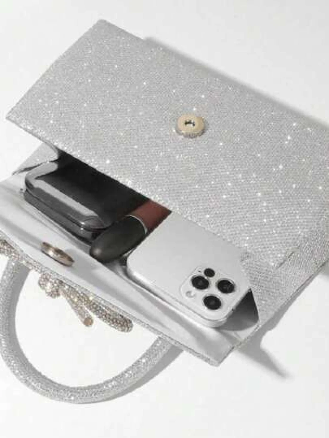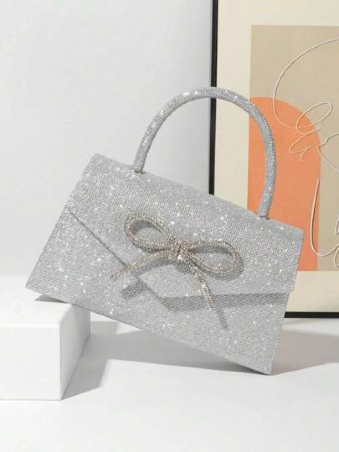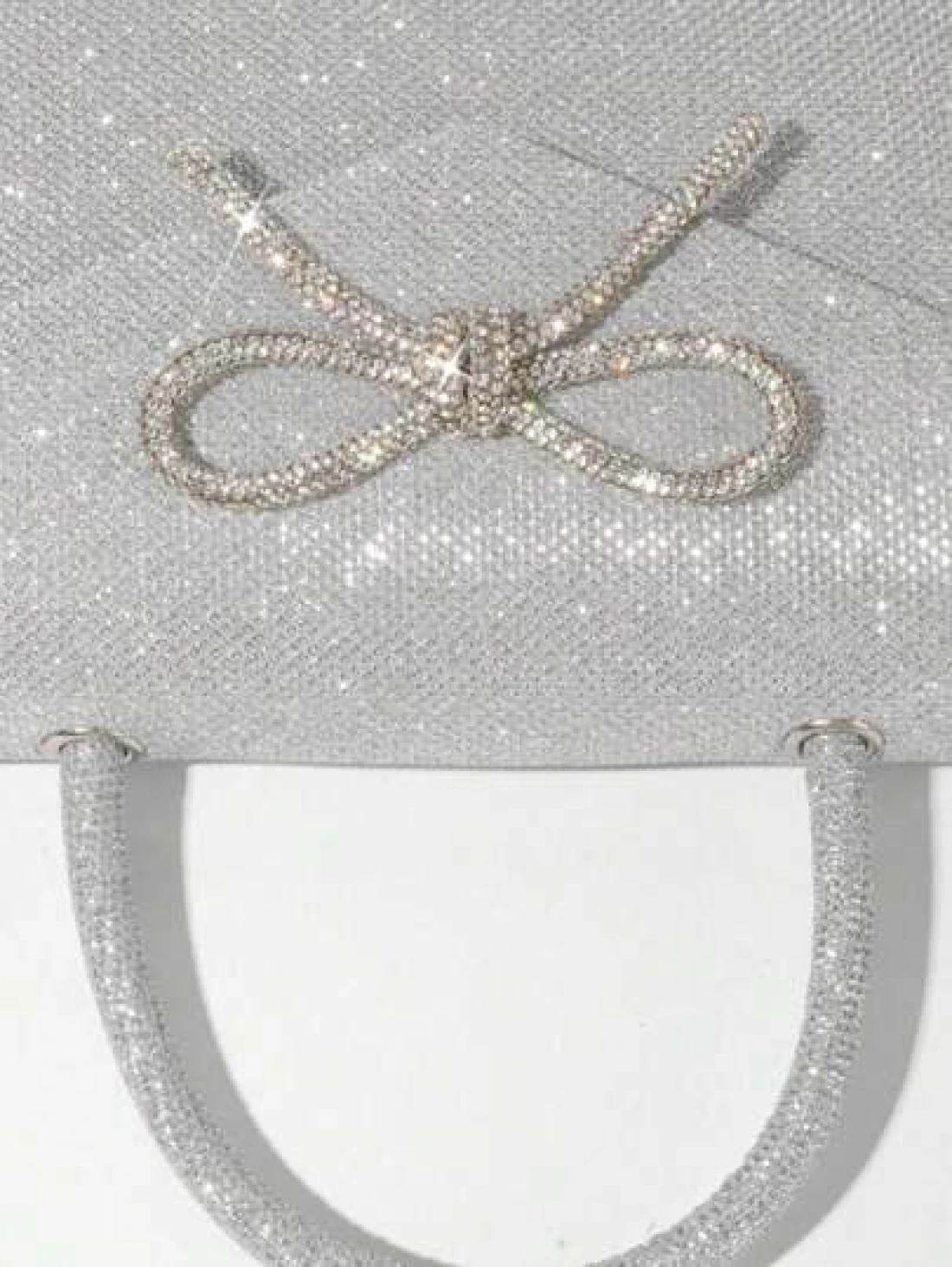 Glitter Bowkont Decorate Purse With Top Handle Evening Bag Black Crossbody Bags Wedding Party Shoulder Bag