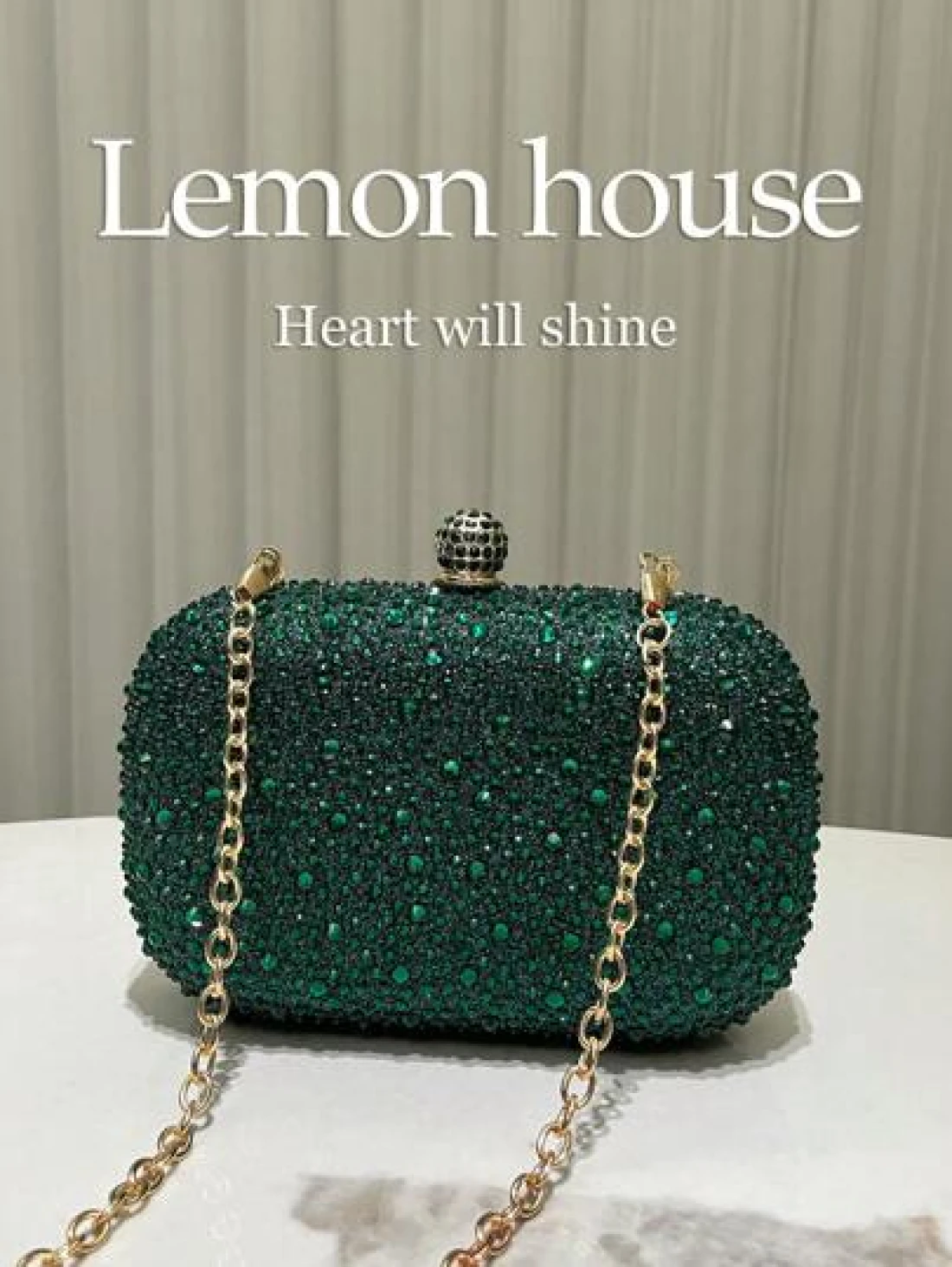 1pc Elegant Green Rhinestone Decor Mini Clutch Purse With Detachable Metal Chain Strap Suitable For Formal Events Wedding Party And Make A Great Gift For Women Perfect For Party Wedding Prom Dinner Banquet Matching With Holiday Party Dress Evening Dress Sequin Dress Excellently Matching With Party Dresses For Women Essential Wedding Items Perfectly Matching With Graduation Dress Prom Dresses Perfectly Matching With Prom Accessories