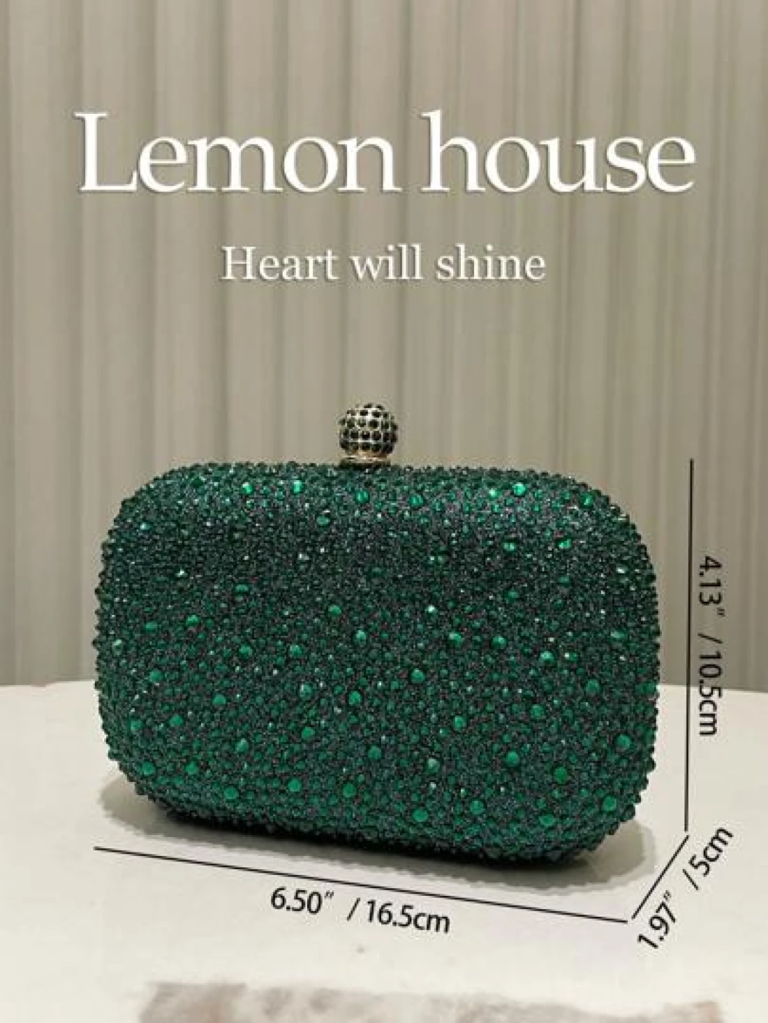 1pc Elegant Green Rhinestone Decor Mini Clutch Purse With Detachable Metal Chain Strap Suitable For Formal Events Wedding Party And Make A Great Gift For Women Perfect For Party Wedding Prom Dinner Ba