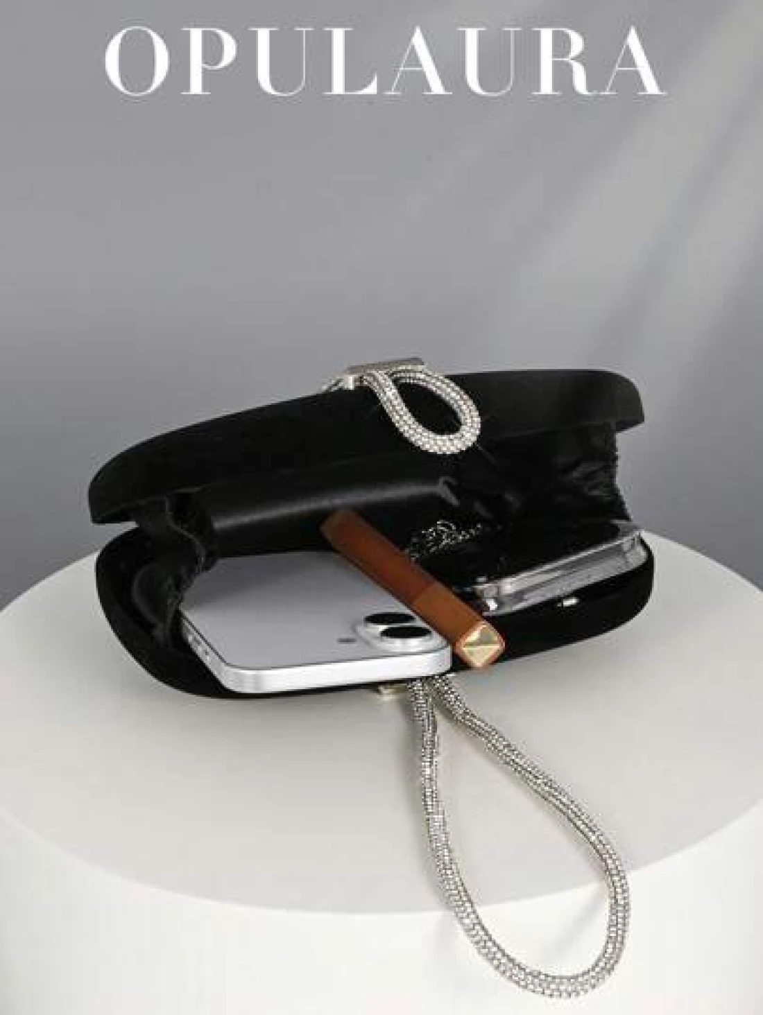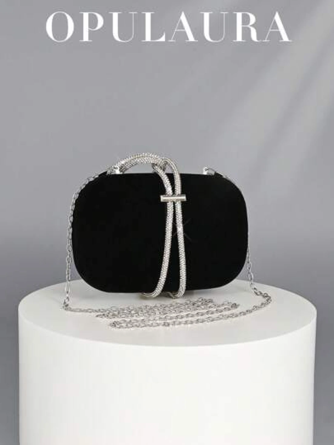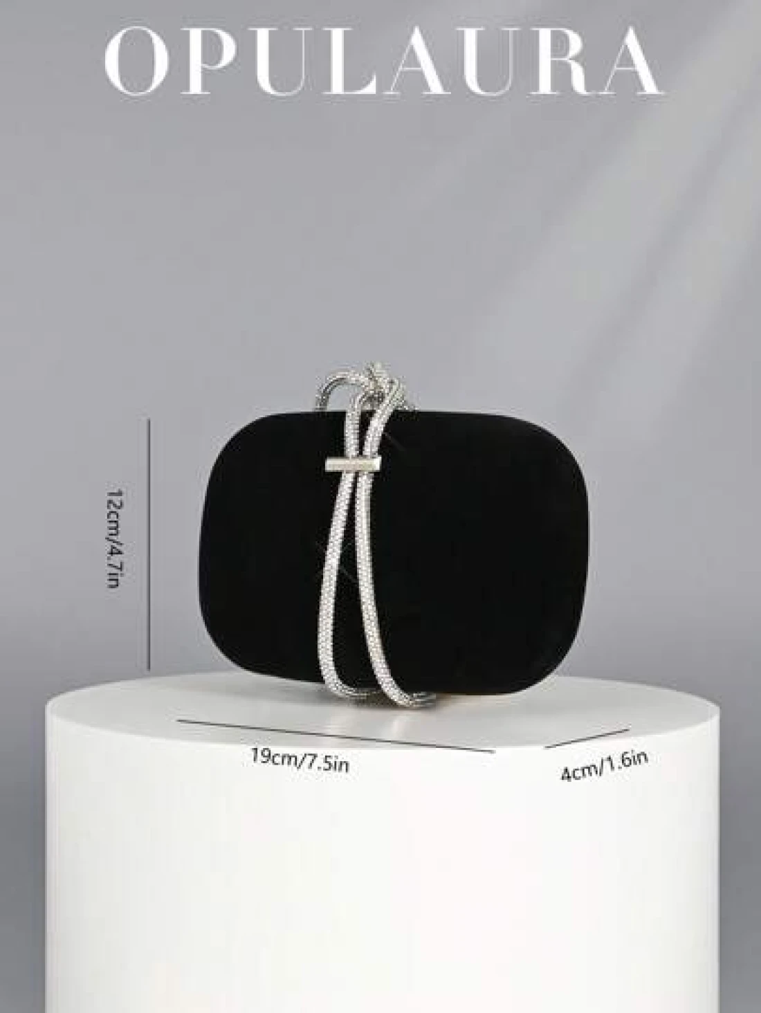 OpulAura Vintage Velvet Box Shaped Evening Clutch Bag Luxury Rhinestone Decorated Formal Party Purse For Holiday Gala Wedding Formal Occasion Black