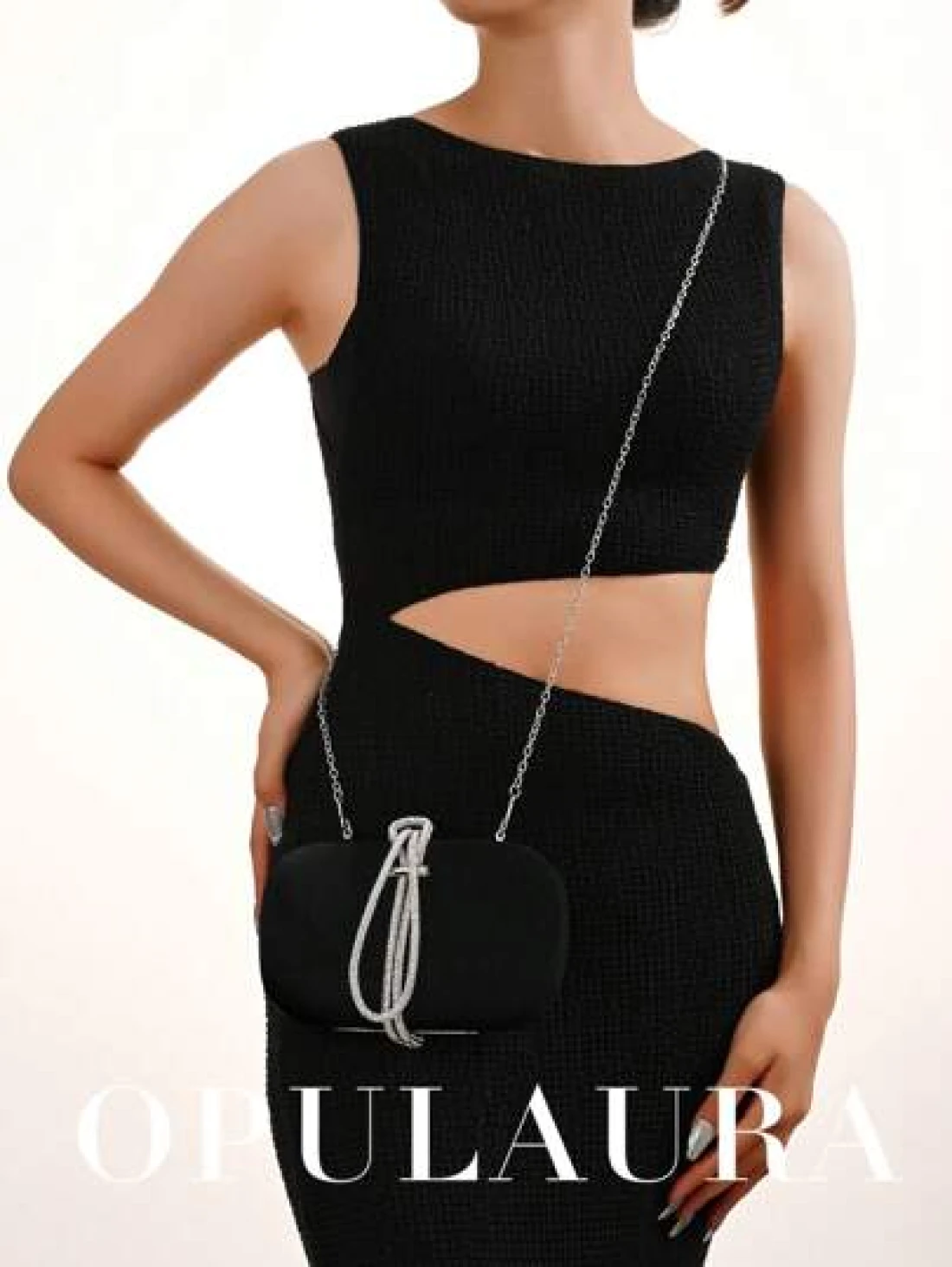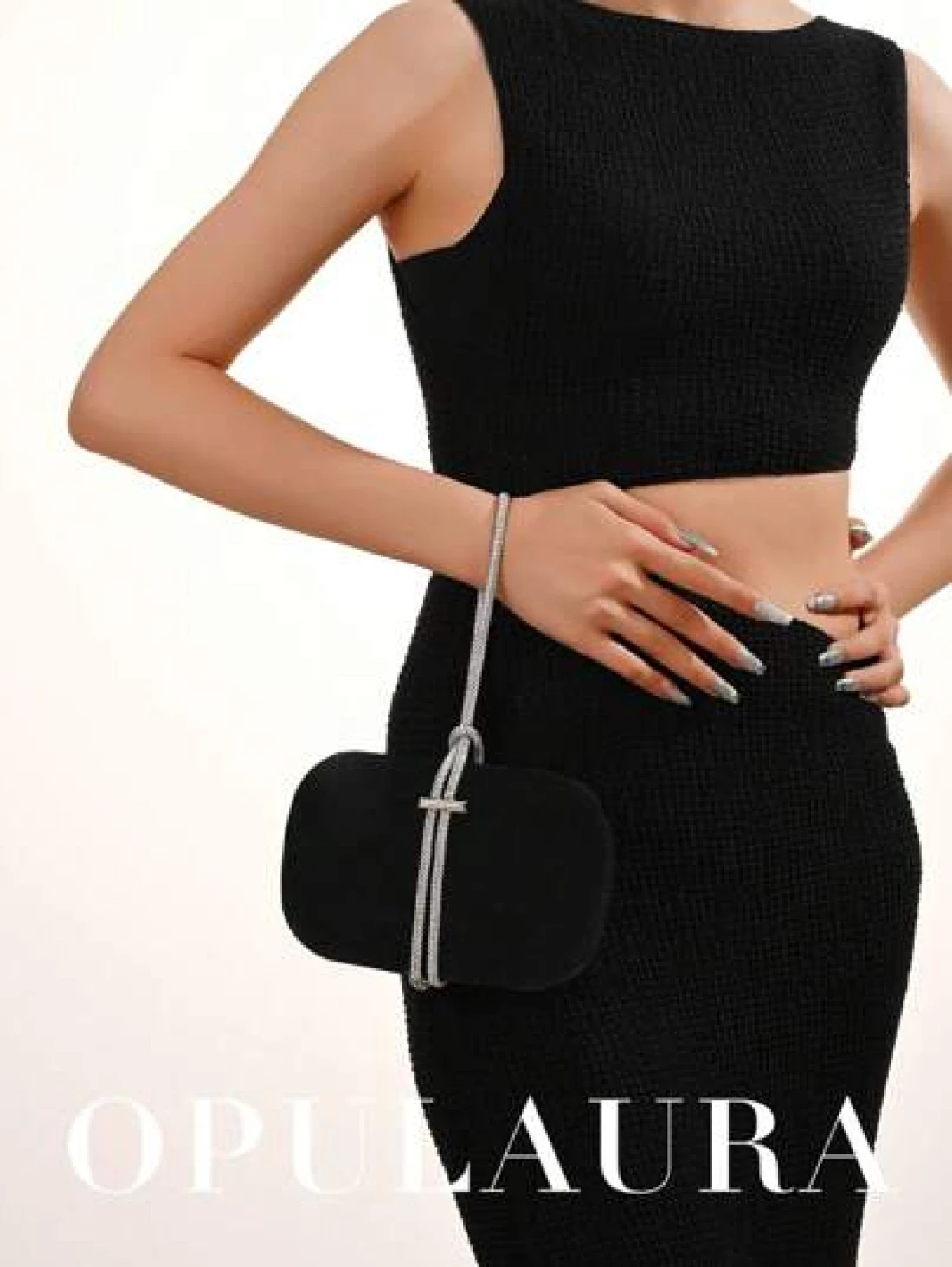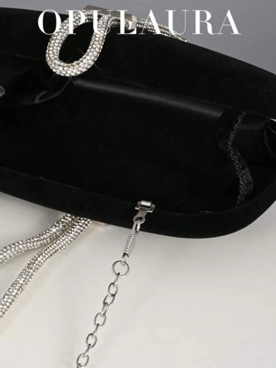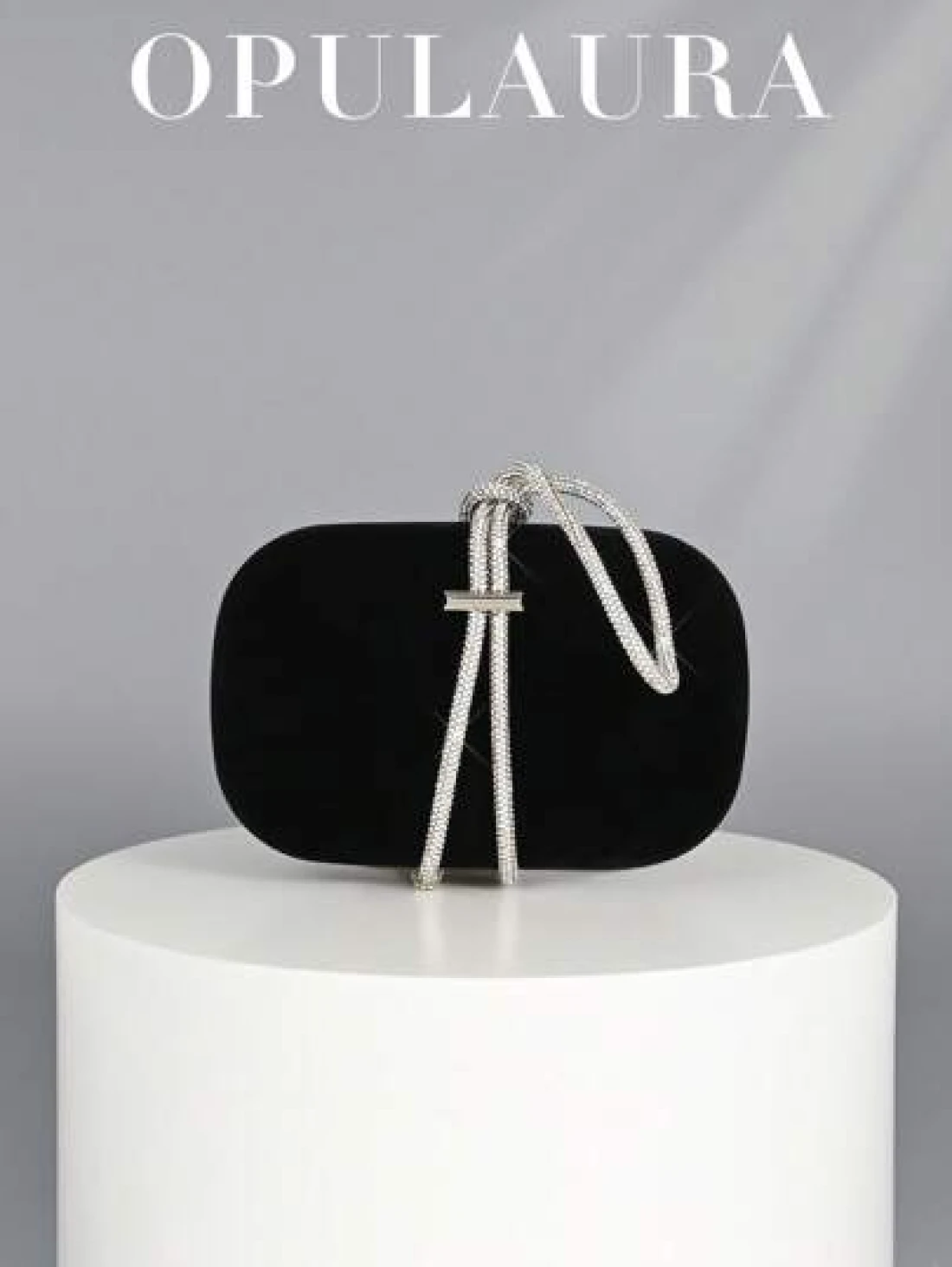 OpulAura Vintage Velvet Box Shaped Evening Clutch Bag Luxury Rhinestone Decorated Formal Party Purse For Holiday Gala Wedding Formal Occasion Black