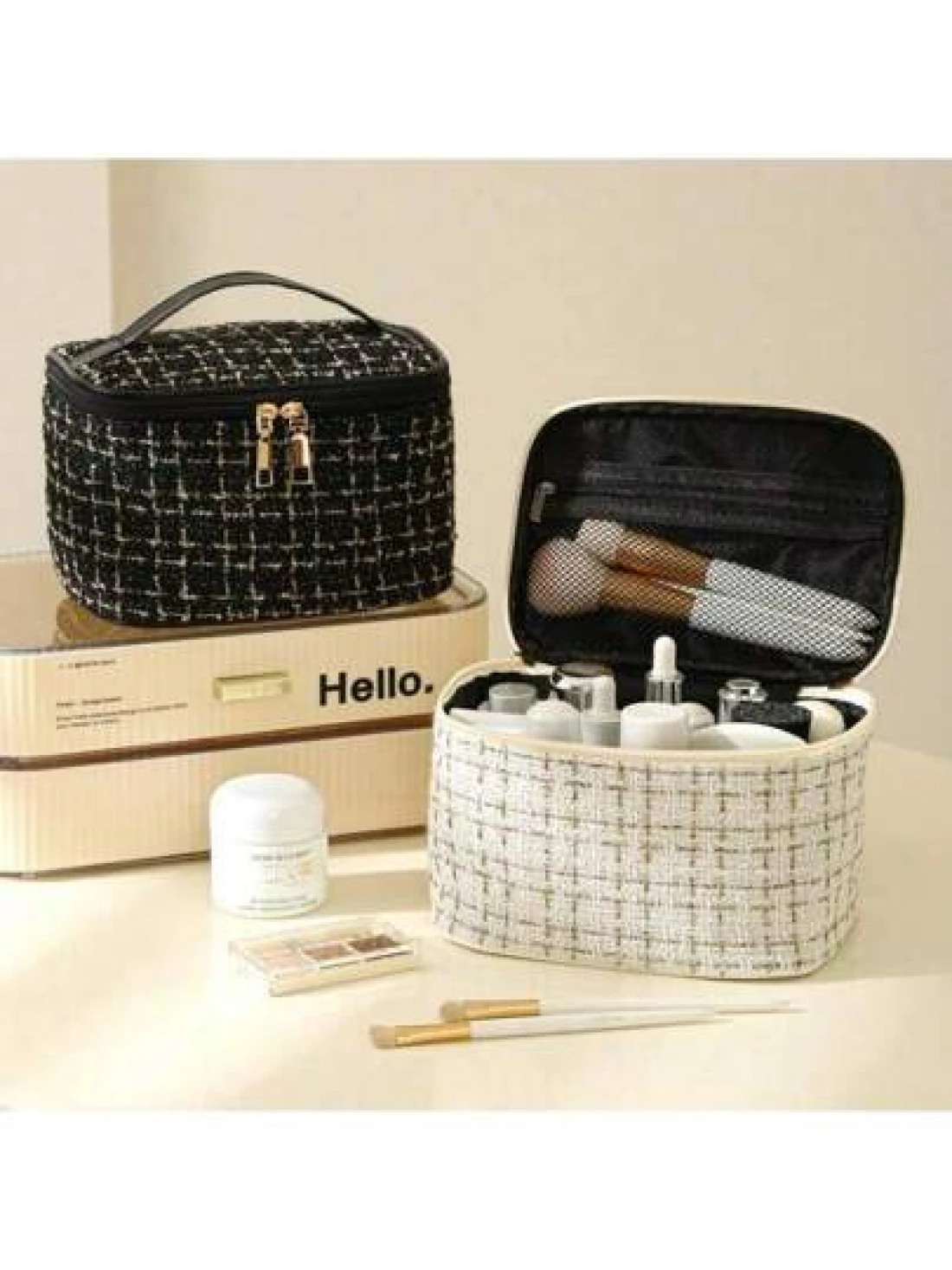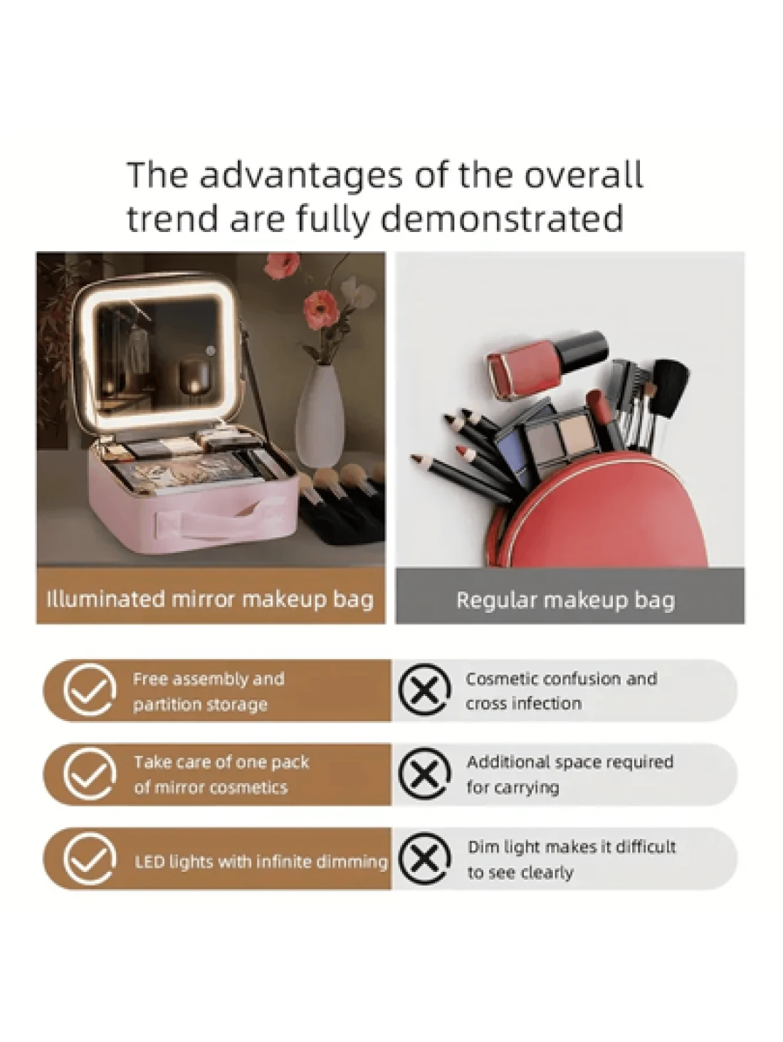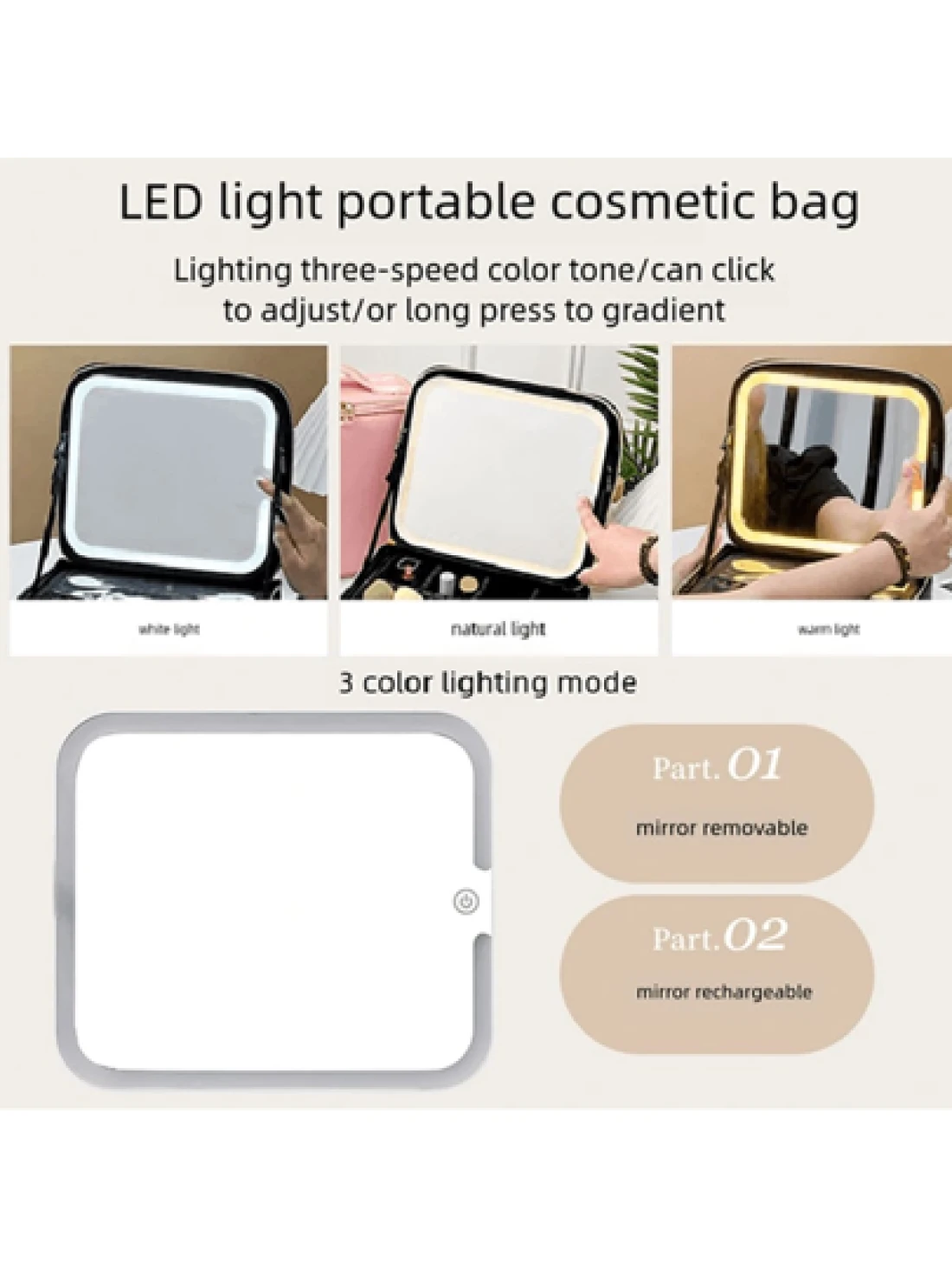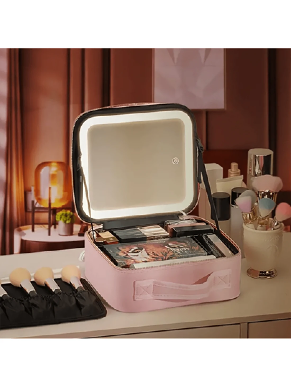 Makeup Bag With Light Up Mirror Travel Cosmetic Case Box 3 Color LED Lighted Mirror With Adjustable Brightness Waterproof Leather Adjustable Dividers Brush Organizer PU Leather Suitable For Girls And Ladies Summer Travel Vacation Home Bathroom Decor Holiday Makeup Organizer