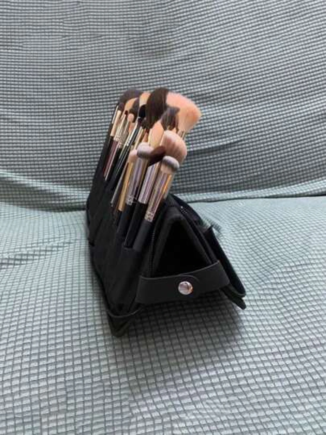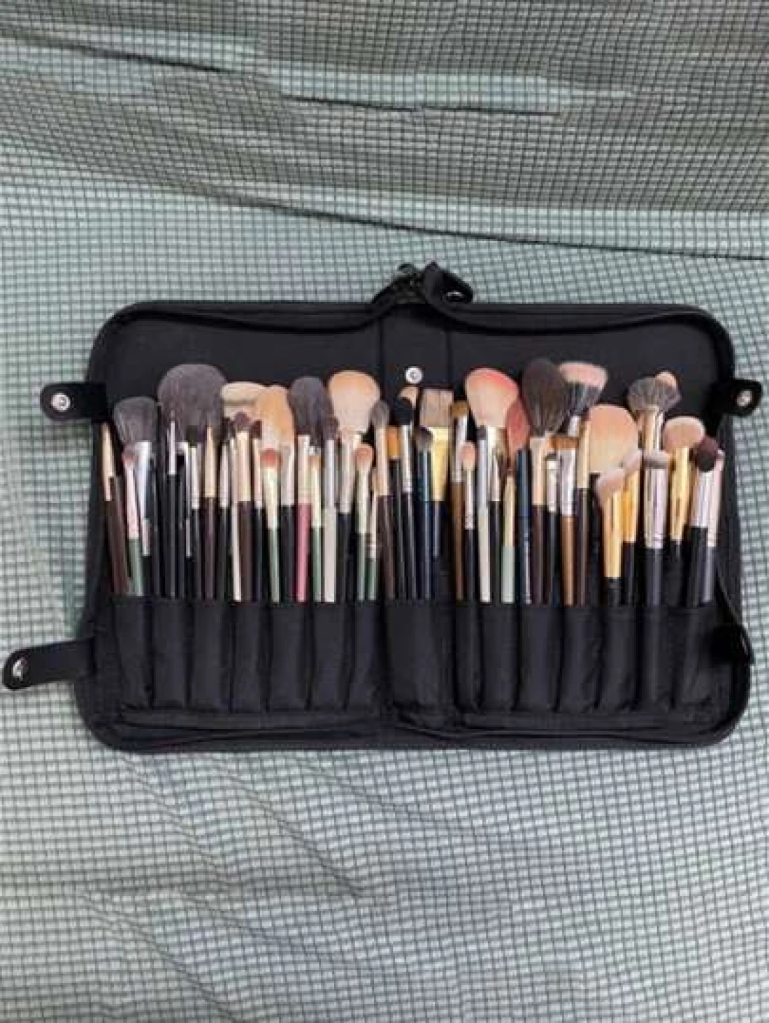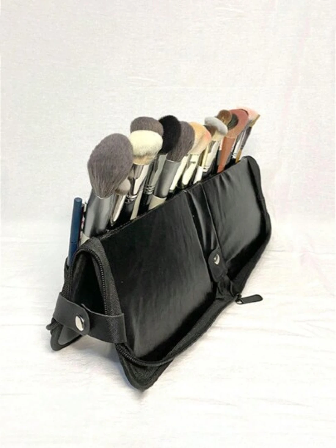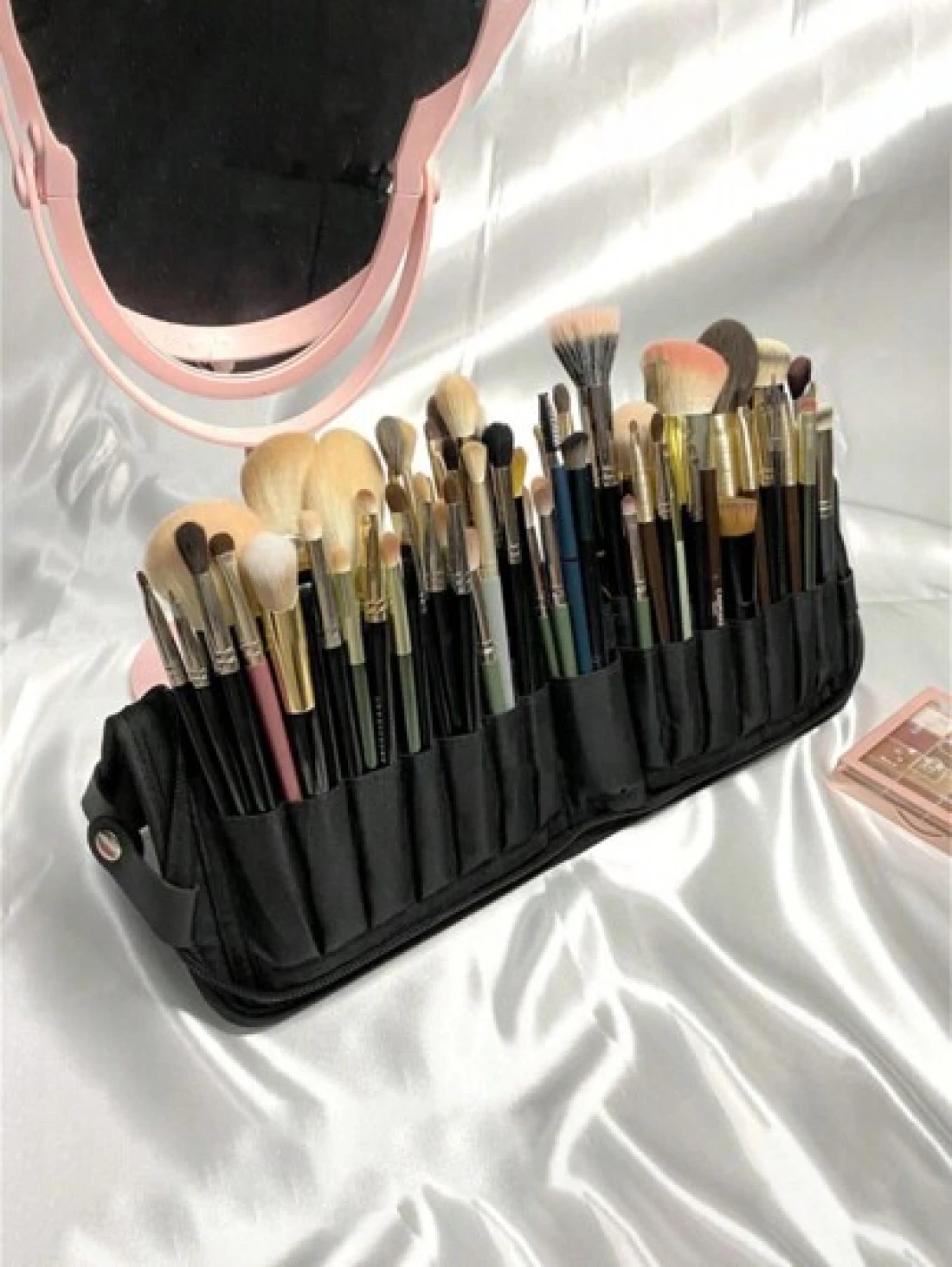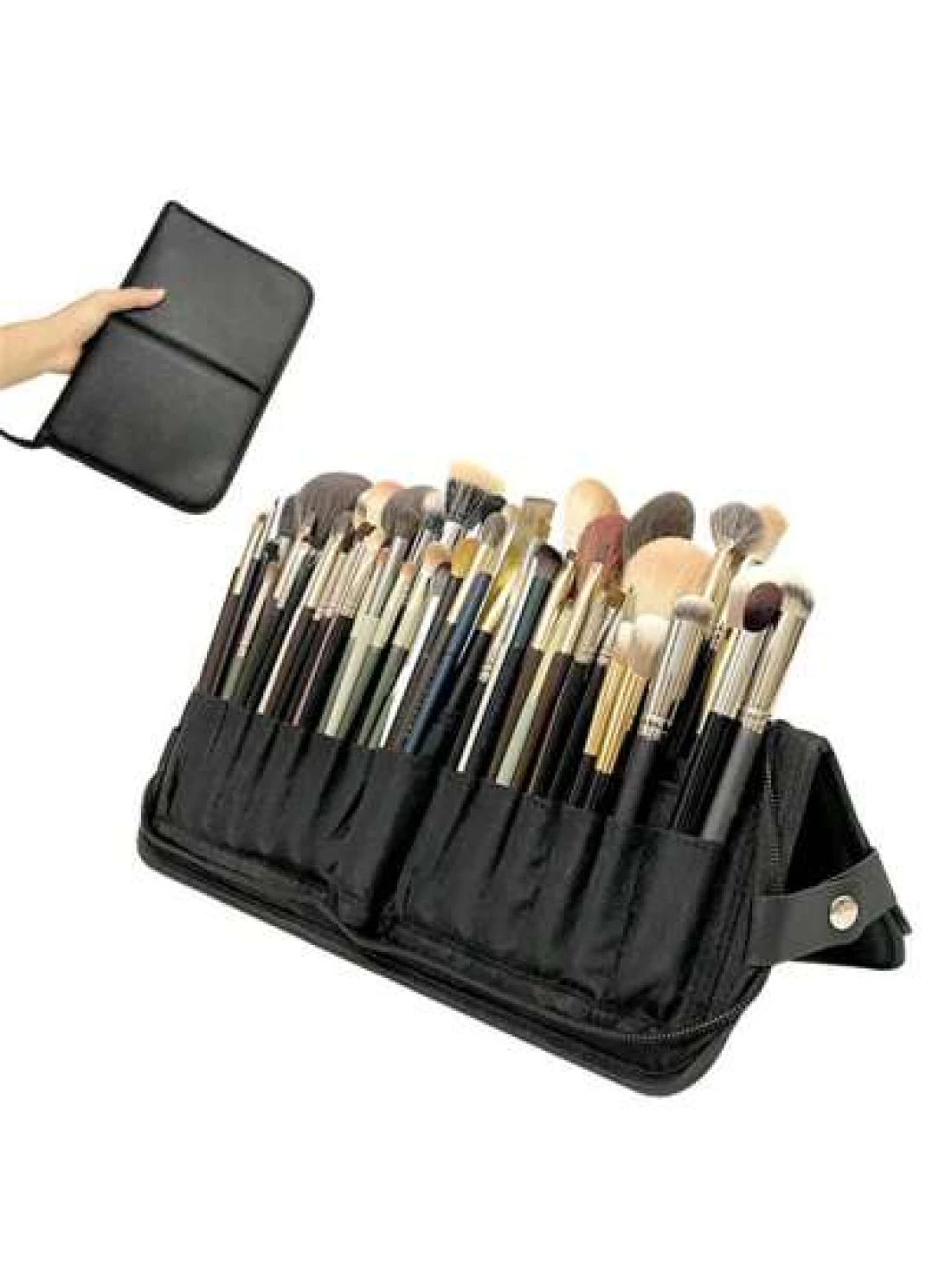1Pc Professional Makeup Artist Folding Zipper Brush Holder With Spacious Interior Large Capacity PU14 Holes Canvas 29 Holes Cosmetic Standing Pouch With Portable Beauty Storage Bag Makeup Brush Organi