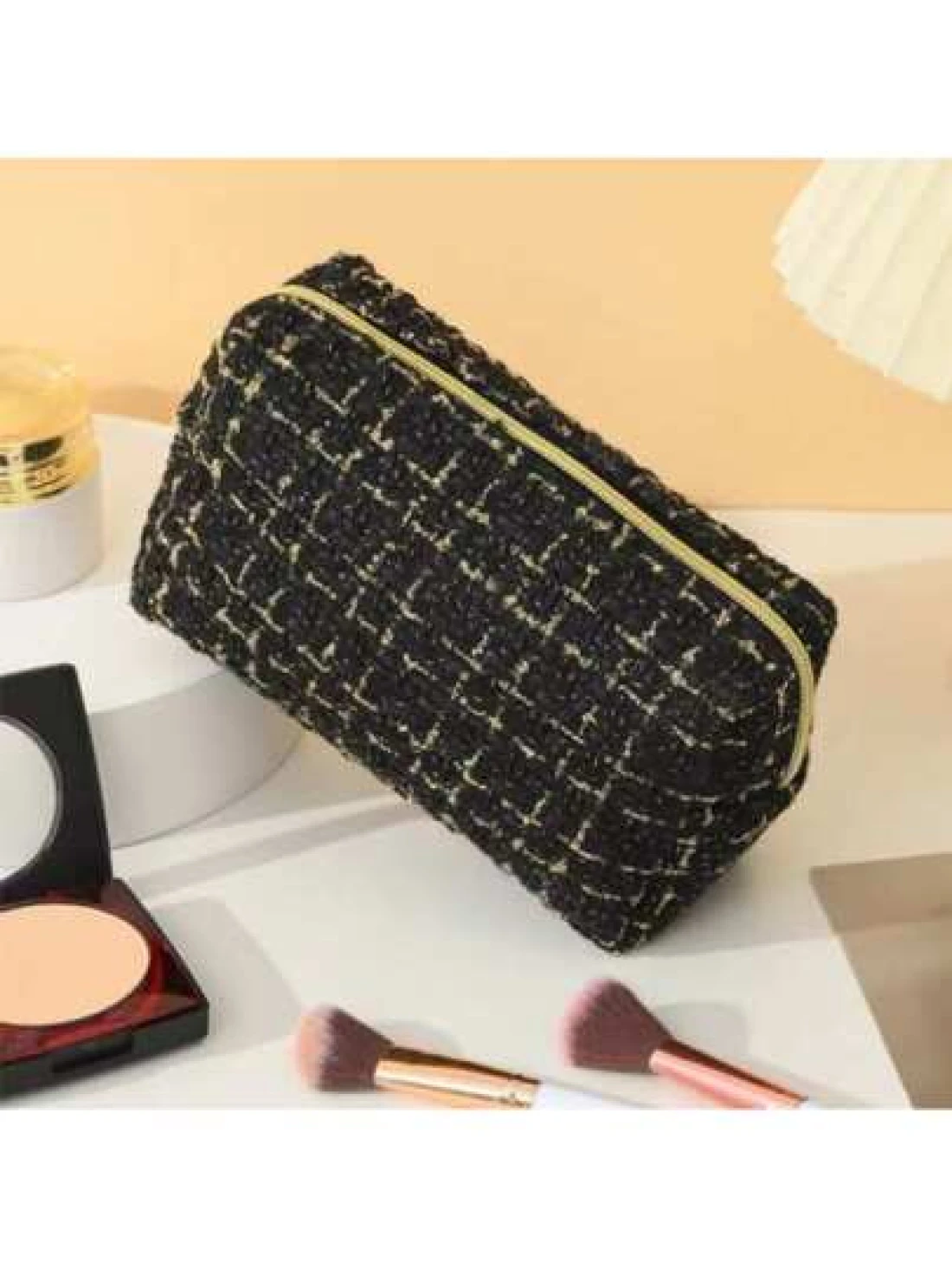 1pc Large Capacity Checkerboard Hand Woven Cosmetic Bag Portable Toiletry Organizer Travel Case For Travel Storage Bag Makeup Bag Cosmetic Bag Vacation Organizer Large Capacity Makeup Organizer Makeup Case For Lipstick Brush Skincare Mobile Phone Coin Small Items For Home Gift Vacation And Festival Halloween Christmas Multifunctional Use Boho Vibes