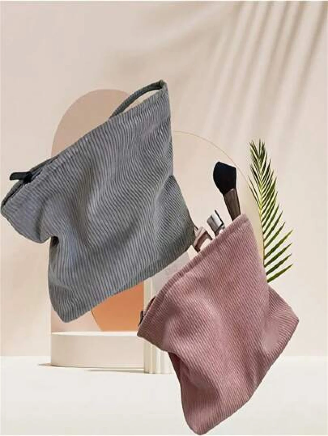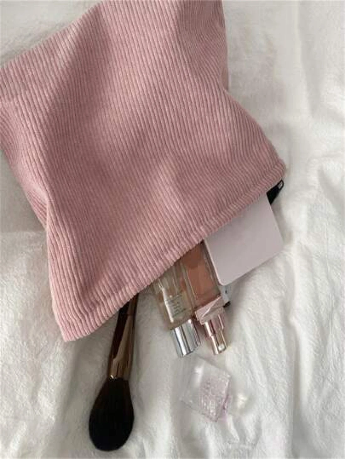 1 Piece Simple Corduroy Makeup Bag Handbag Organizer Pouch Casual Portable Cosmetic Case Summer Travel Vacation Home Bathroom Decor Holiday Makeup Organizer