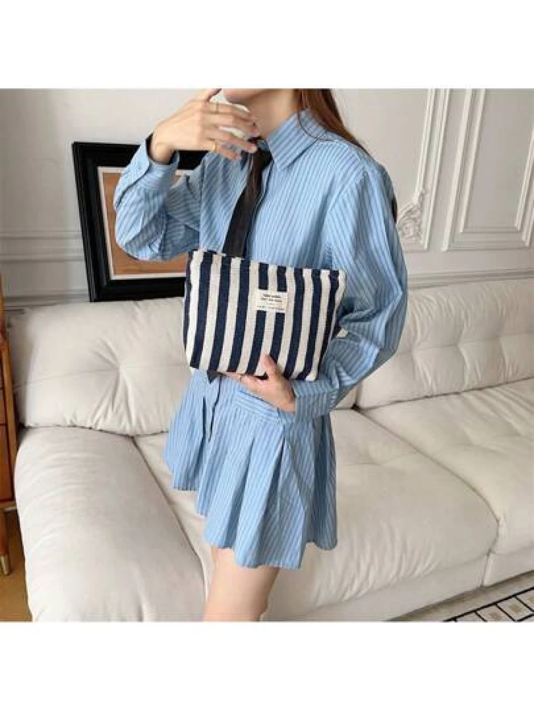 Makeup Bag Dark Blue 1Pc Vertical Stripe Cosmetic Bag Waterproof Women S Cosmetic Bag Small Bag Storage Makeup Case Travelling Bags For Ladies Pencil Case Daily Big Large Capacity Makeup Brushes Travel Toiletry Bag Organizer Make Up Bag Makeup Bag Storage Makeup Organizer Makeup Case Makeup Travel Toiletry Organizer Essentials Gifts Storage Zipper Accessories Nail
