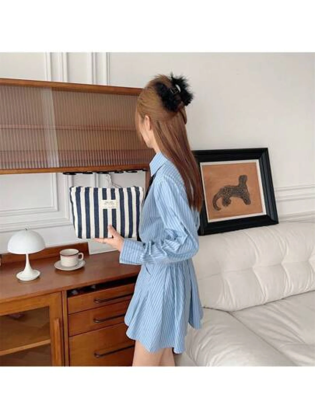 Makeup Bag Dark Blue 1Pc Vertical Stripe Cosmetic Bag Waterproof Women S Cosmetic Bag Small Bag Storage Makeup Case Travelling Bags For Ladies Pencil Case Daily Big Large Capacity Makeup Brushes Trave