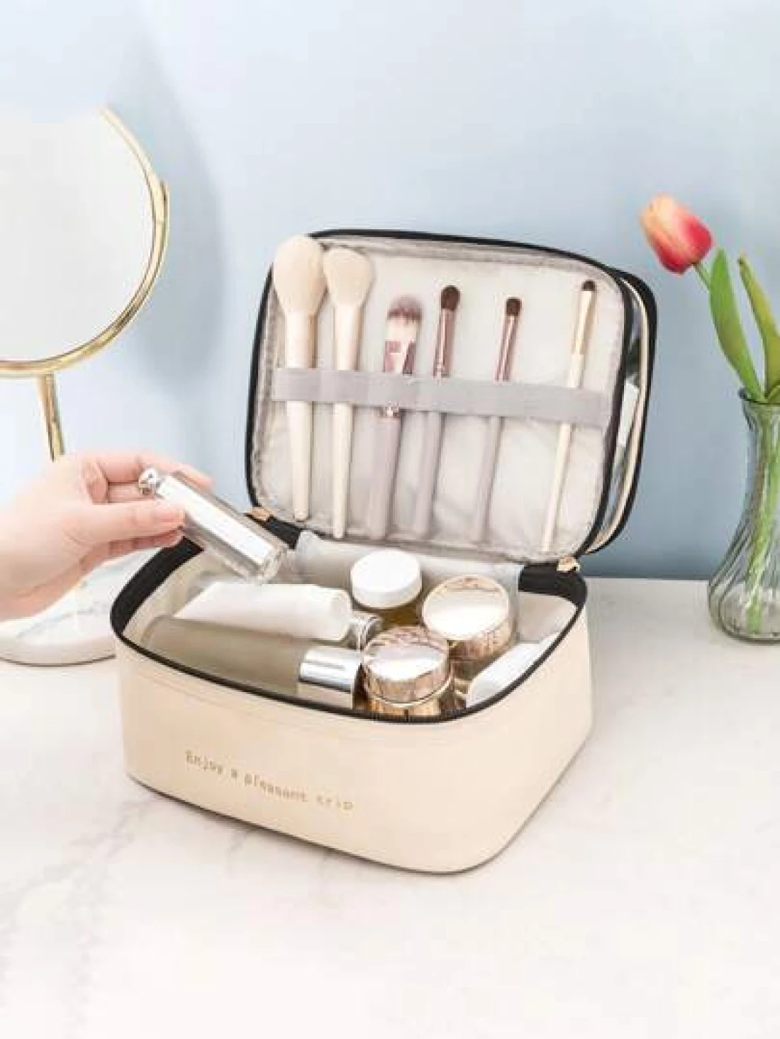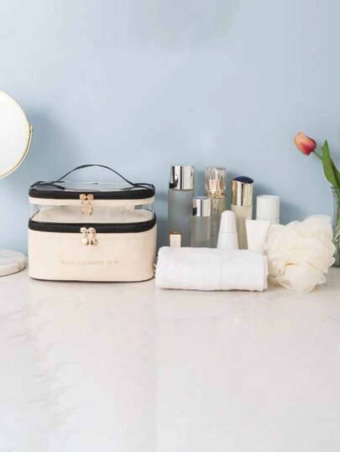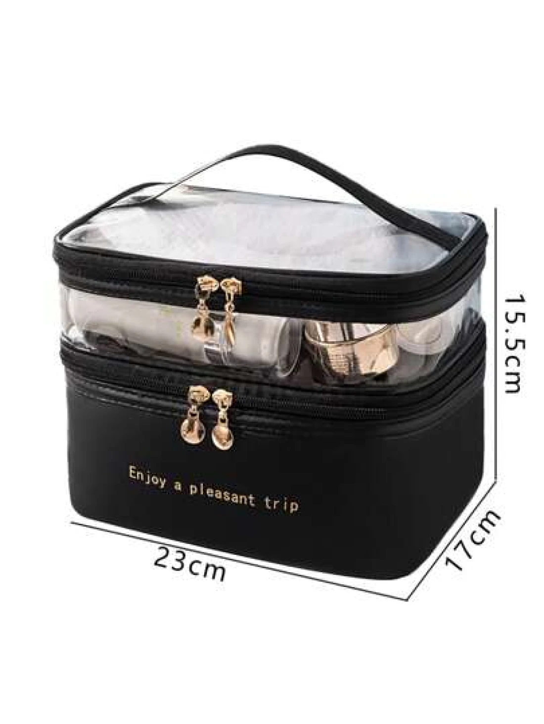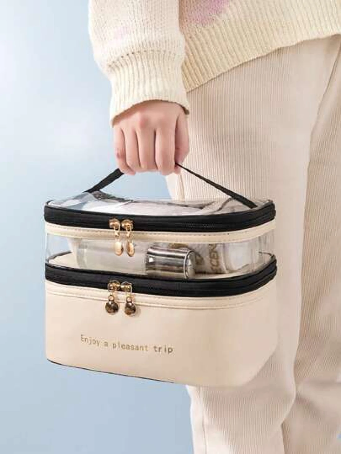 PU 2 Layers Cosmetic Bag Solid Color Travel Transparent Multifunctional Toiletry Handheld Fashionable Waterproof Large Capacity Storage Pouch Summer Travel Vacation Home Bathroom Decor Holiday Makeup