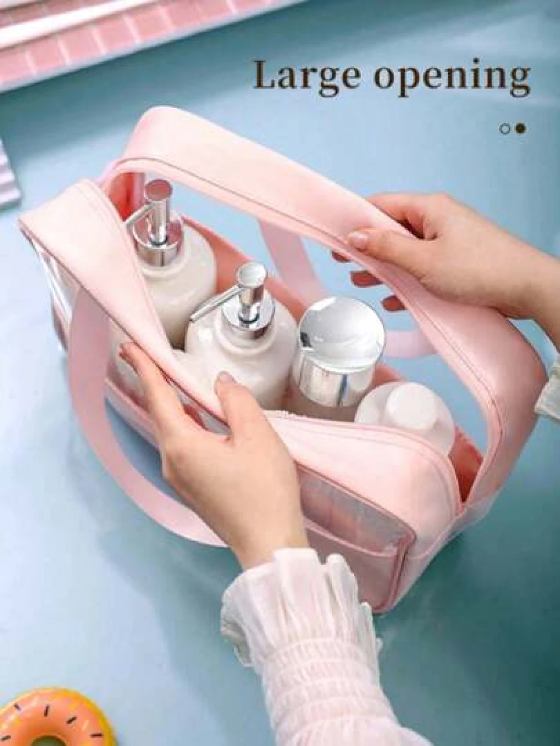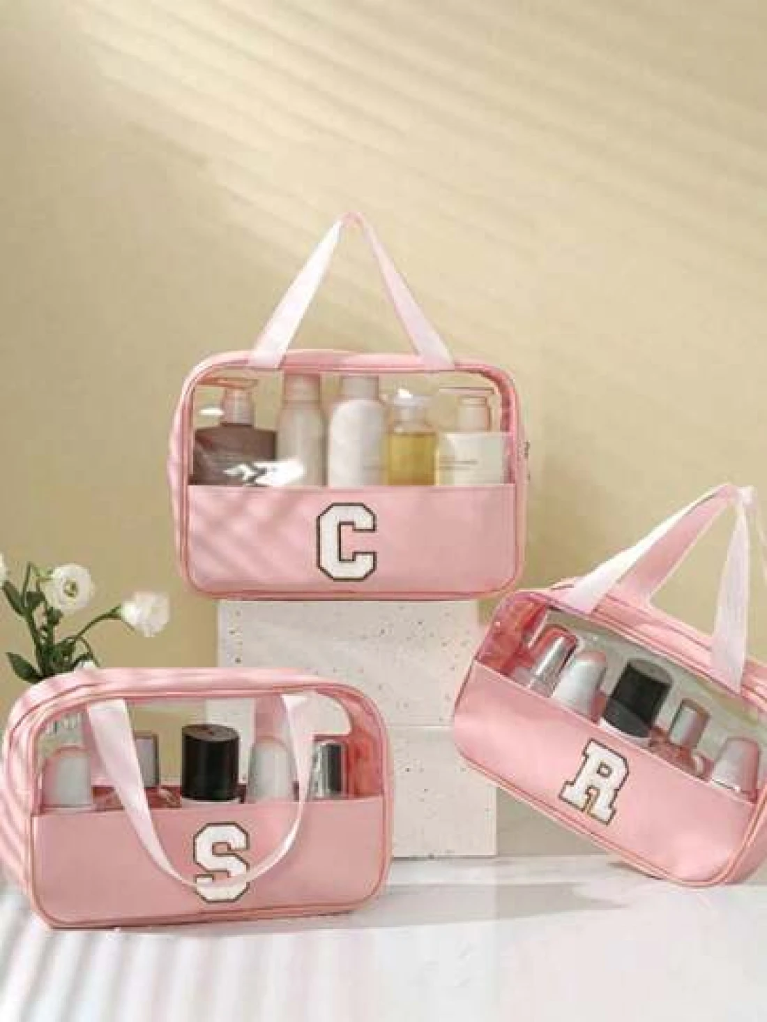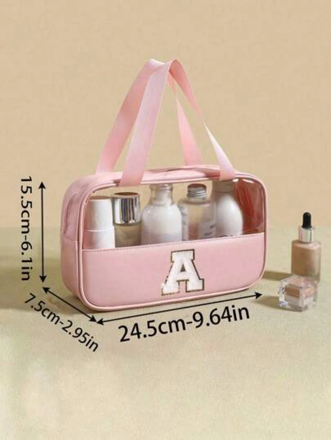 1pc PVC Waterproof Travel Makeup Bag Cosmetic Brush Holder Organizer Pouch Transparent Letter Makeup Bag Summer Holiday Travel Essentials Perfume Storage Box Versatile Luggage Bag Suitable For Lipstick Lip Liner Makeup Brushes Eye Shadow Palette Underwear Toothpaste Cosmetics Skincare Makeup Accessories Makeup Organizer