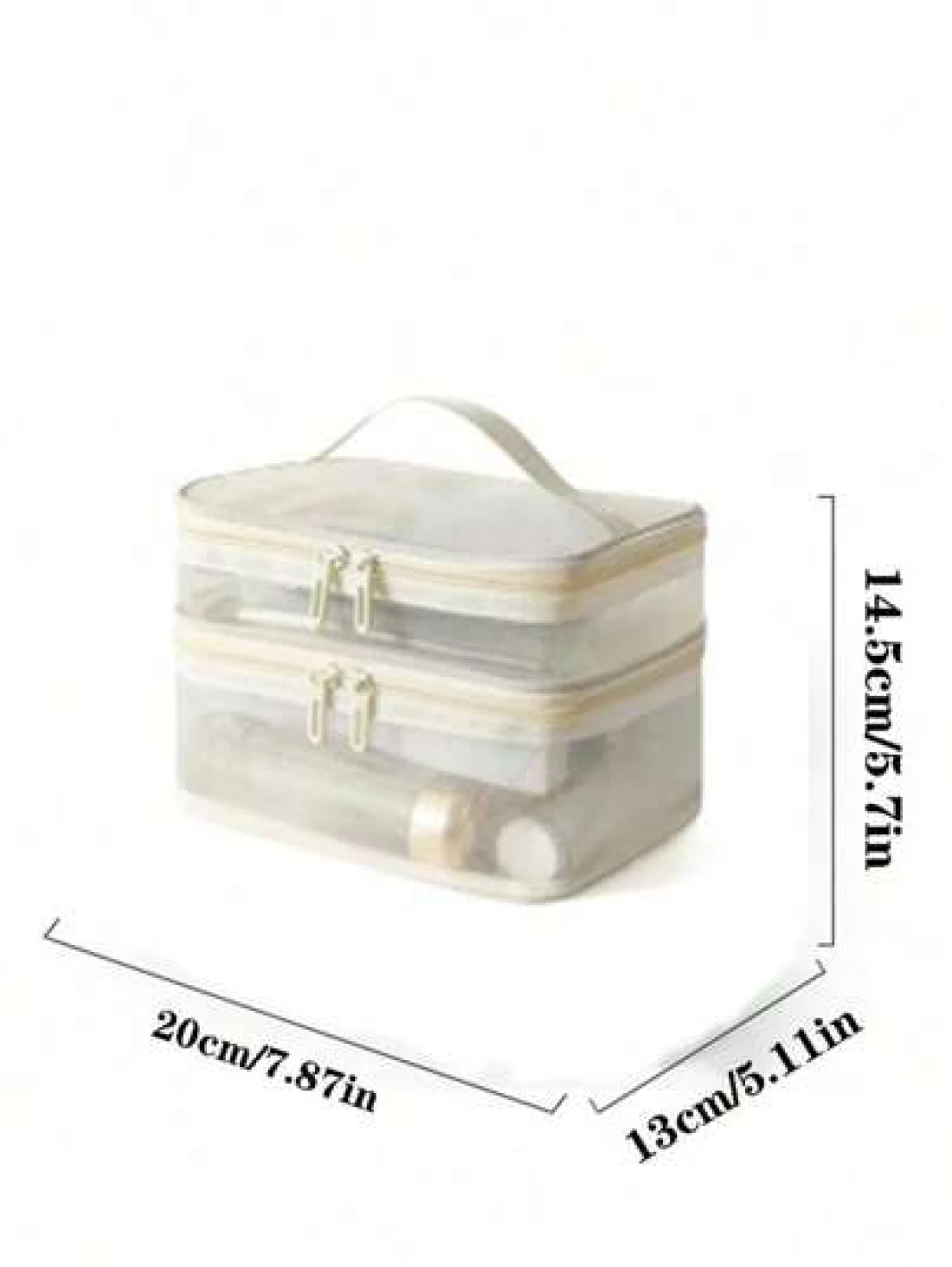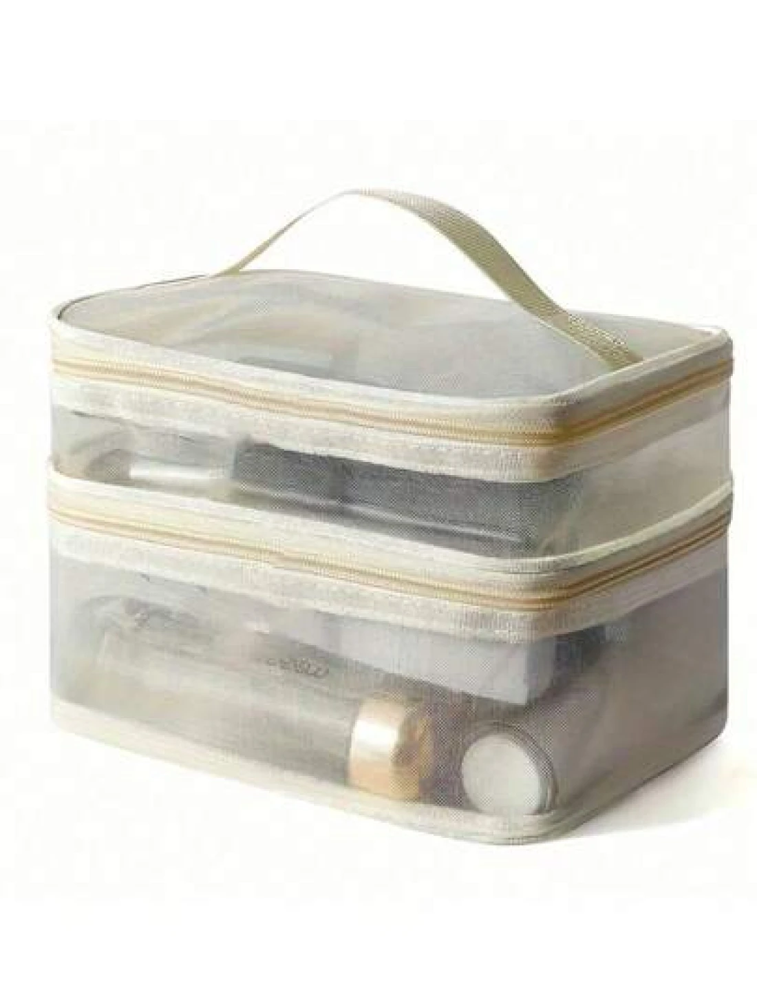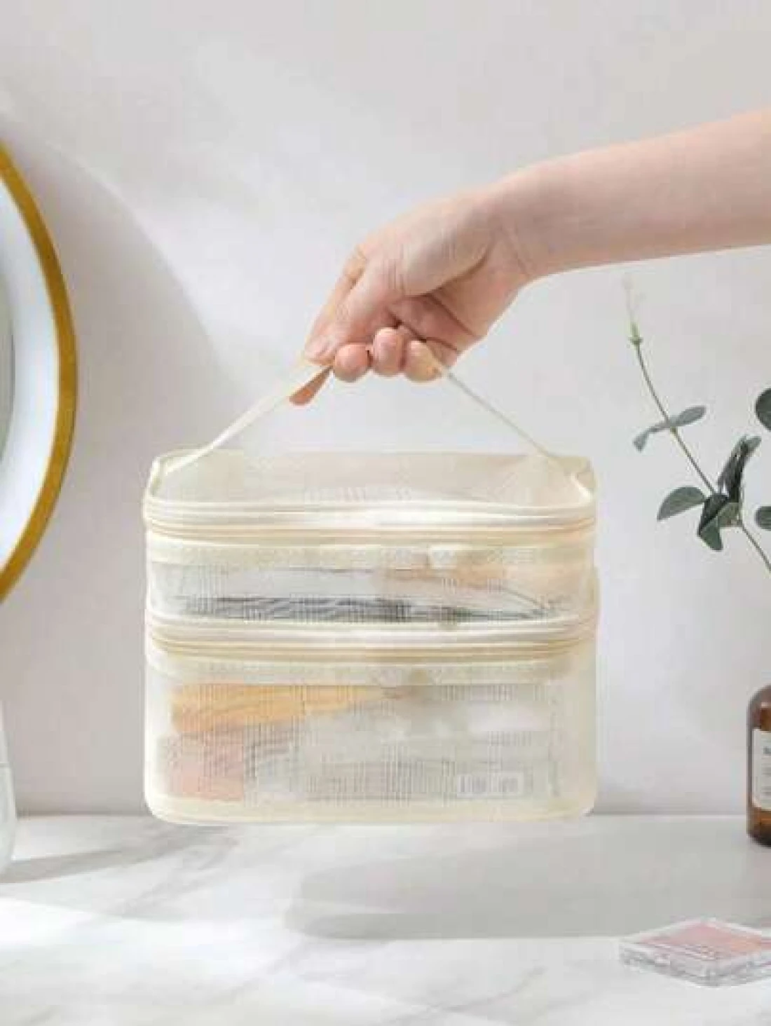 1pc Double Layer Mesh Cosmetic Bag Summer Travel Toiletry Bag Multi Functional Makeup Organizer Bathroom Cosmetics Storage Bag Large Capacity Cosmetic Bag Handbag Beach Bag Jewelry Box Makeup Brush Holder Jewelry Stand Travel Essential
