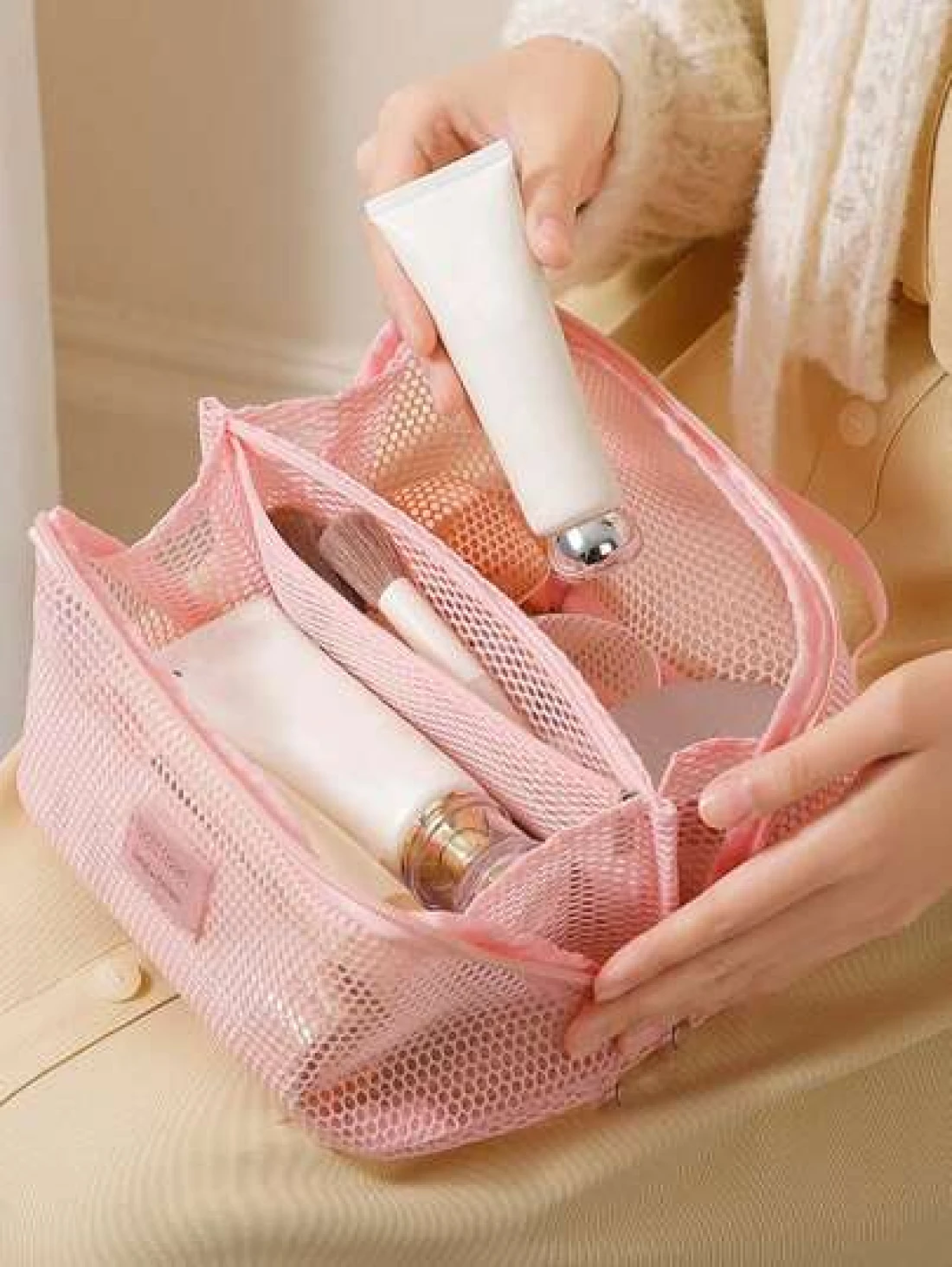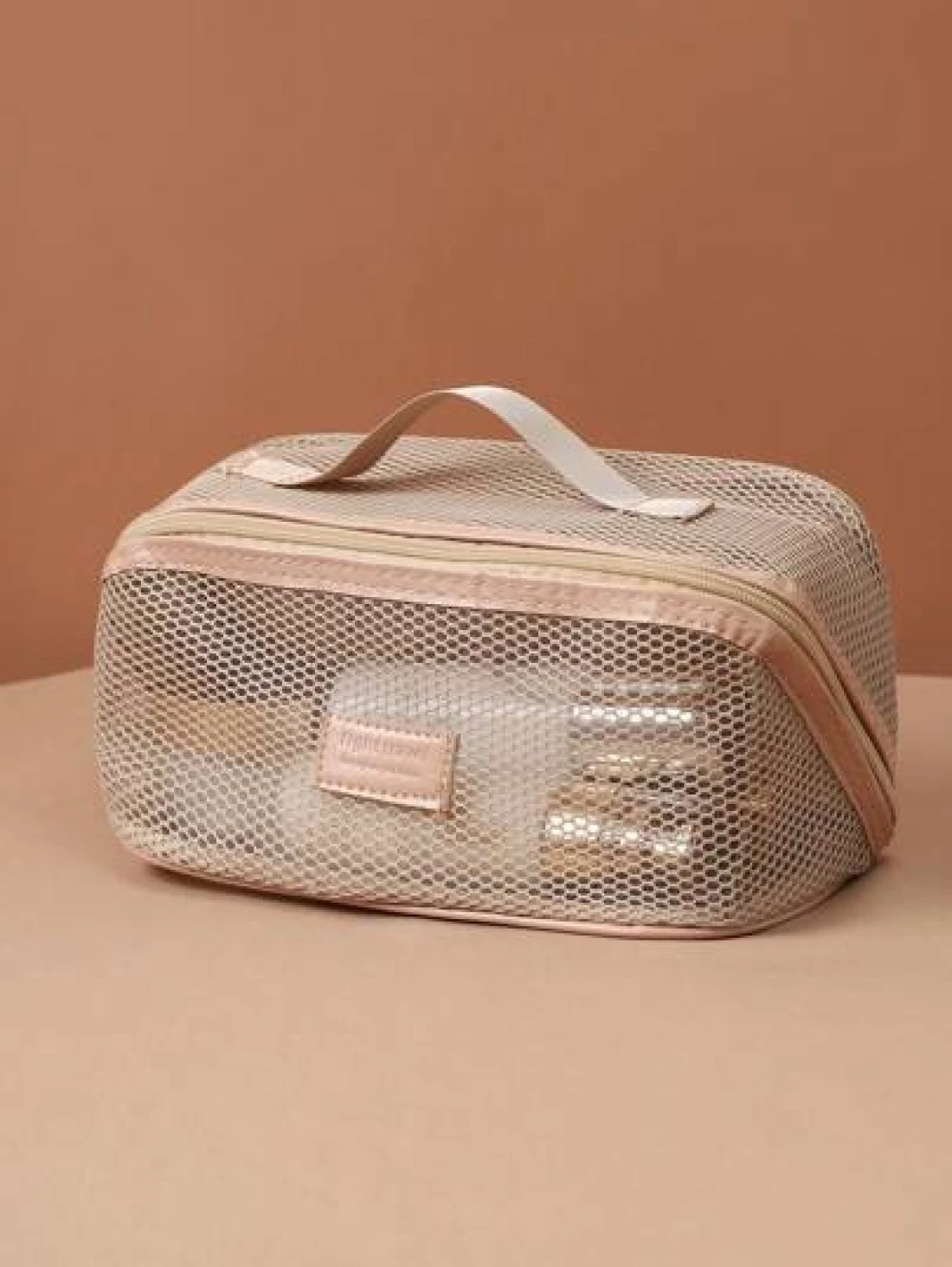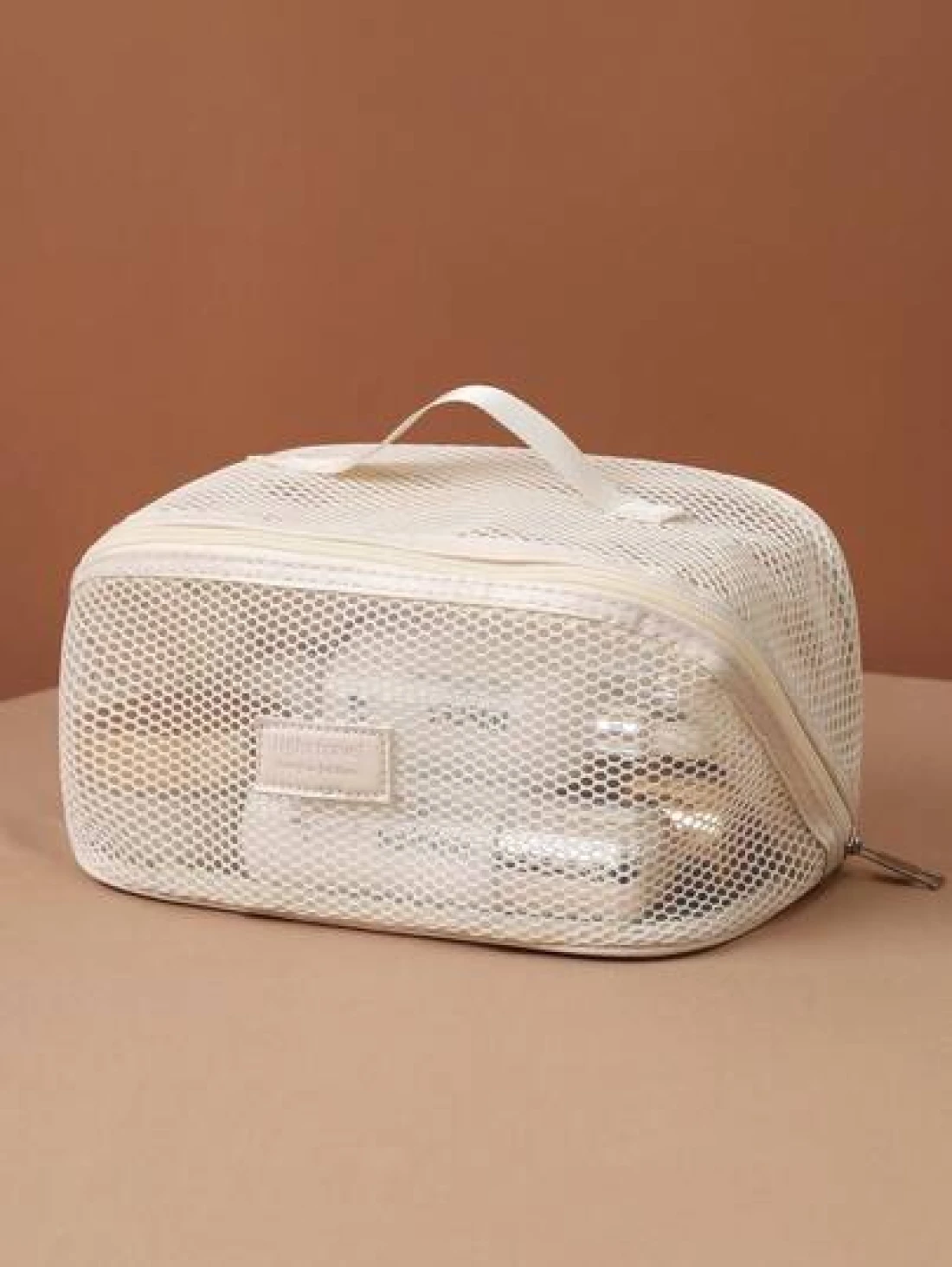 1pc Large Capacity Breathable Mesh Makeup Bag Summer Travel Toiletry Bag Multi Functional Cosmetic Storage Bag Multi Layer Makeup Brush Organizer Beach Bag Tote Bag Travel Bag Mother s Day Gift Birthday Gift Holiday Gift Travel Accessory Bathroom Accessory Travel Essentials Suitable For Lipstick Eyeshadow Makeup Brushes Perfume Powder Puff Makeup Remover Pad Toiletries Water Cup Tissue Makeup Organizer