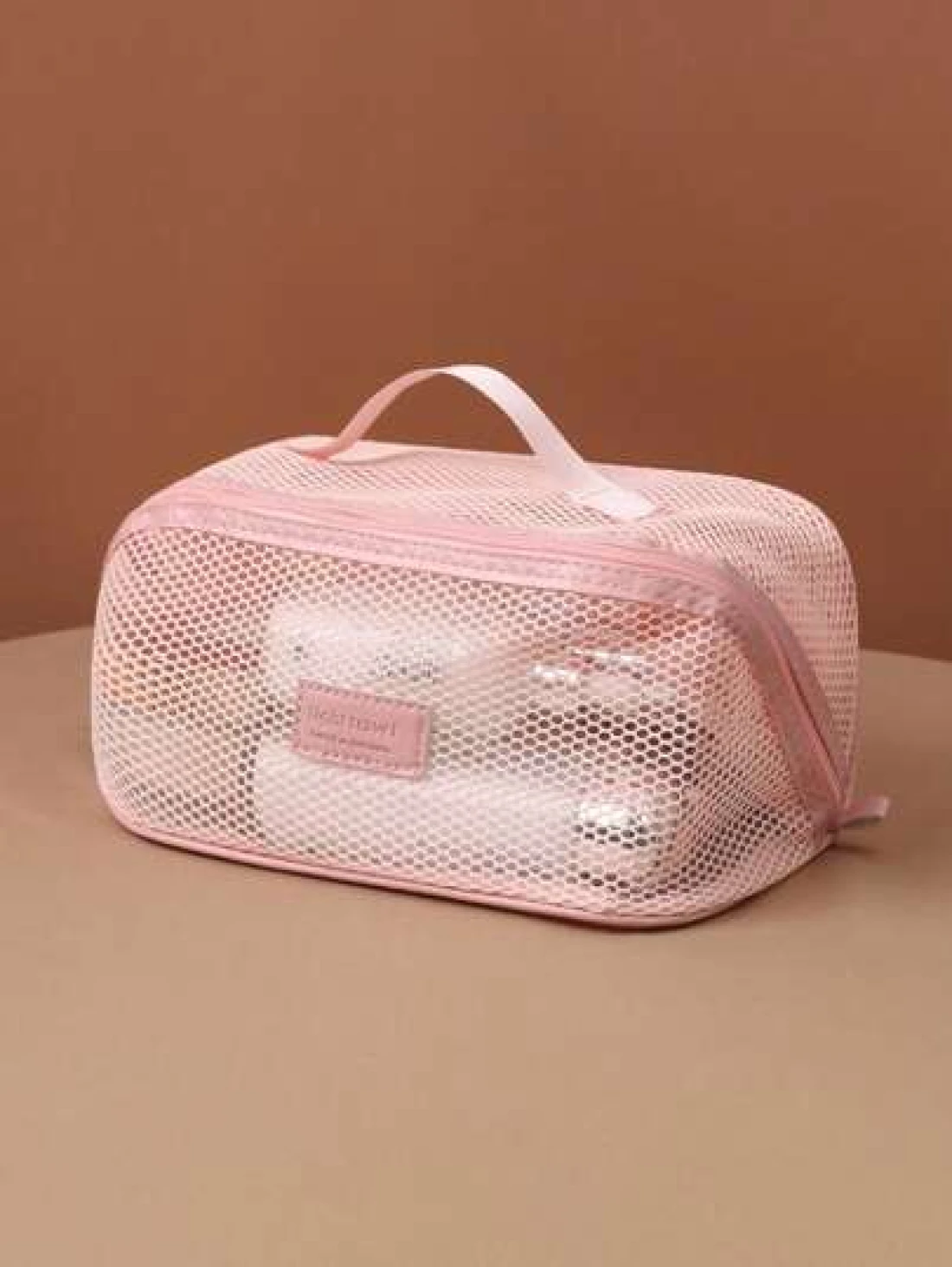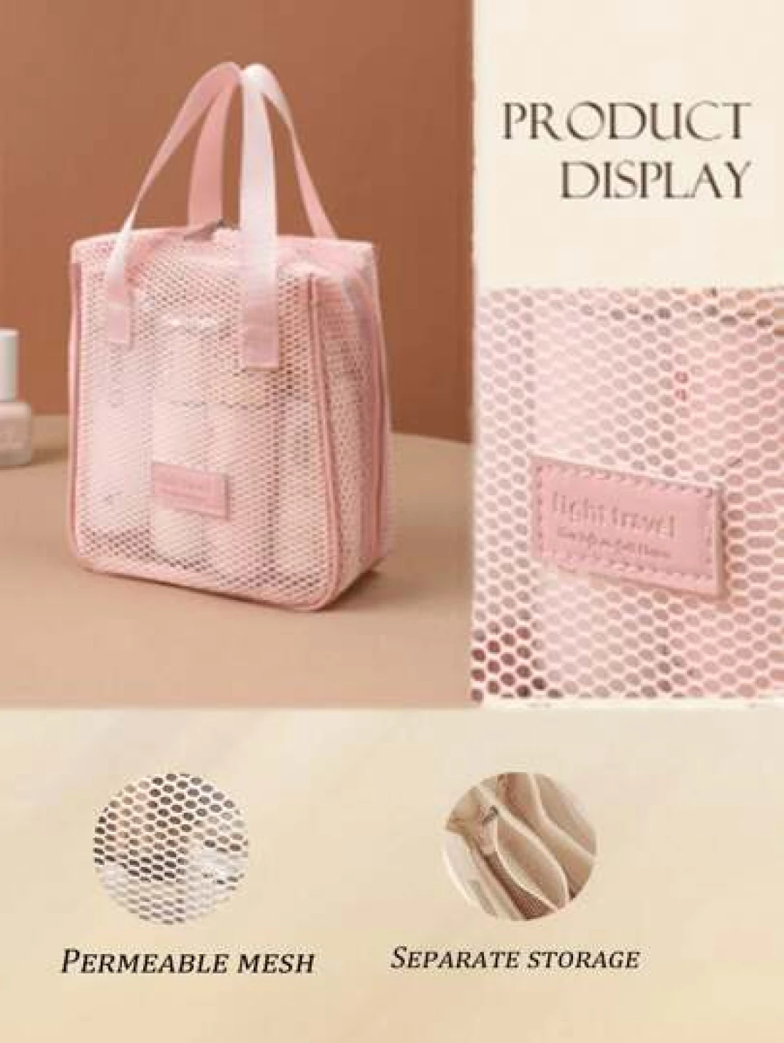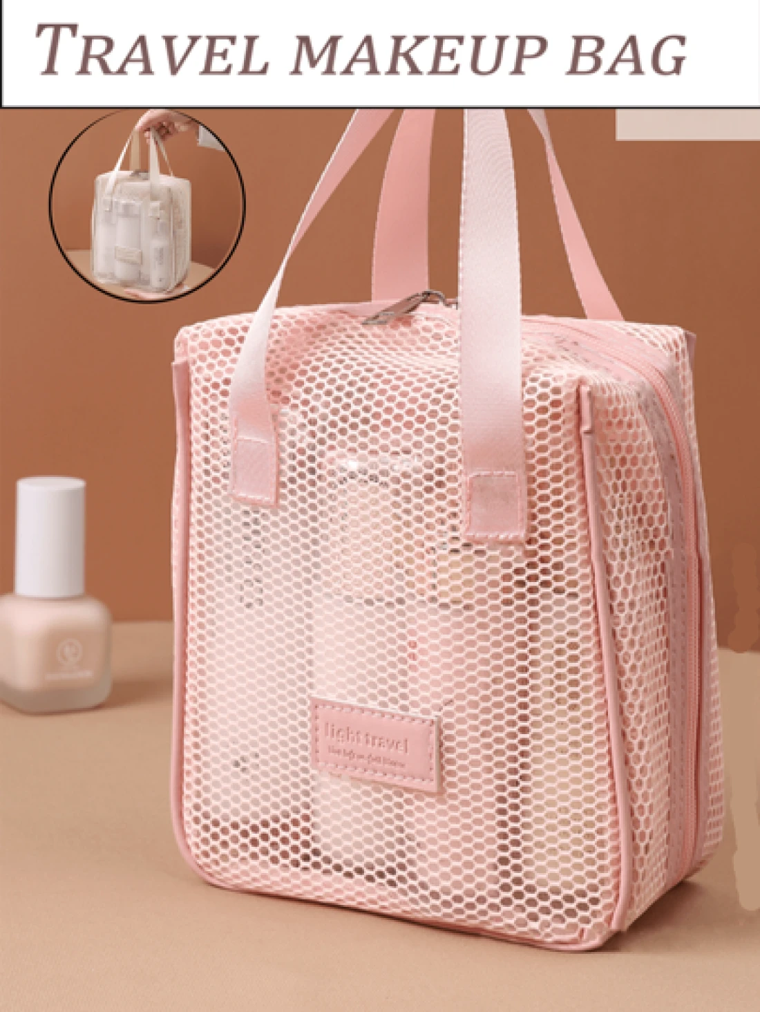 1pc Large Capacity Pink Mesh Makeup Bag Portable Travel Toiletry Organizer Multi Functional Storage Pouch Zipper Bag Travel Bag For Cosmetics Skincare Phone Jewelry Small Items Gift Holiday Use Available In Multiple Colors Makeup Organizer