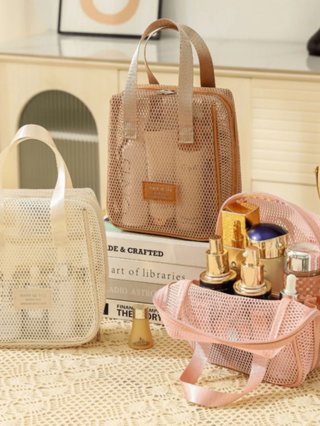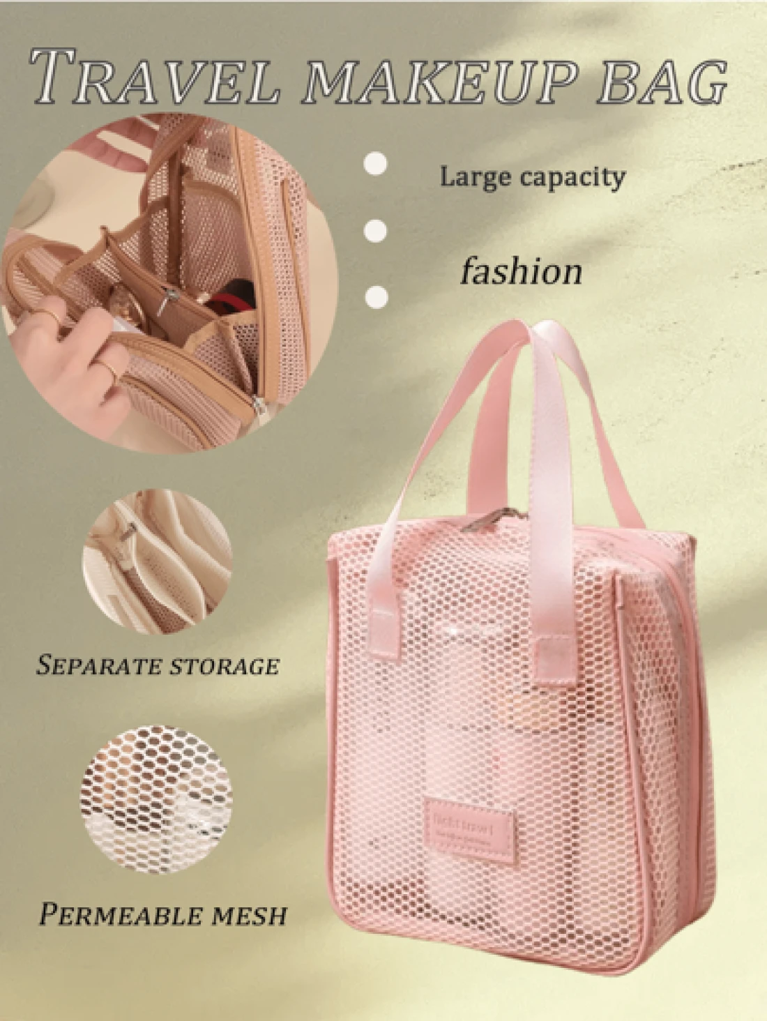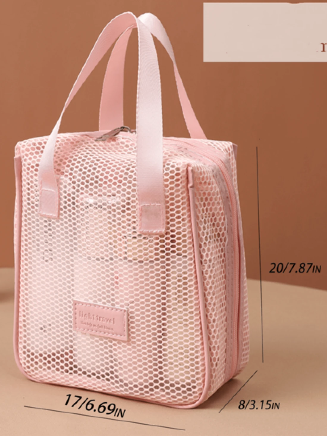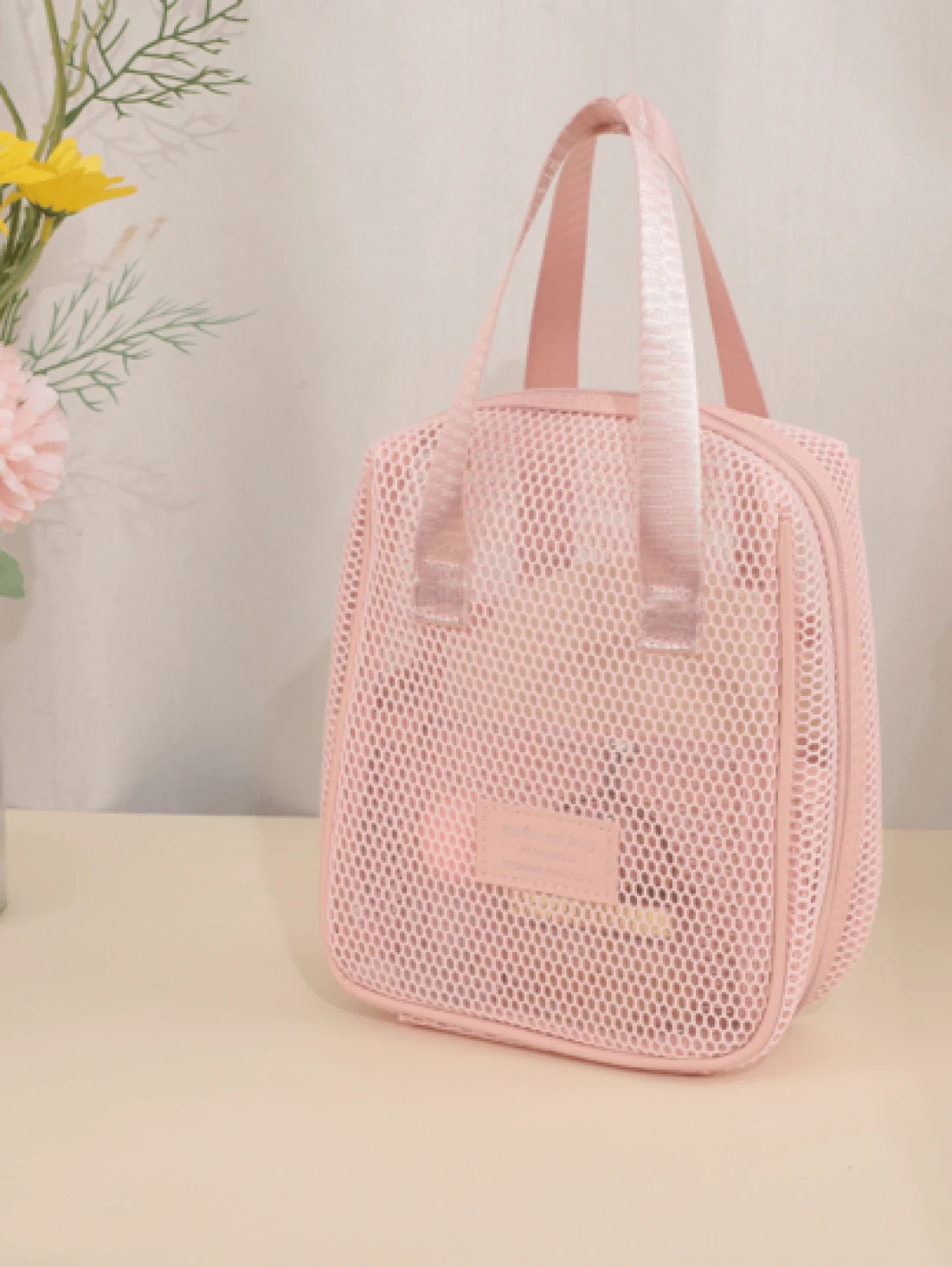 1pc Large Capacity Pink Mesh Makeup Bag Portable Travel Toiletry Organizer Multi Functional Storage Pouch Zipper Bag Travel Bag For Cosmetics Skincare Phone Jewelry Small Items Gift Holiday Use Available In Multiple Colors Makeup Organizer