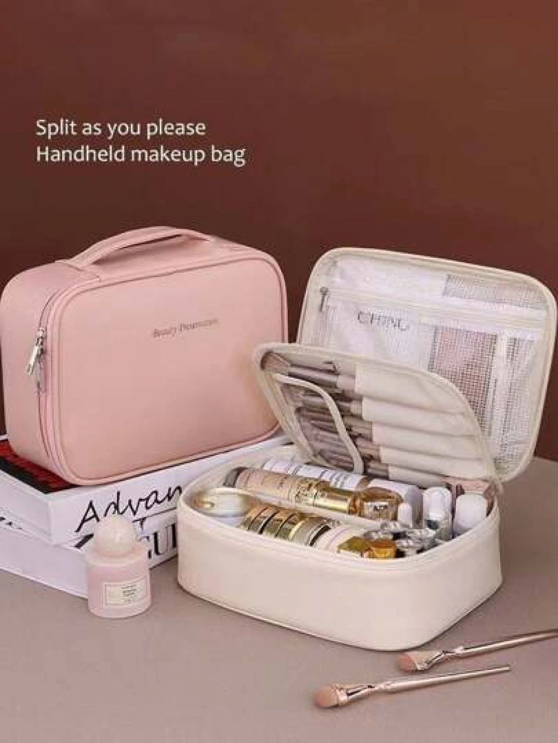 1pc Multifunctional PVC Makeup Bag Summer Travel Cosmetic Organizer Bag Waterproof Bathroom Storage Pouch For Skincare Makeup Brushes Eyeshadow Palette Compact Powder Lotion Lipstick Jewelry Bridesmai