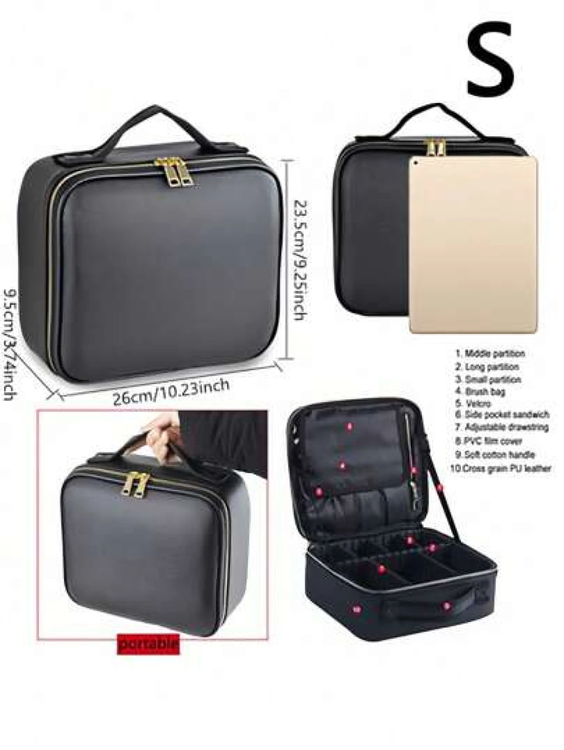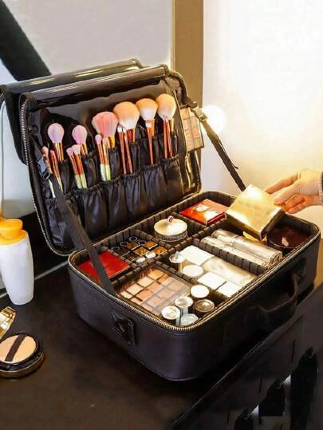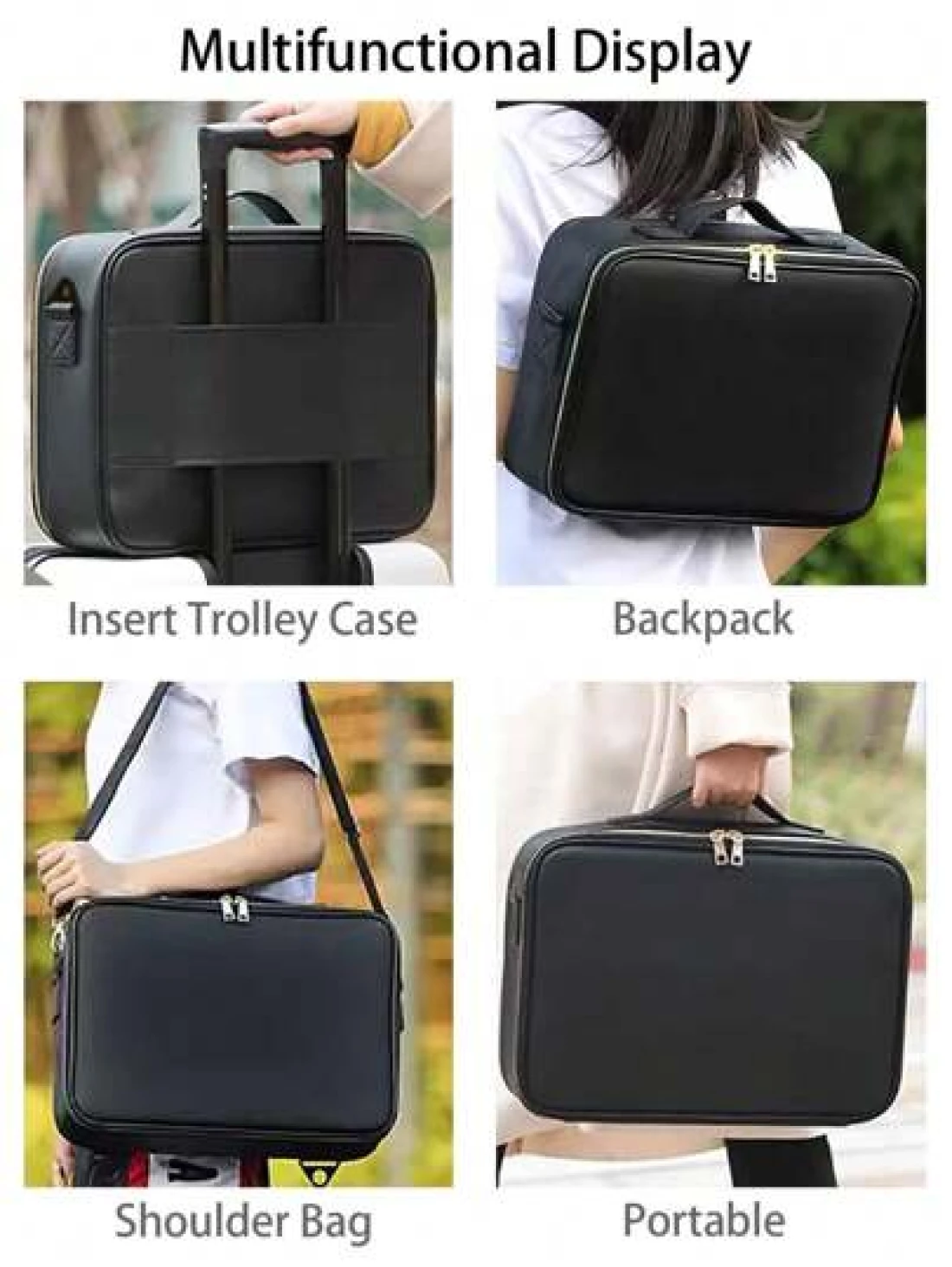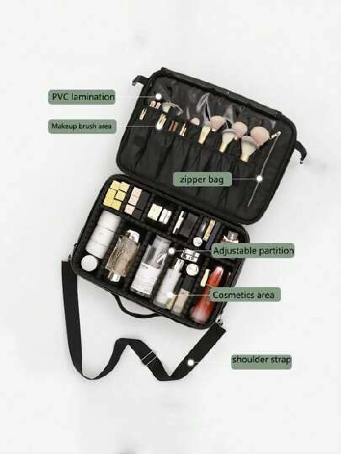 Multi Function PU Leather Cosmetic Bag Large Capacity Professional Divided Makeup Case With Dual Shoulder Shoulder Strap Suitable For Beauticians Nail Technicians Tattoo Artists Makeup Artists Travel Essentials Travel Accessories Travel Must Haves