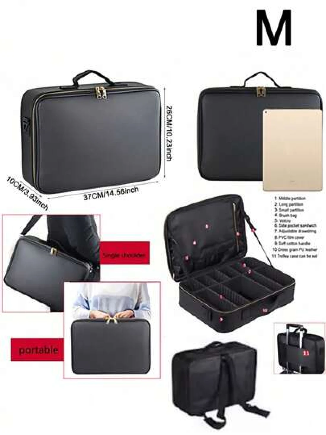 Multi Function PU Leather Cosmetic Bag Large Capacity Professional Divided Makeup Case With Dual Shoulder Shoulder Strap Suitable For Beauticians Nail Technicians Tattoo Artists Makeup Artists Travel