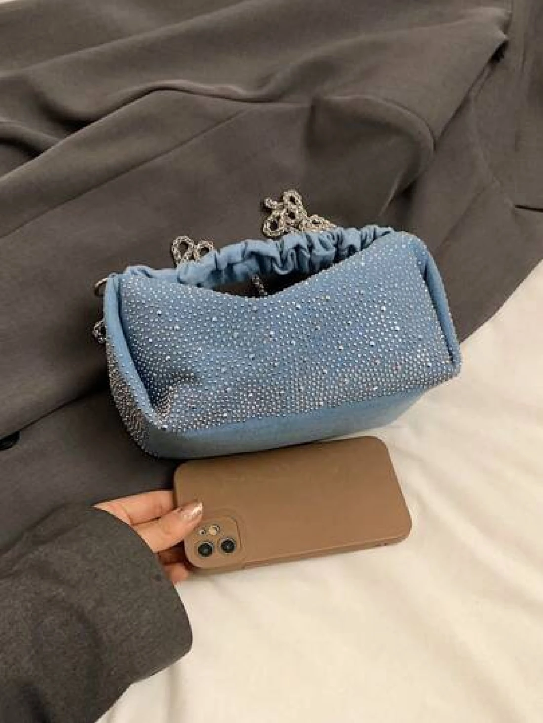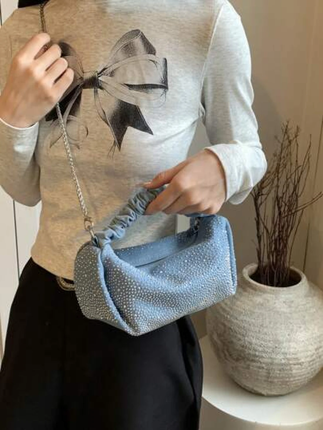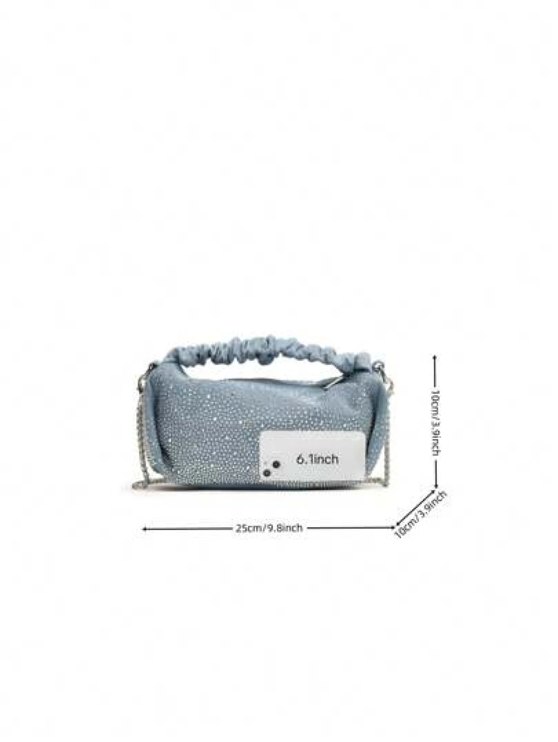 Glamorous Fashionable Solid Color Metal Chain With Rhinestone Decor Ruched Bag Perfect For Party Wedding Prom Dinner Banquet Matching With Wedding Dress Formal Dresses Prom Dress Birthday Dress Suitable For Festivals Vacation Holiday Outings Travel Stadium For Women Girl College Students
