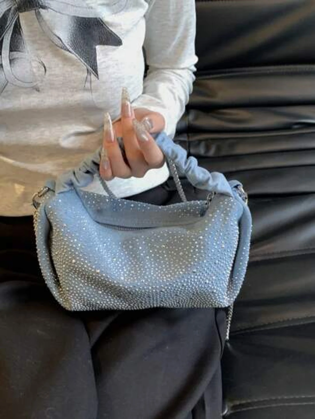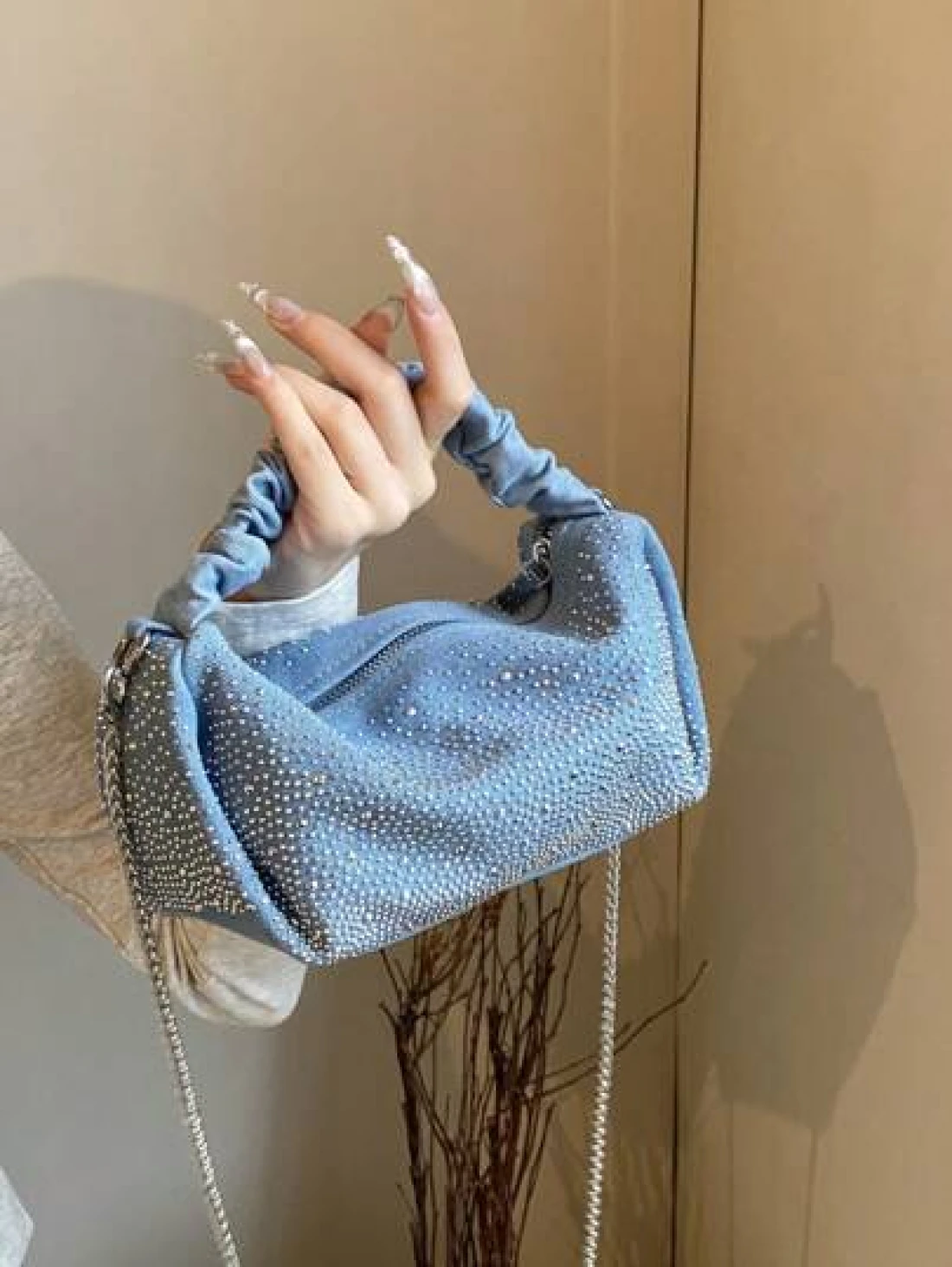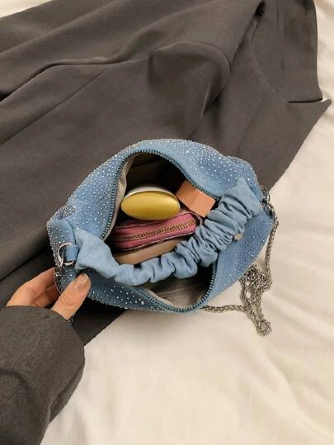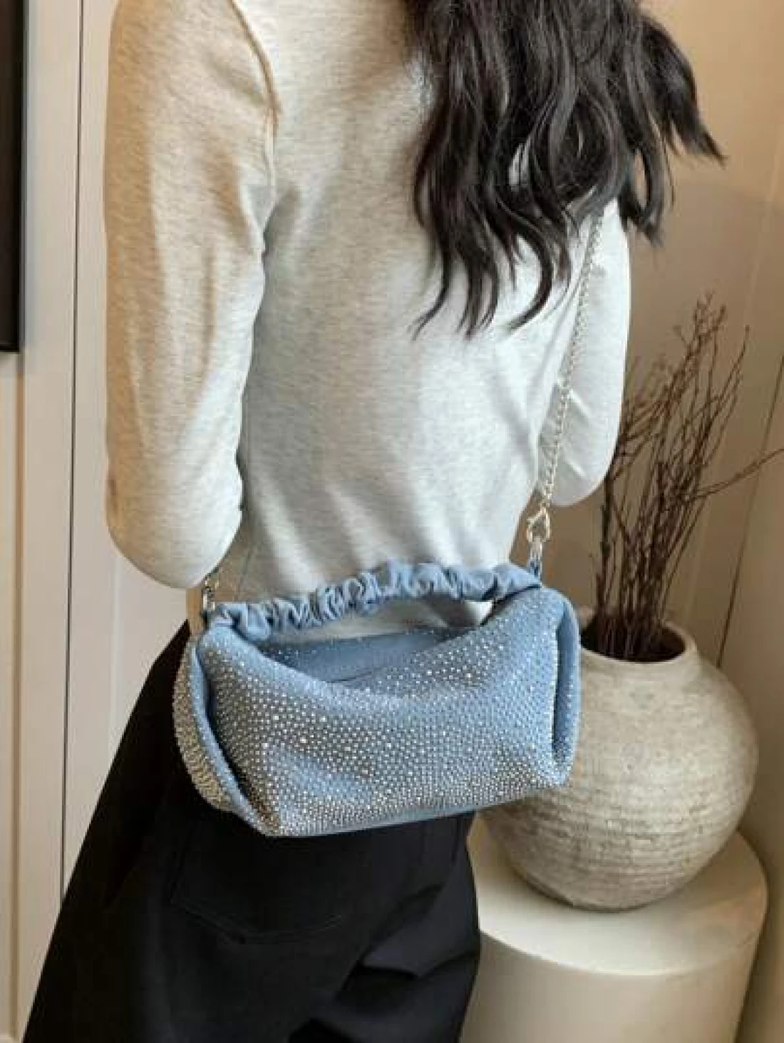 Glamorous Fashionable Solid Color Metal Chain With Rhinestone Decor Ruched Bag Perfect For Party Wedding Prom Dinner Banquet Matching With Wedding Dress Formal Dresses Prom Dress Birthday Dress Suitable For Festivals Vacation Holiday Outings Travel Stadium For Women Girl College Students