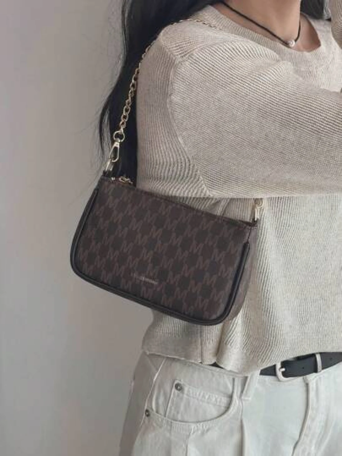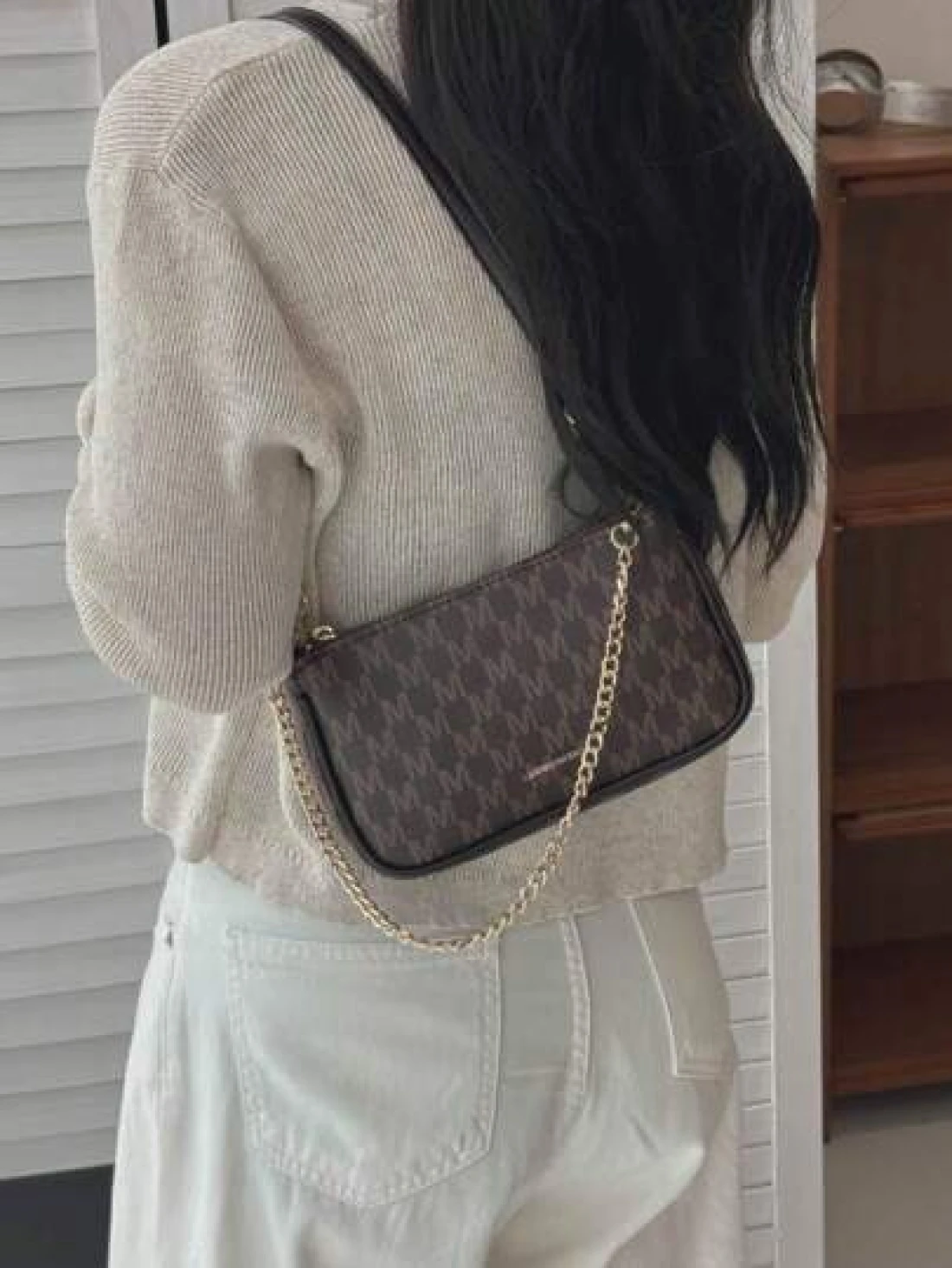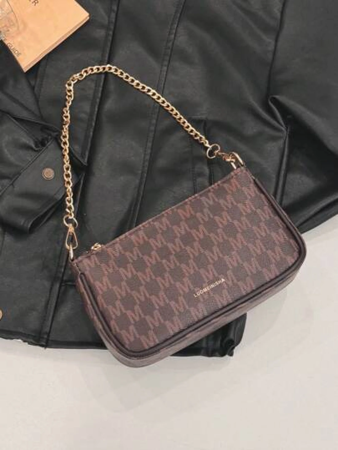 In 2024 The New Fashion Classic Joker Pu Waterproof Fabric Letter Pattern Printing Design Metal Chain Decoration Design Baguette Bag Shoulder Bag Is Suitable For Shopping