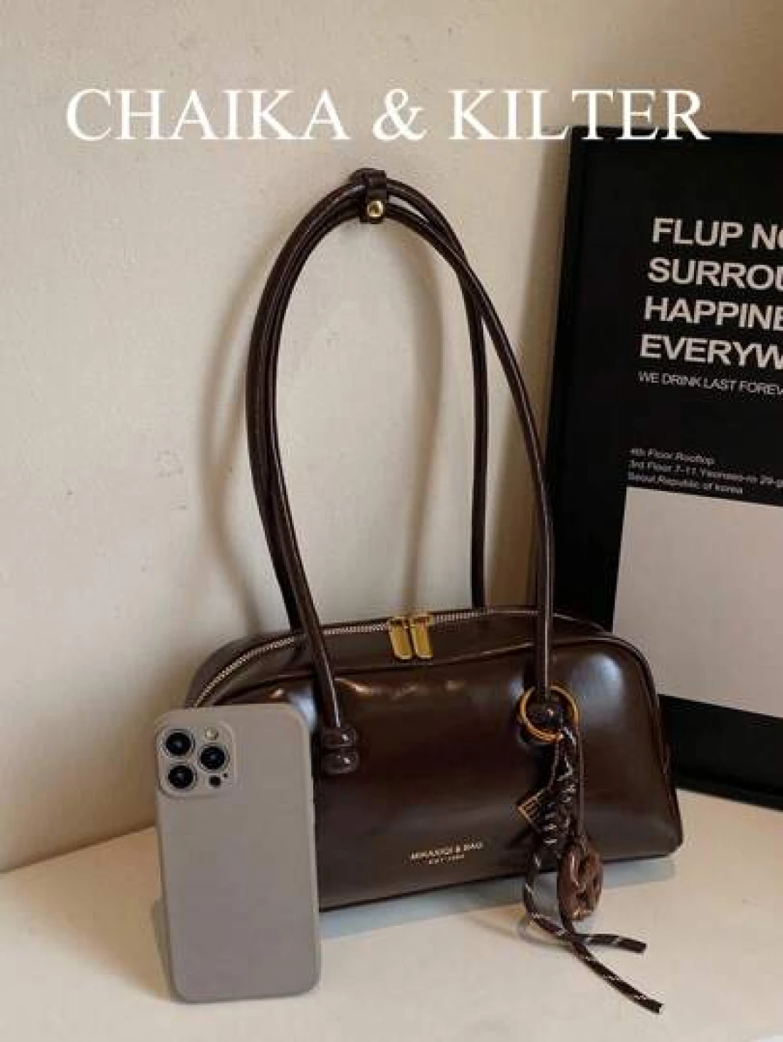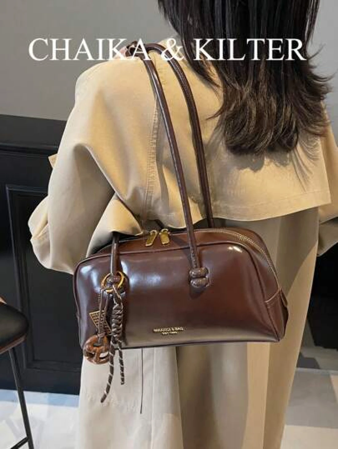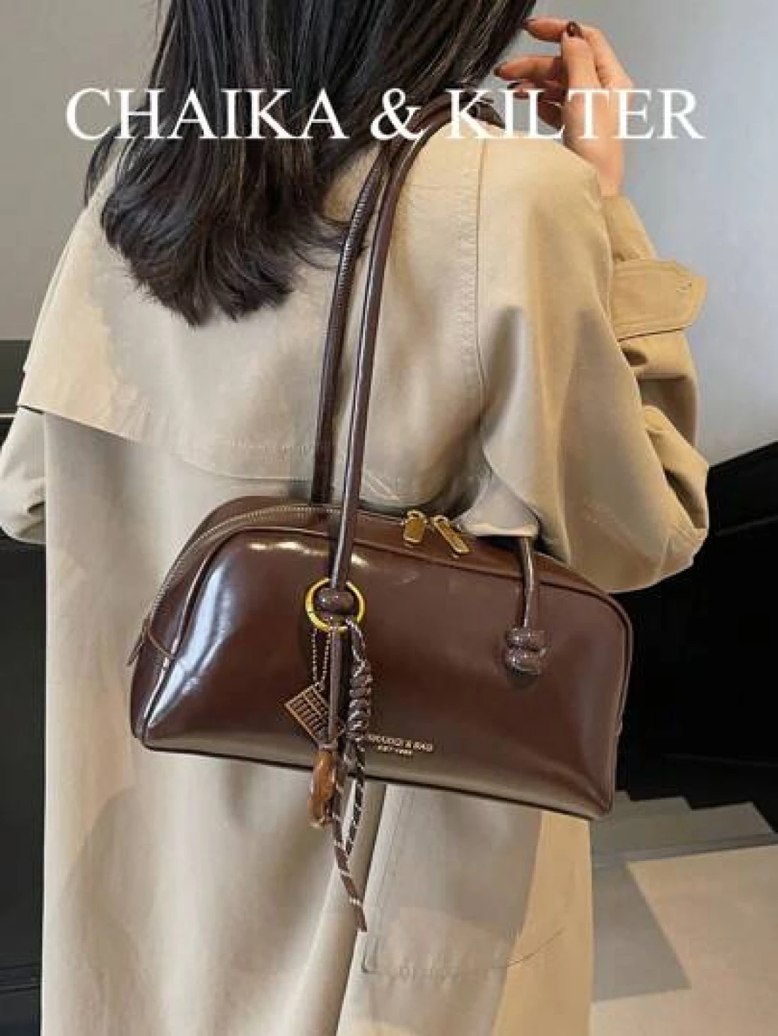 1pc CHAIKA KILTER Solid Shiny PU Leather Shoulder Bag Women s Fashion Large Capacity Bowling Bag With Dual Handles Zipper Closure Suitable For Daily Outdoor Use Sold With Pendant