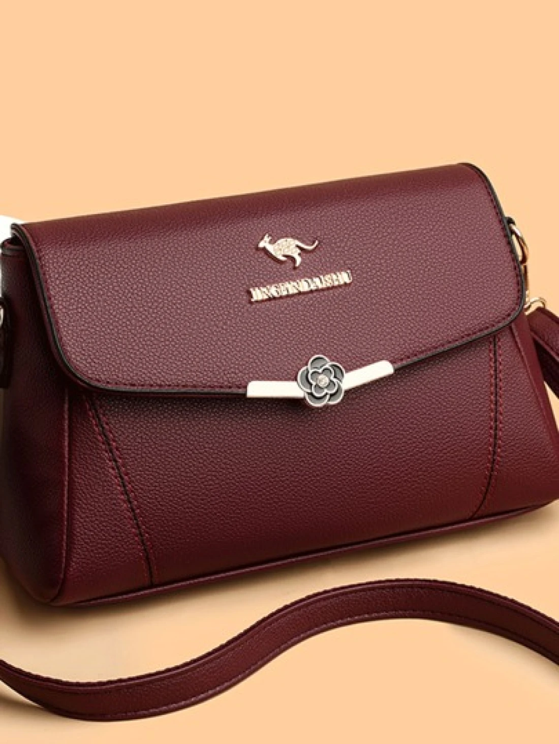 Fashion Classic Joker Retro Letter Pattern Decoration Design Shoulder Bag Retro Elegant Handbag Metal Label Decorated Wine Red Bag Suitable For Shopping Commuting To Work