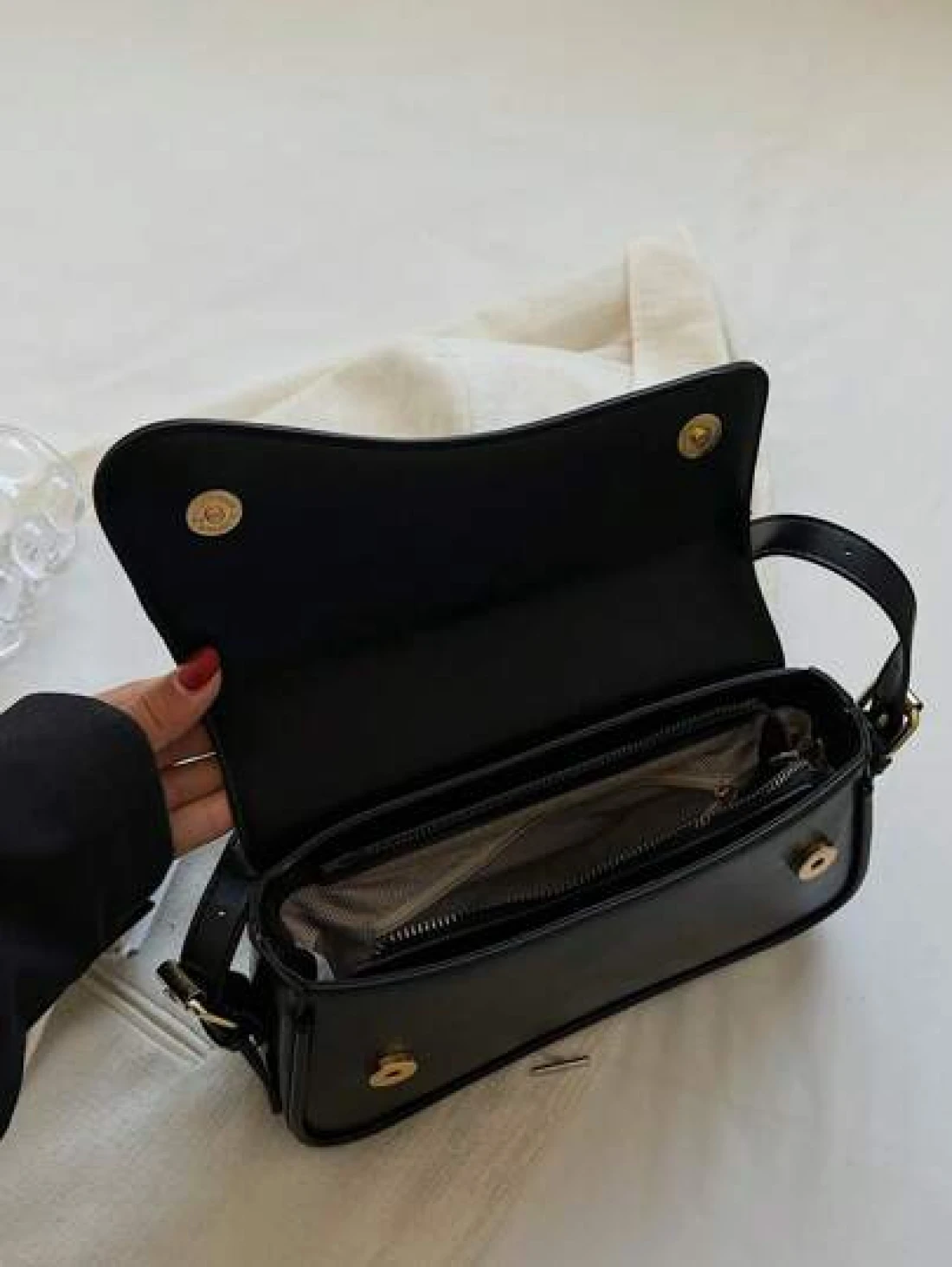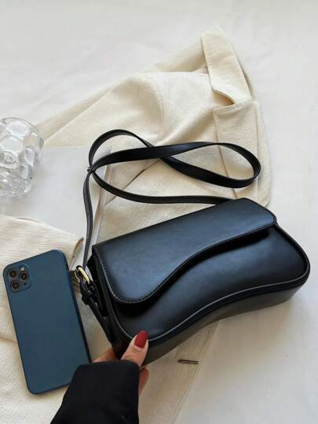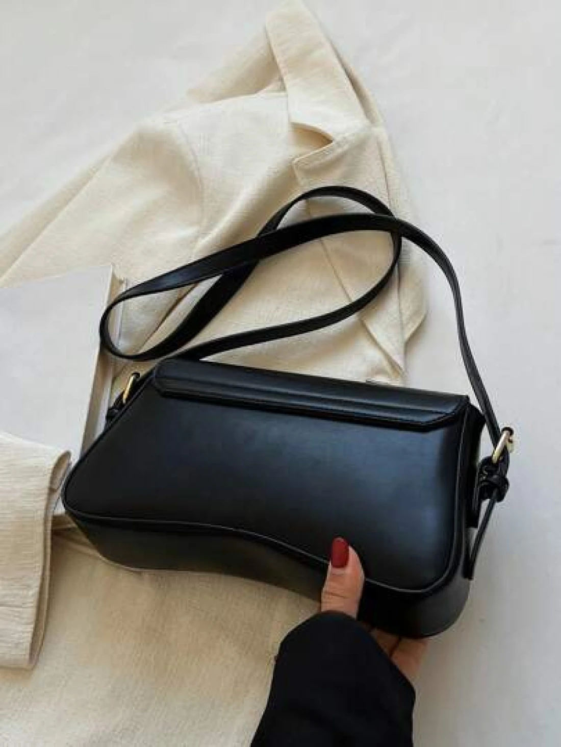 Minimalist Flap Square Bag Simple Solid Color Flap Underarm Bag PU Leather Textured Bag Purse Fashion Versatile Bag