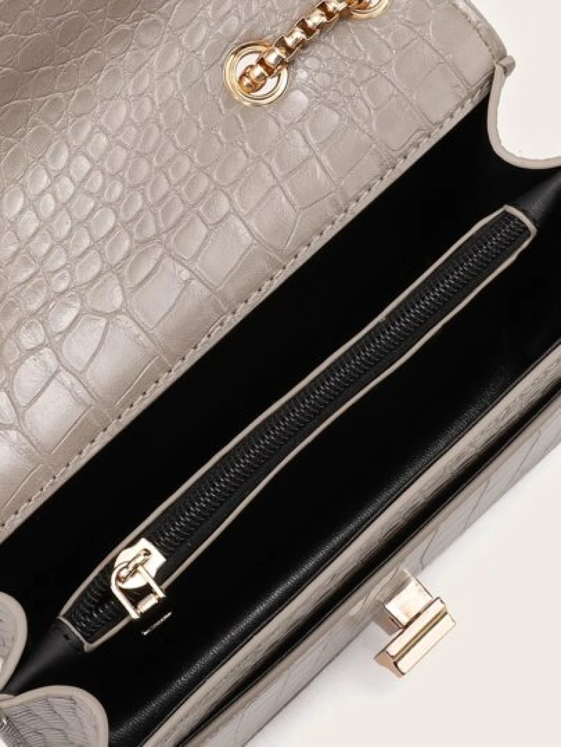 Women s Fashionable Crocodileodile Patterned Flapover Chain Shoulder And Crossbody Bag