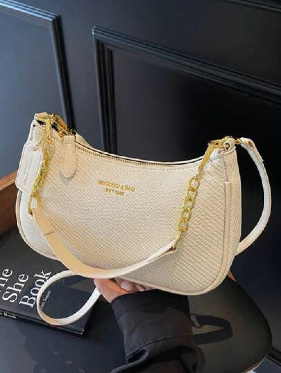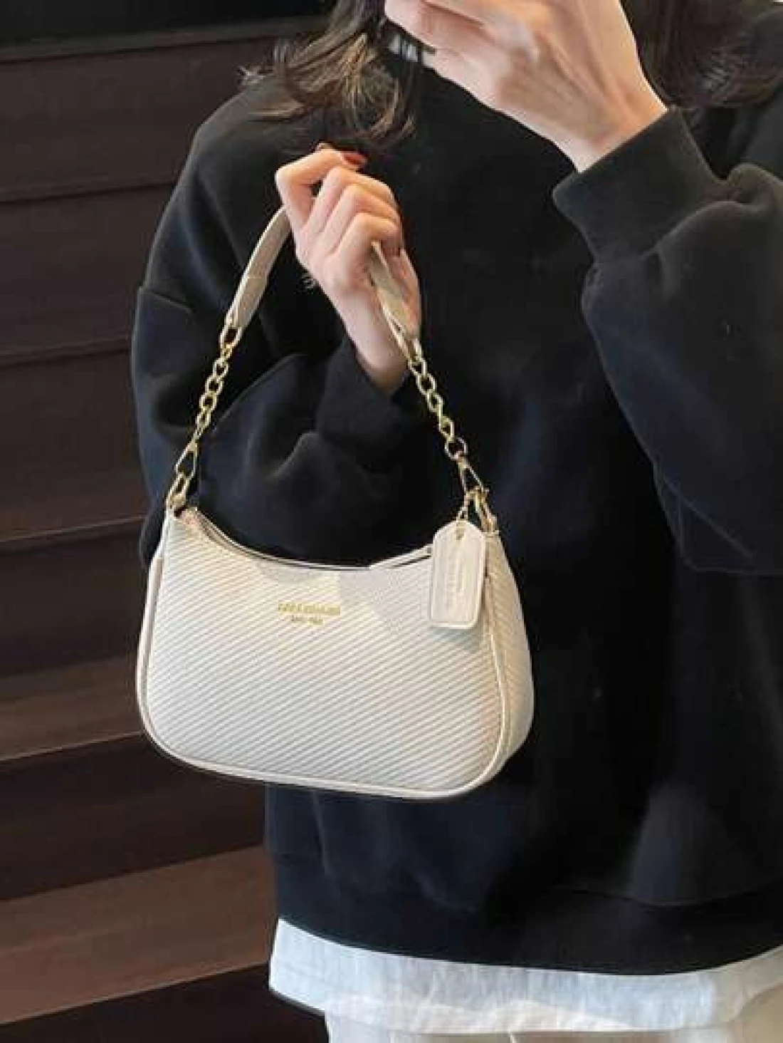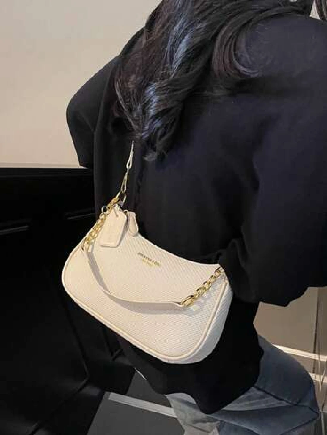 New Stylish Elegant Solid Color PU Underarm Bag With Metal Chain Handle For Women