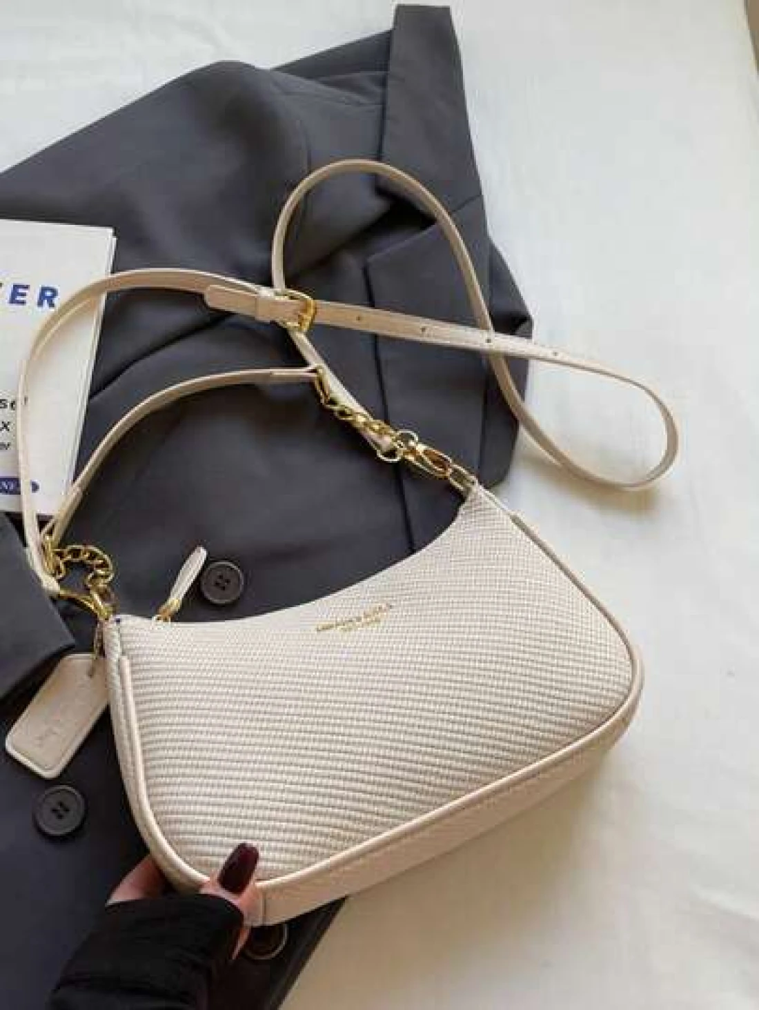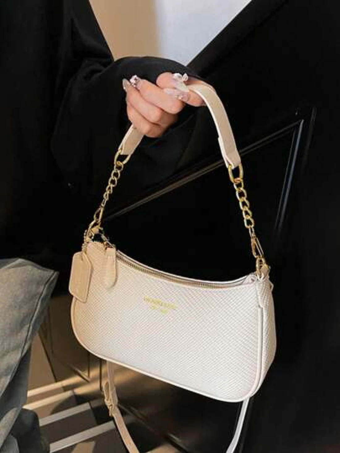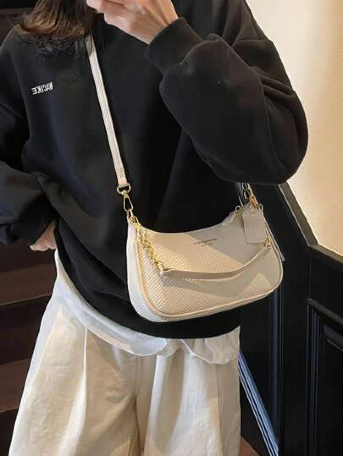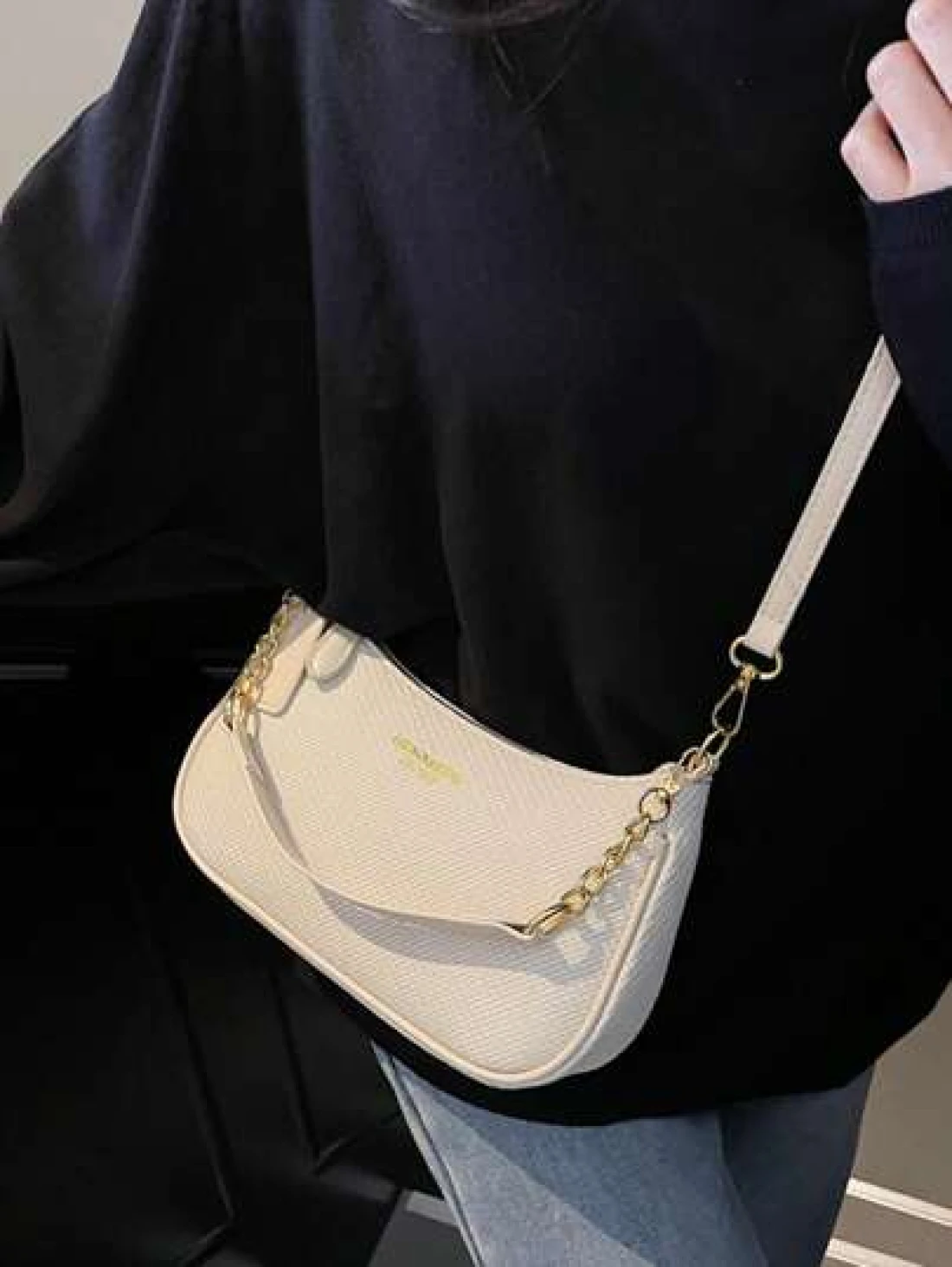 New Stylish Elegant Solid Color PU Underarm Bag With Metal Chain Handle For Women