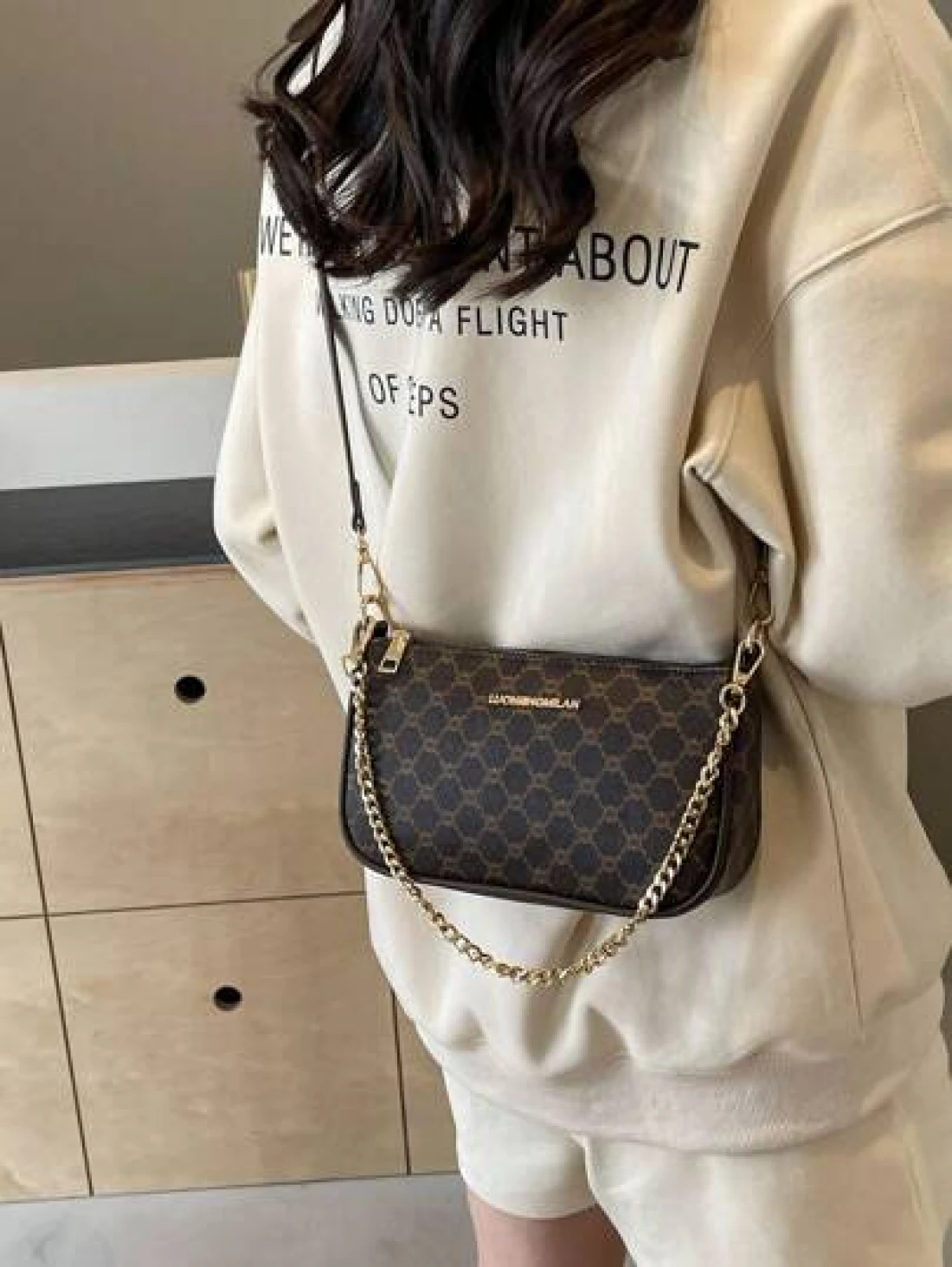 Women s Pu Leather Chain Shoulder Bag With Underarm Design