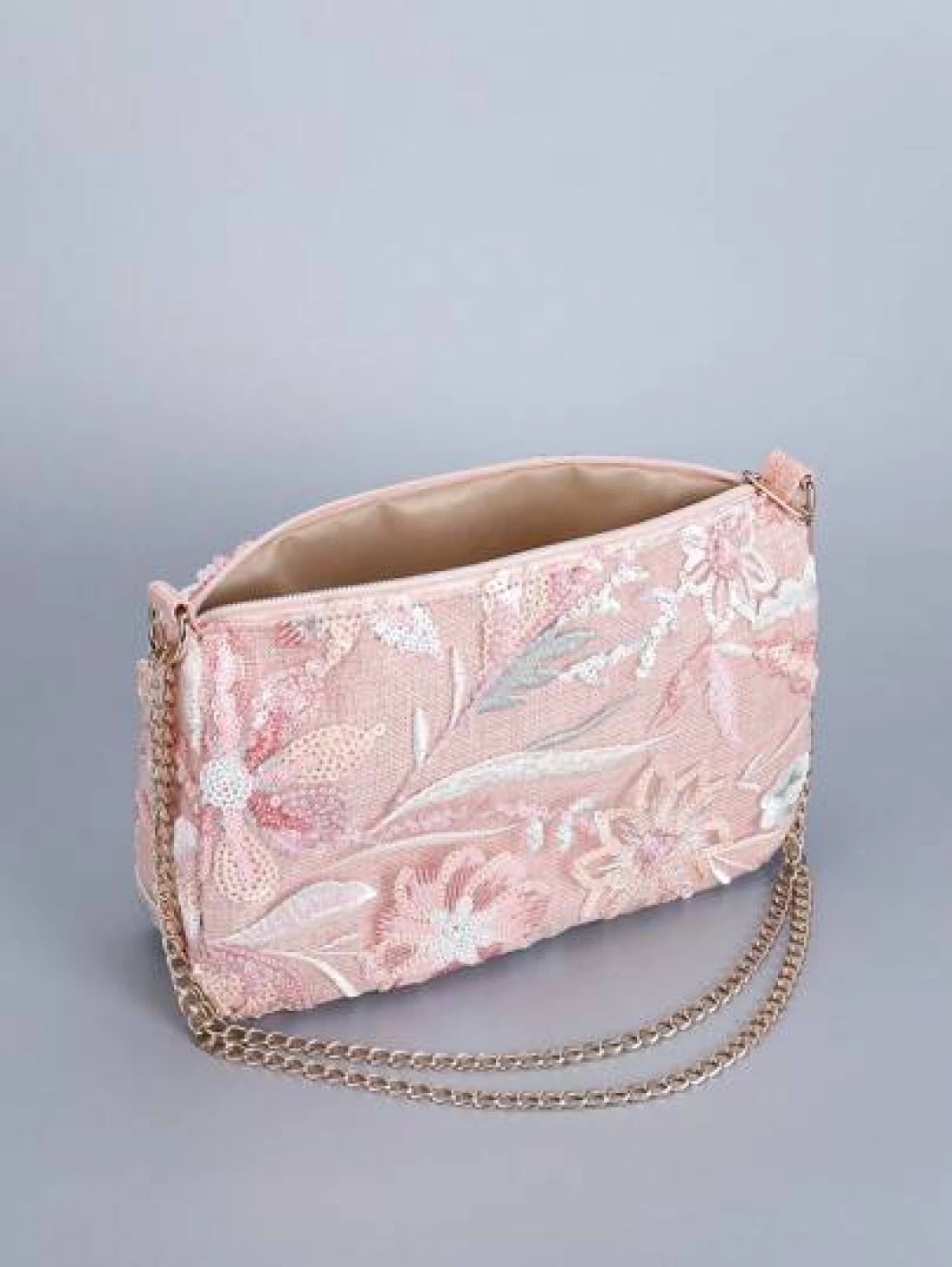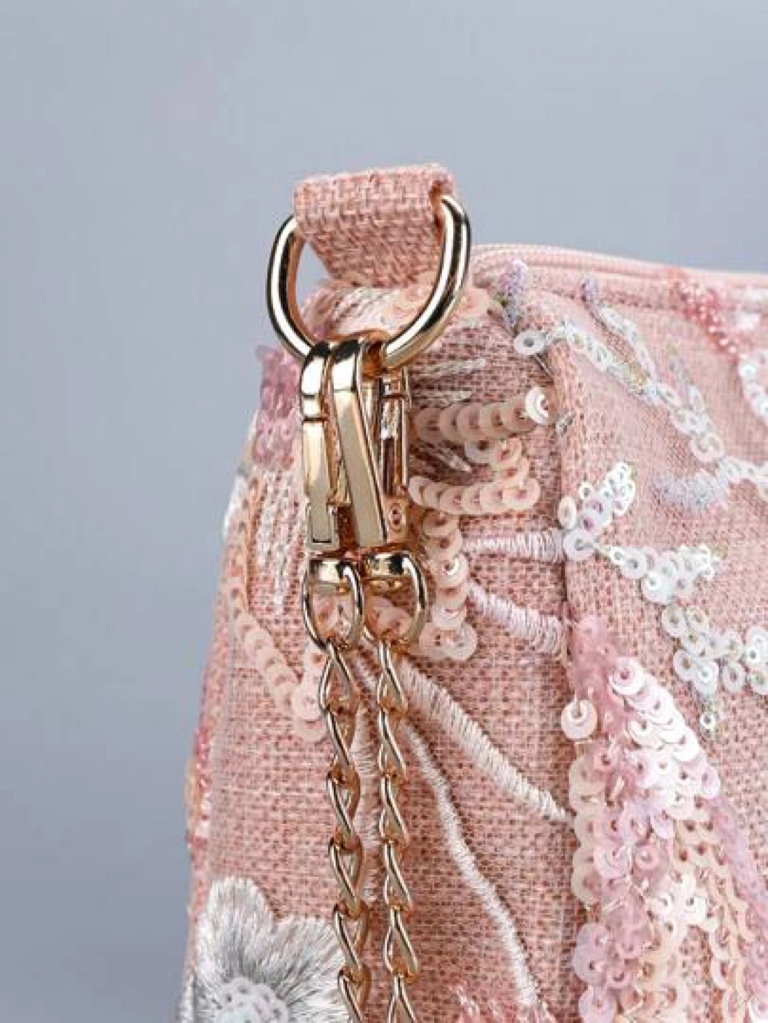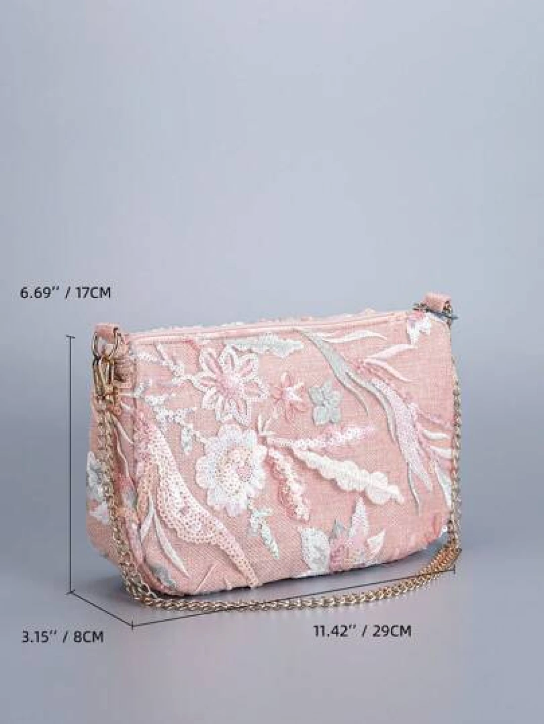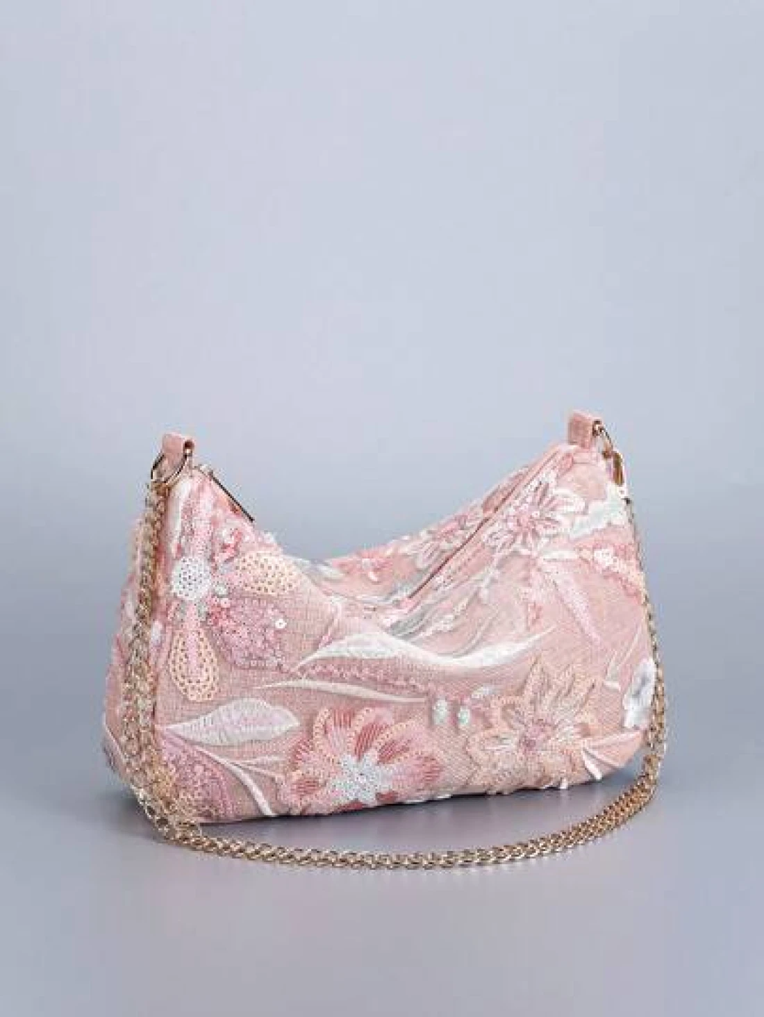 Sequin Embroidery Chain Shoulder Bag Classic Design Embroidery Floral Semicircle Crossbody Bag Women s Fashion Color Contrast Sequin Stitching Zipper Dinner Bag Preferred Bag Type Multi Purpose Bag Can Be Crossbody Chain Folded In Half Can Be A Single Shoulder Pattern Position Cut Randomly