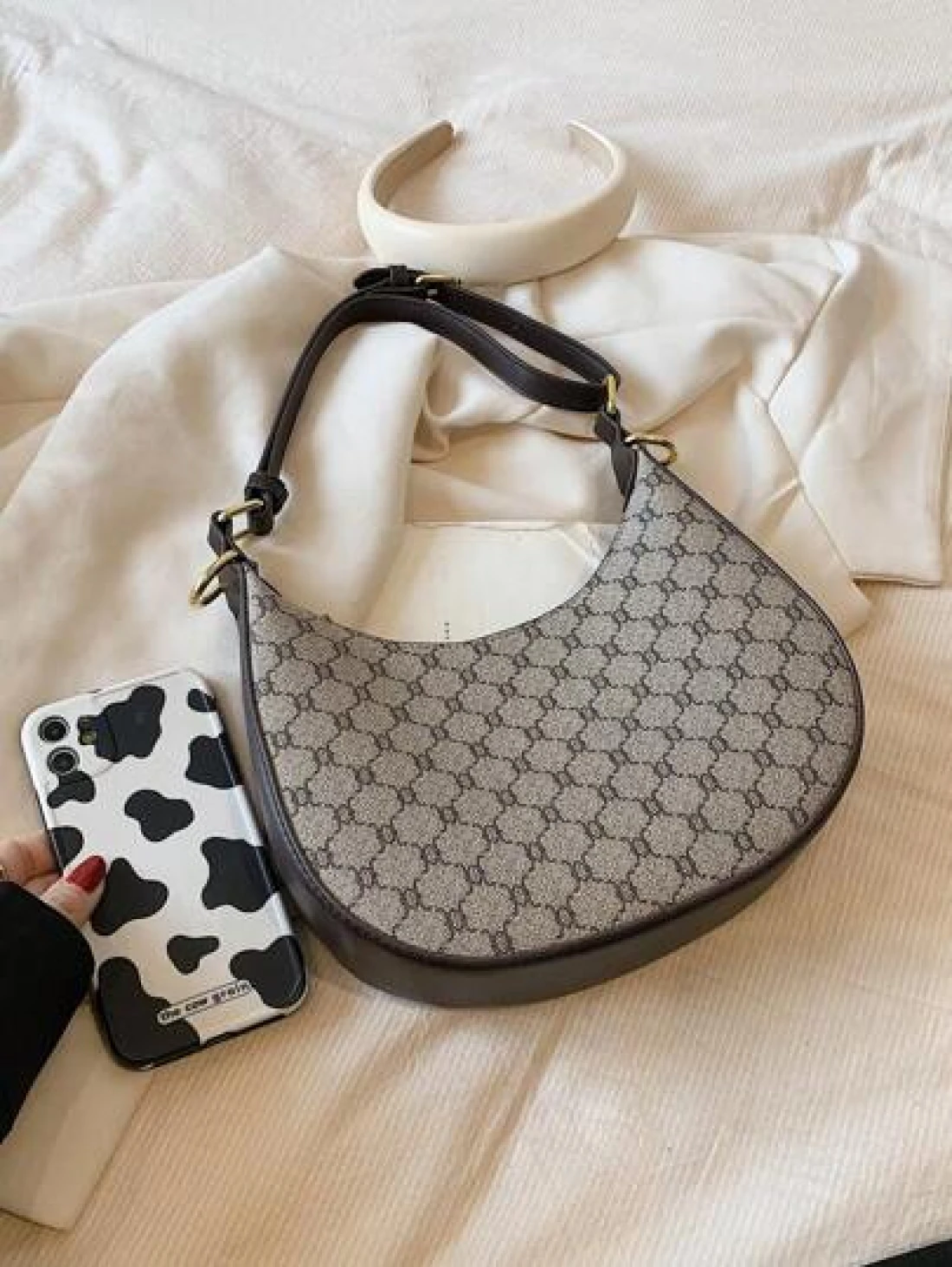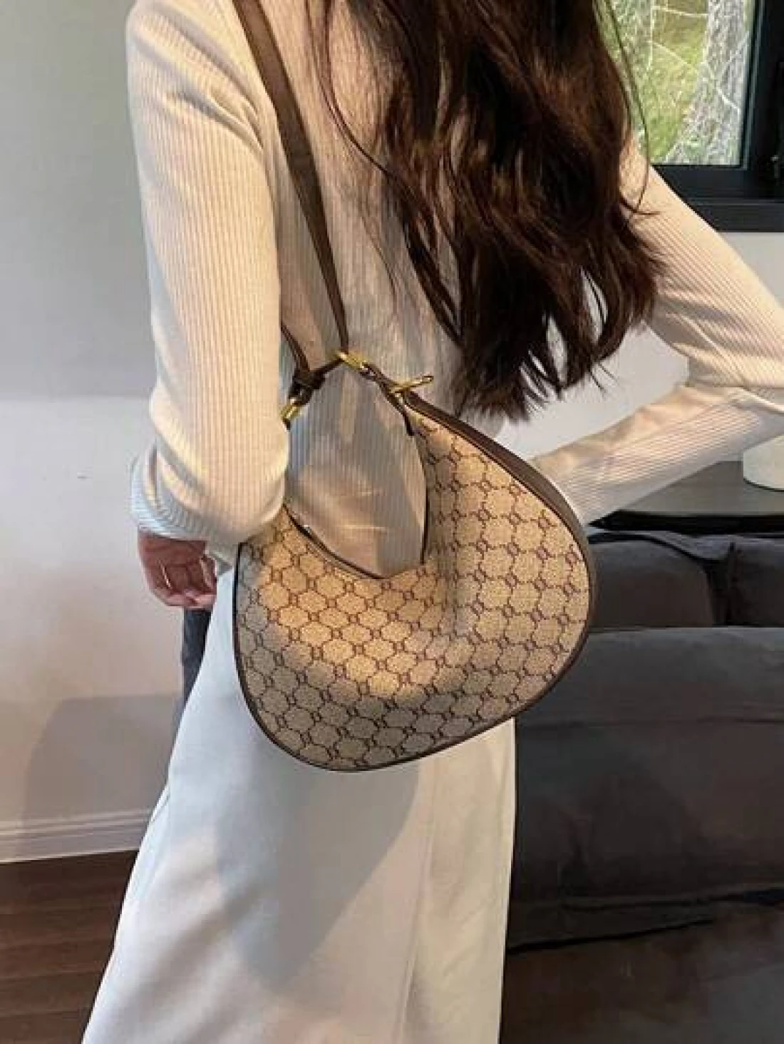 1pc 2025 New Vintage Pattern Half Moon Shape Shoulder Handbag For Women Daily Use Holiday Party Gifts