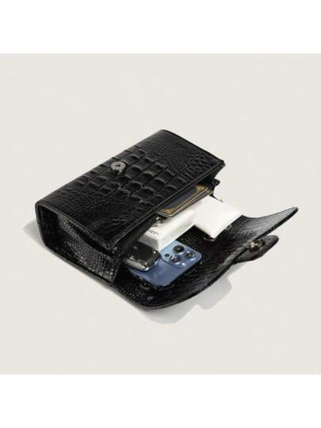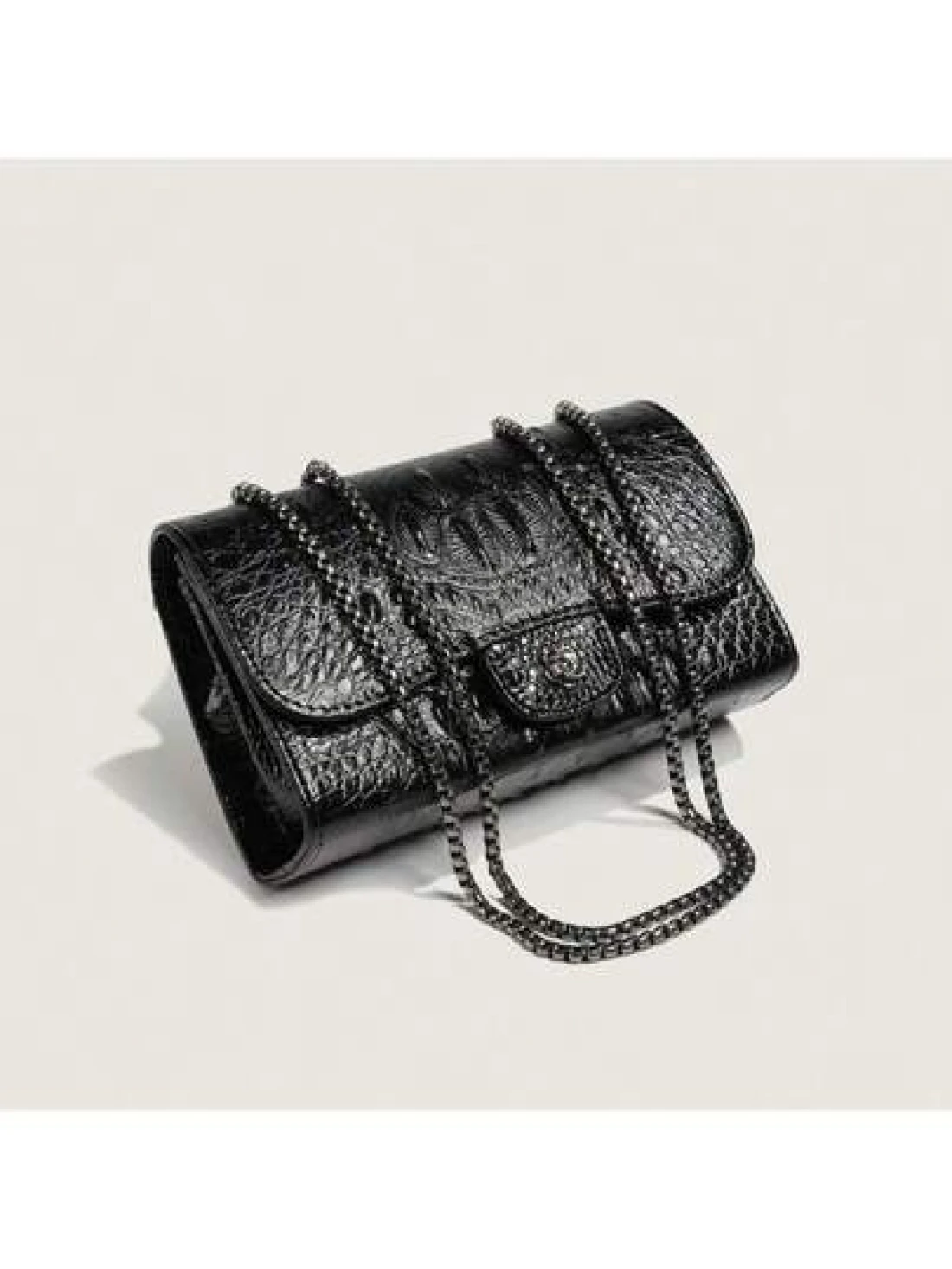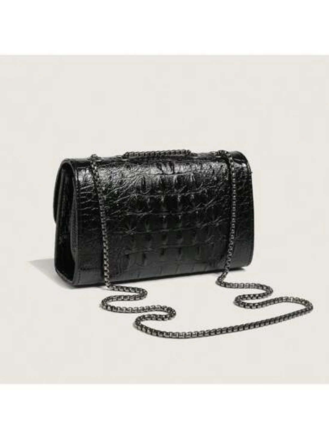1pc Solid Color Versatile Pu Crocodile Pattern Embossed Shoulder Bag With Lock Buckle Camellia Chain Crossbody Bag For Women Daily Simple Style