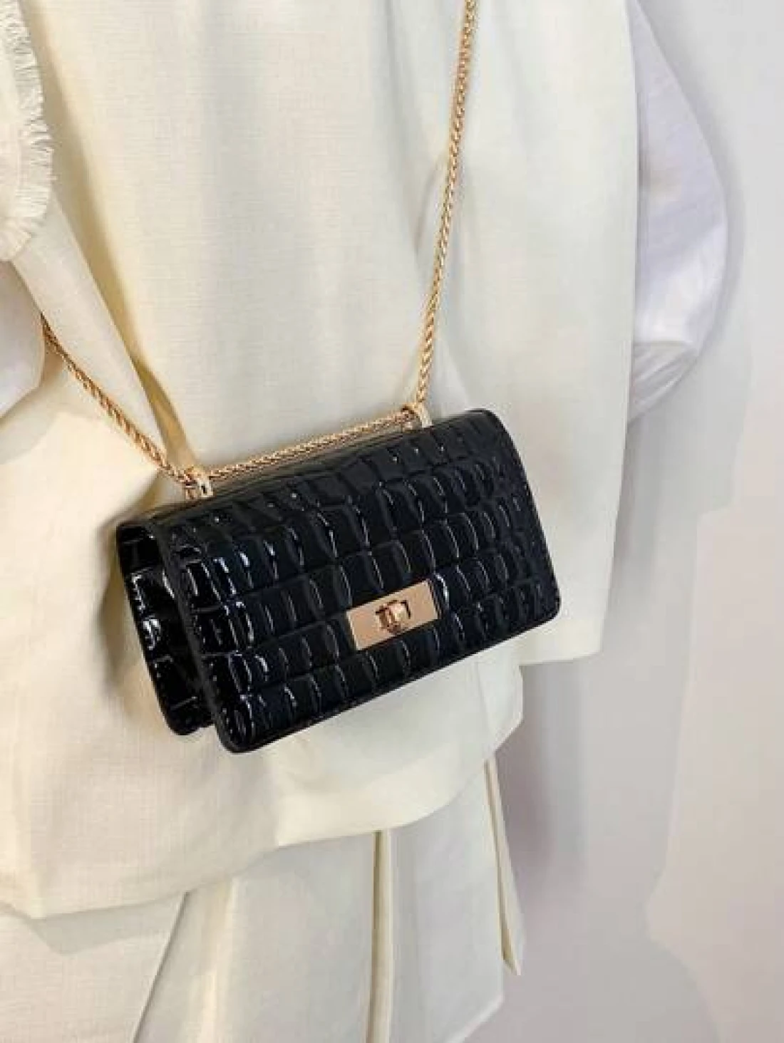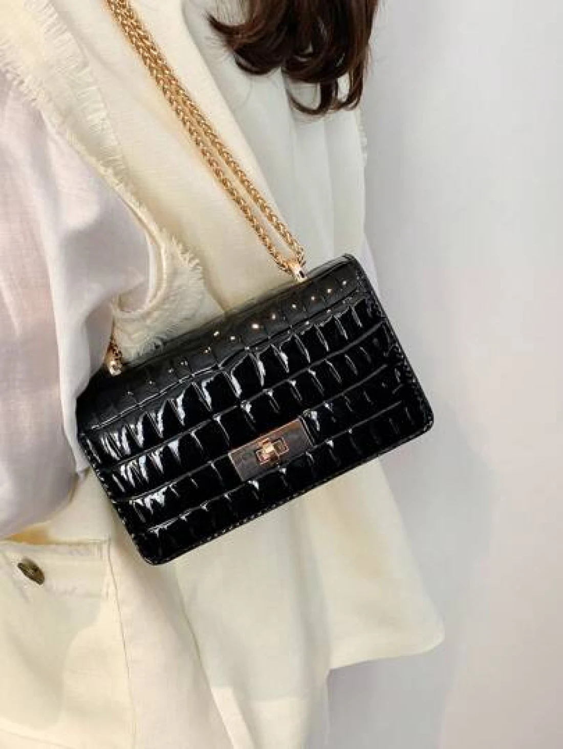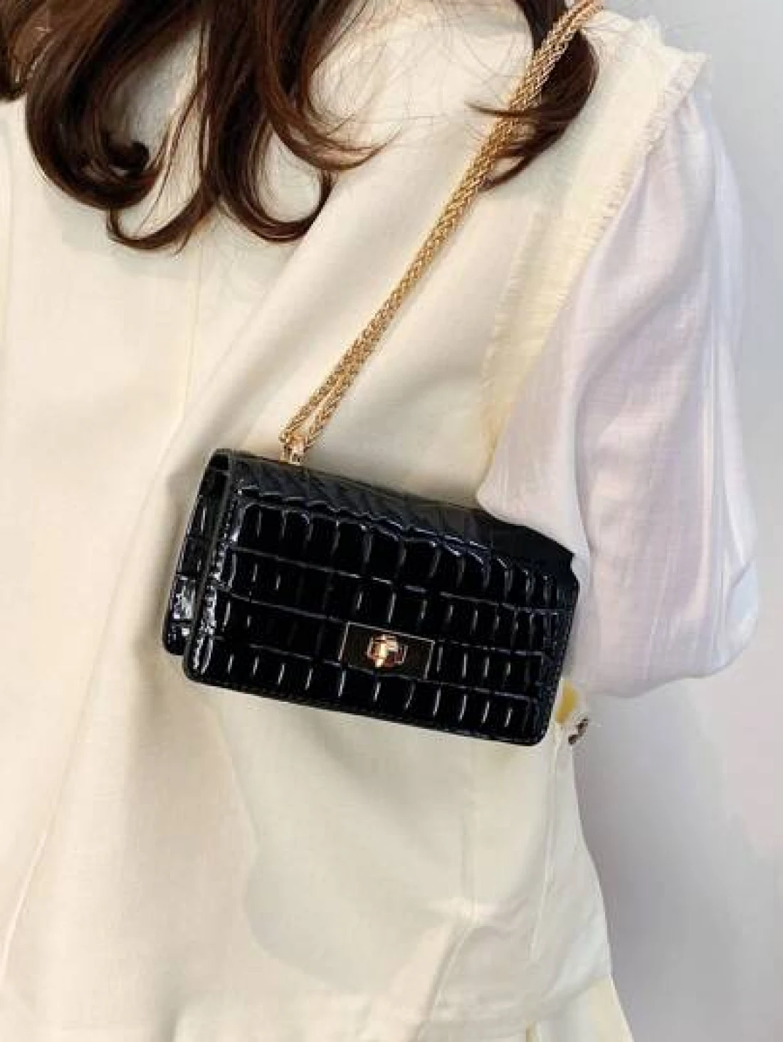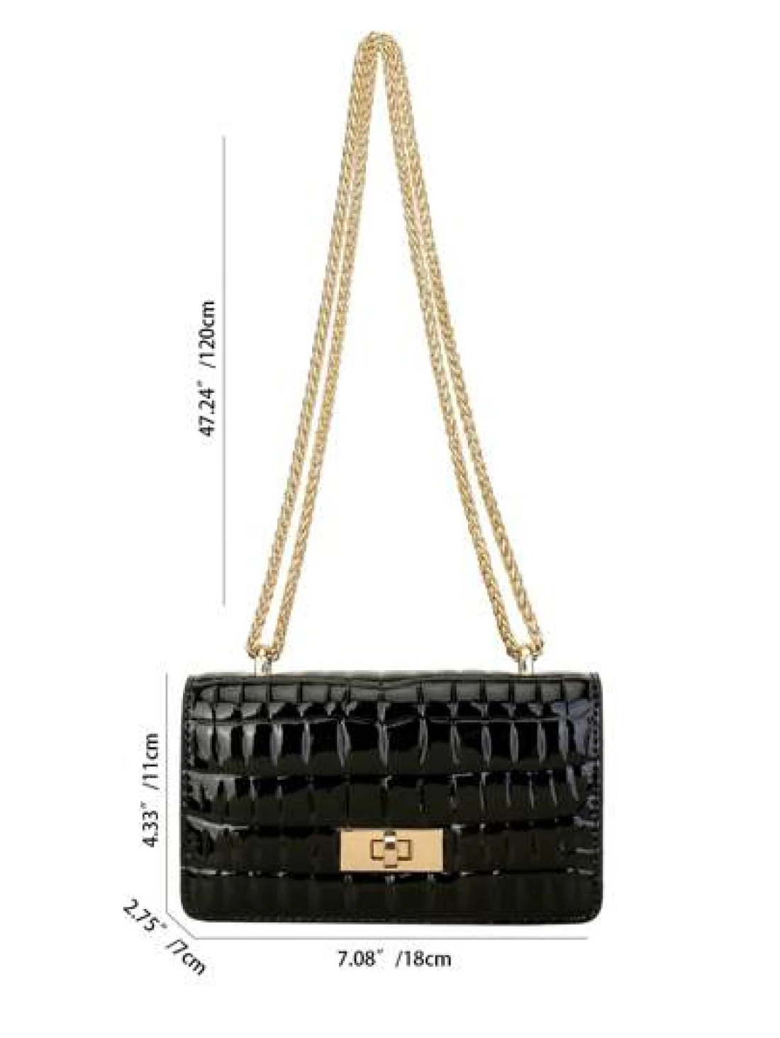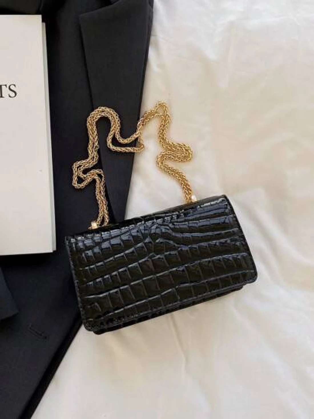 Faux Leather Solid Crocodile Embossed Fashion Mini Chain Strap Shoulder Bag