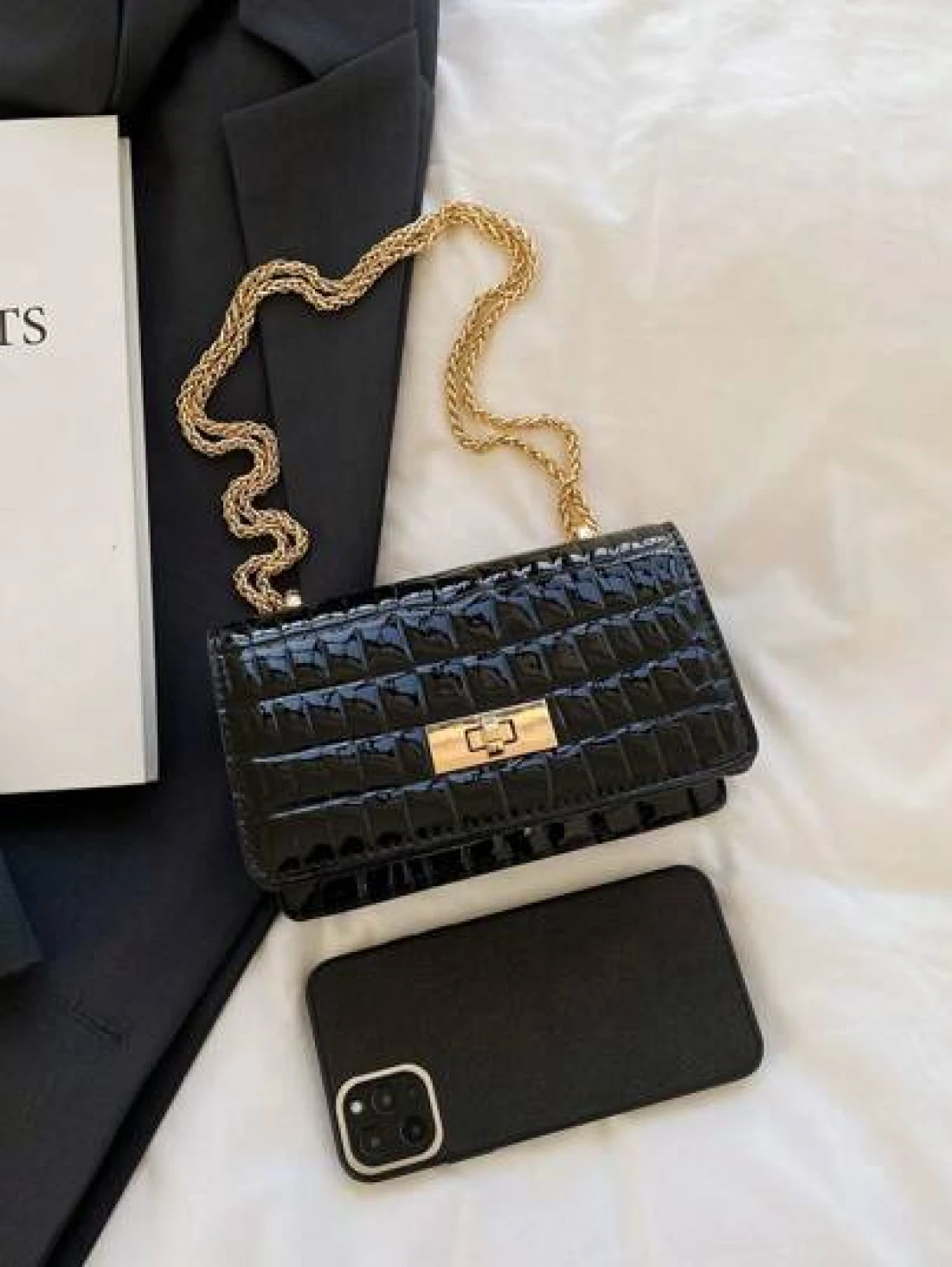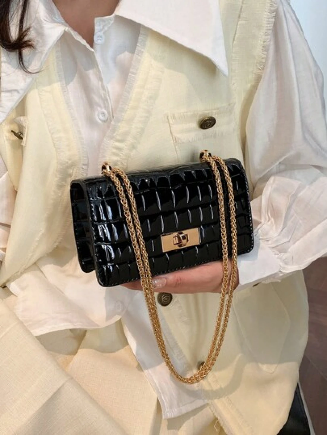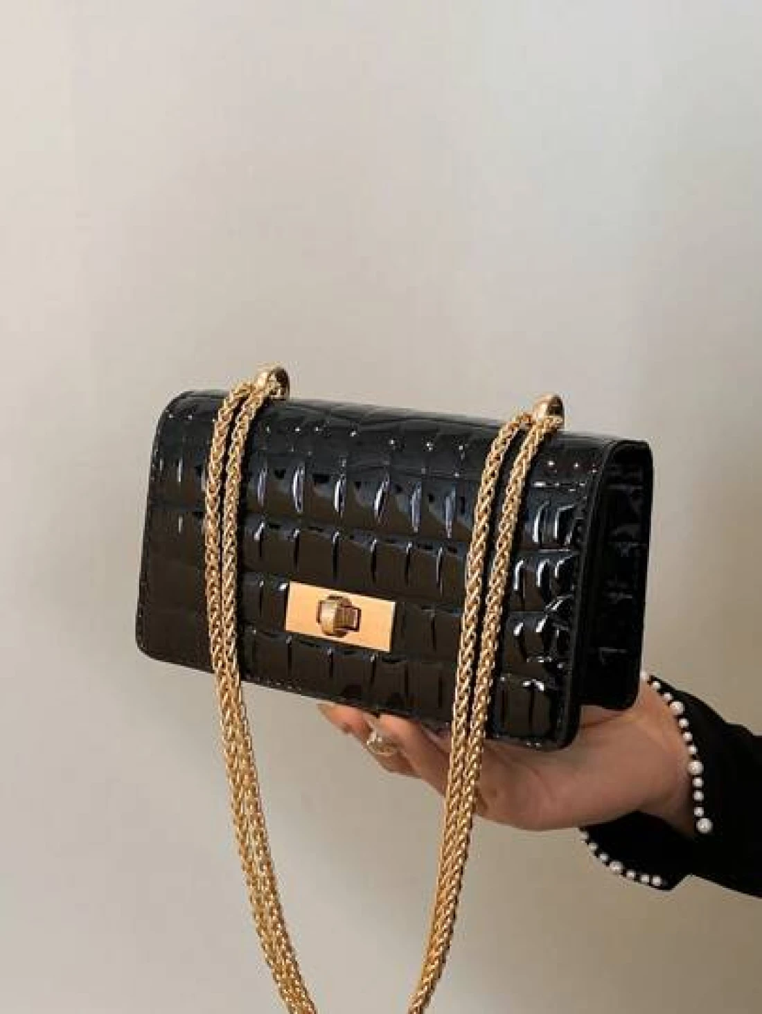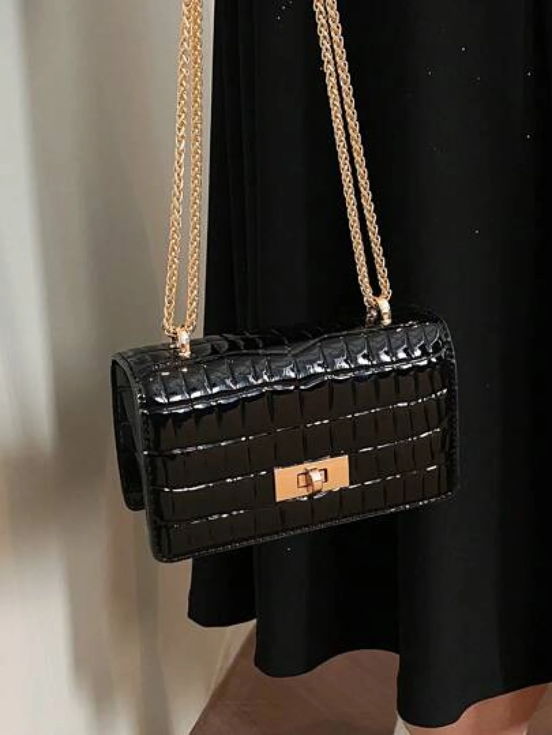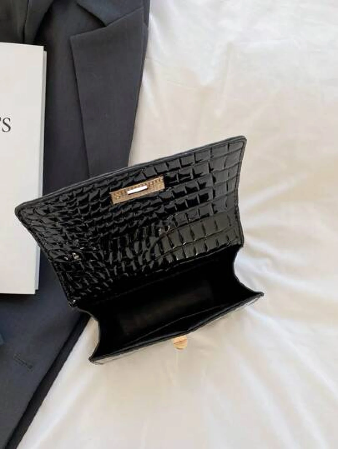 Faux Leather Solid Crocodile Embossed Fashion Mini Chain Strap Shoulder Bag
