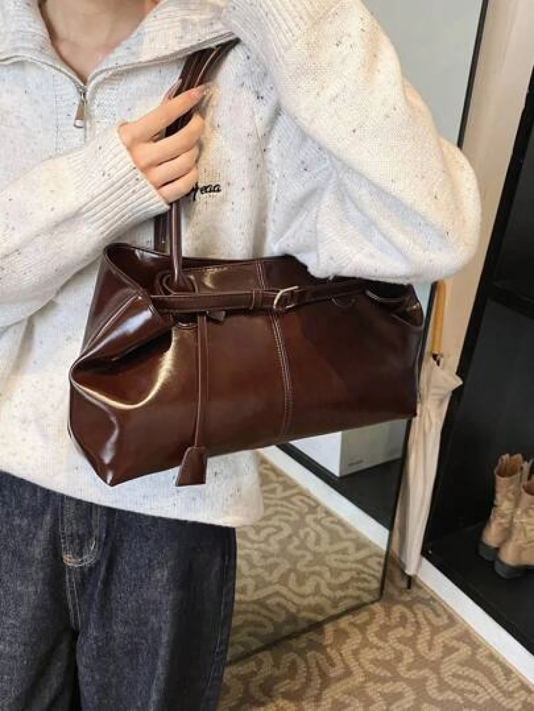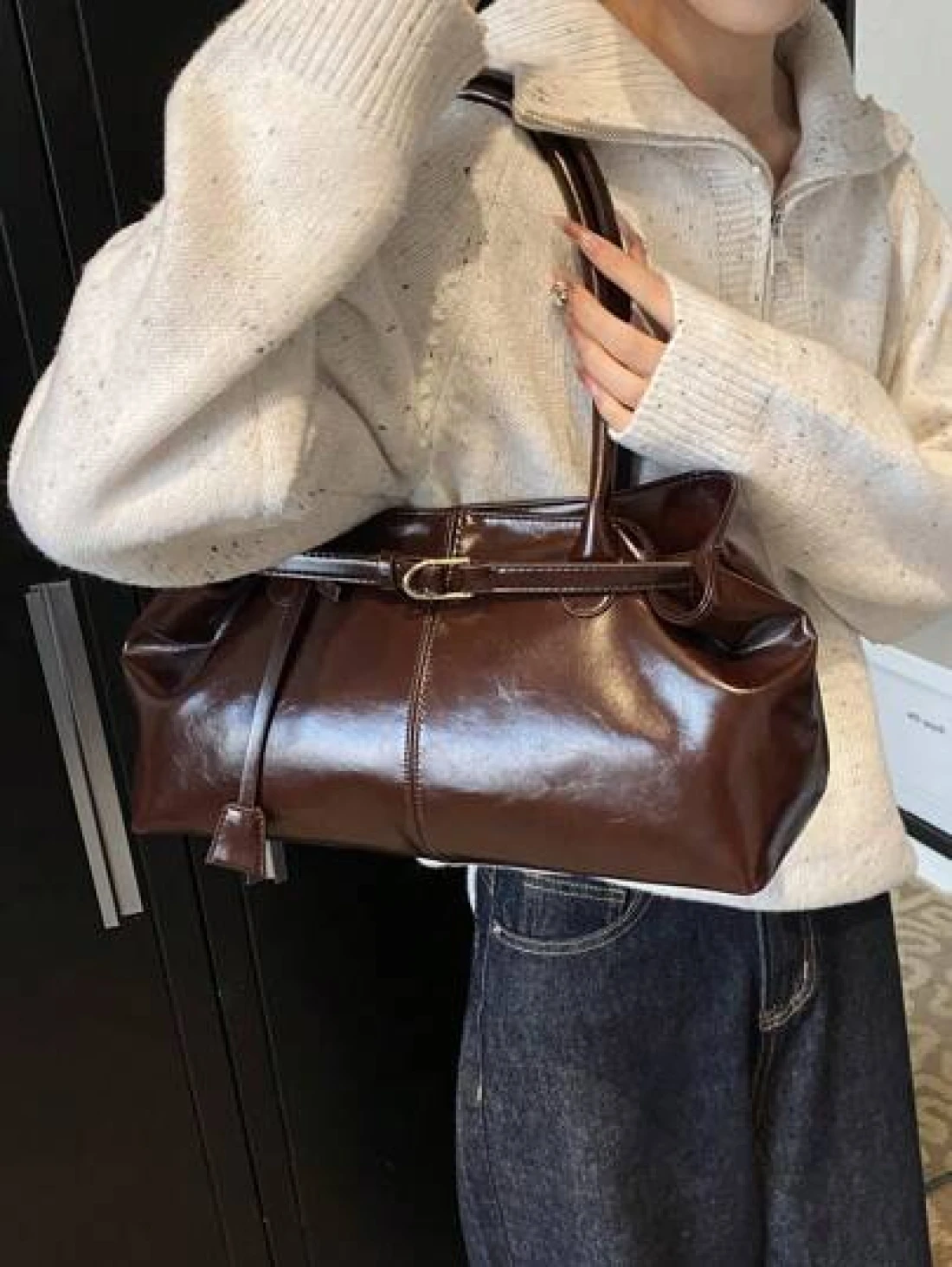 1pc Women s High Capacity Tote Handbags Female Pu Leather Shoulder Bags Handbag Bags For Girl Casual Classic Simple Designer Business Style Bag Fashion Lady Commute Handbags Commuting To Work Black White Brown Silver