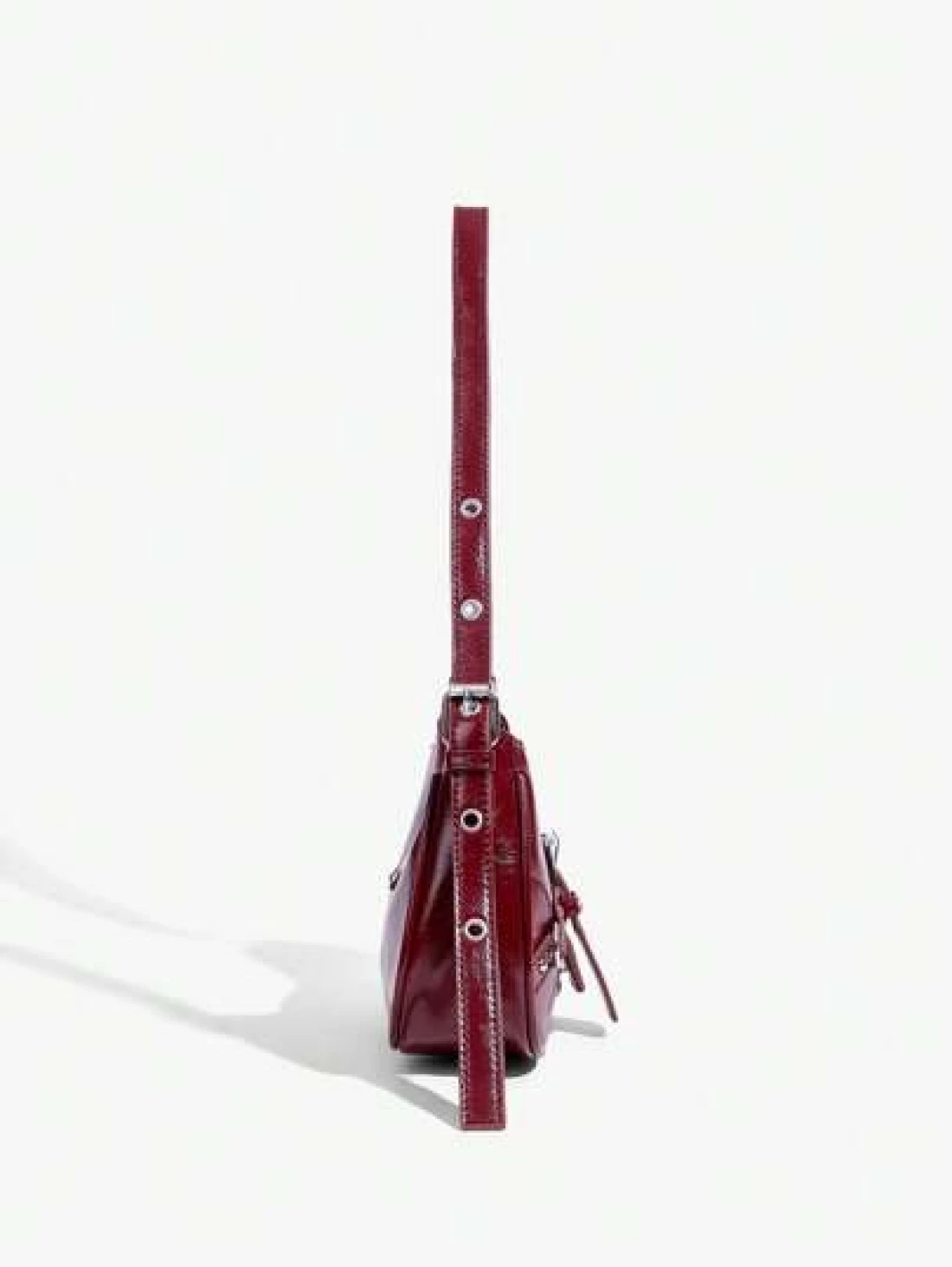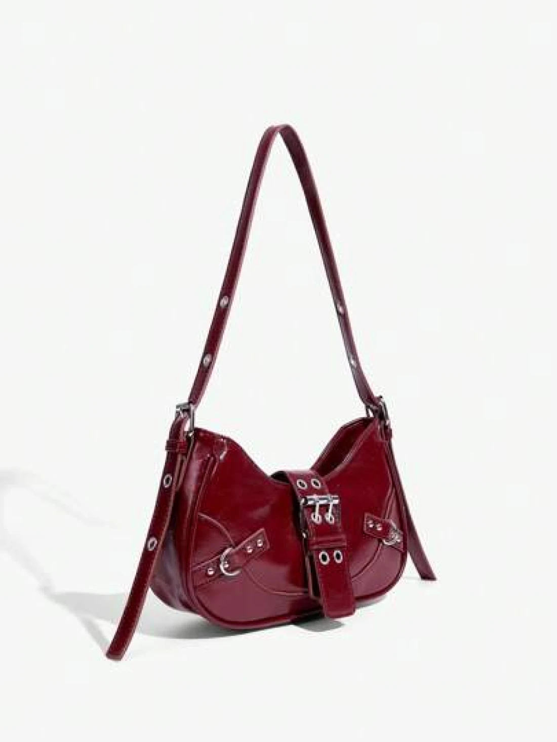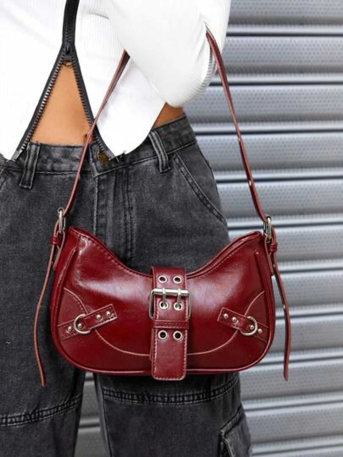 SHEIN ICON 1pc Rivet Decorated Punk Style Buckle Closure Y2K Fashion Women s Shoulder Bag Adjustable Strap For Teenagers Fashionable Burgundy Bag Valentines